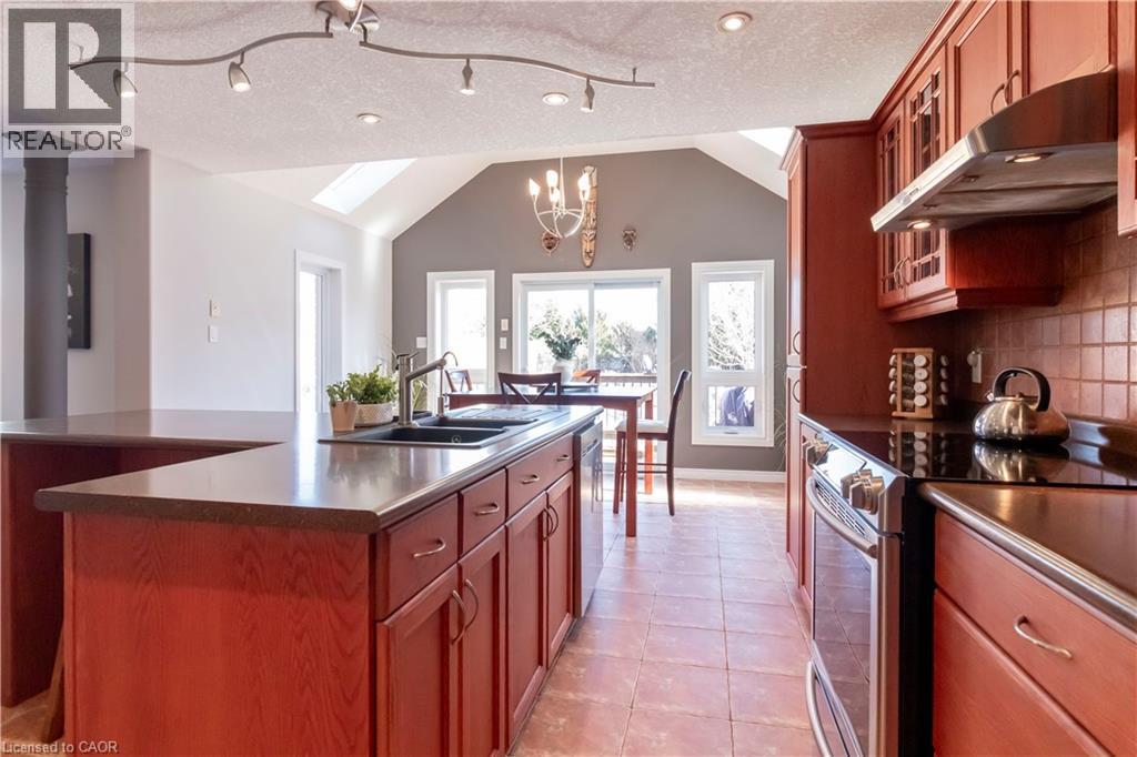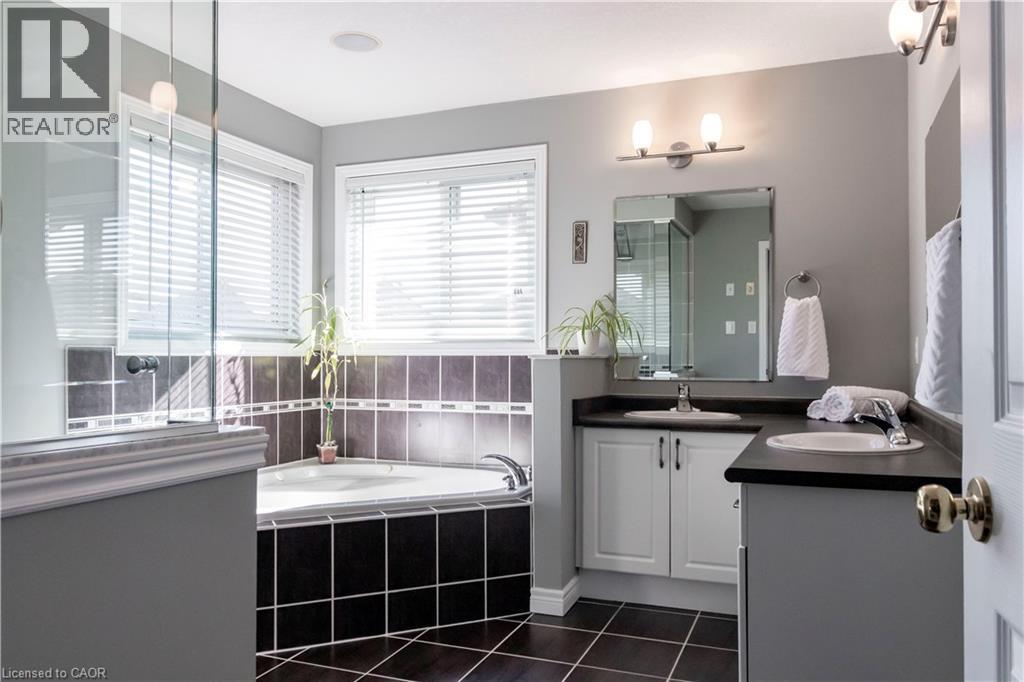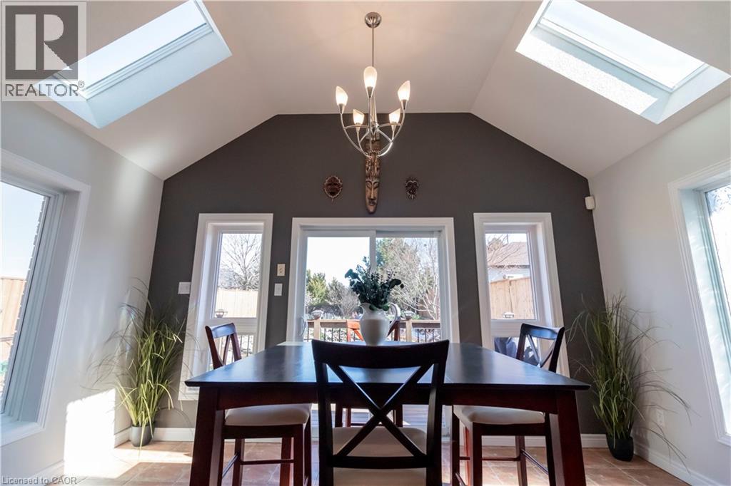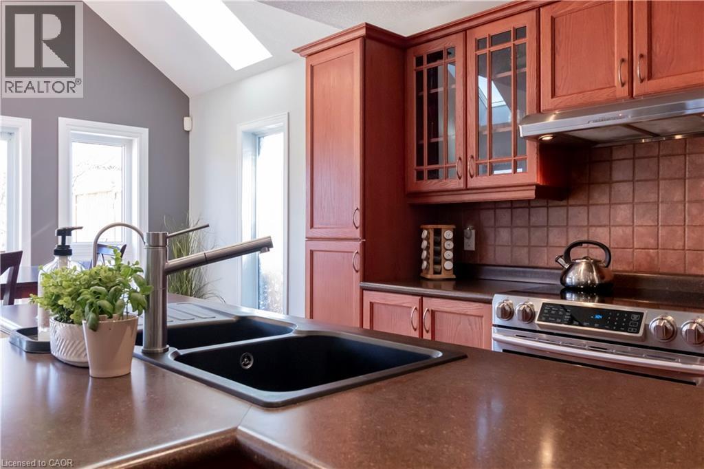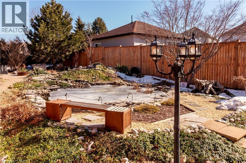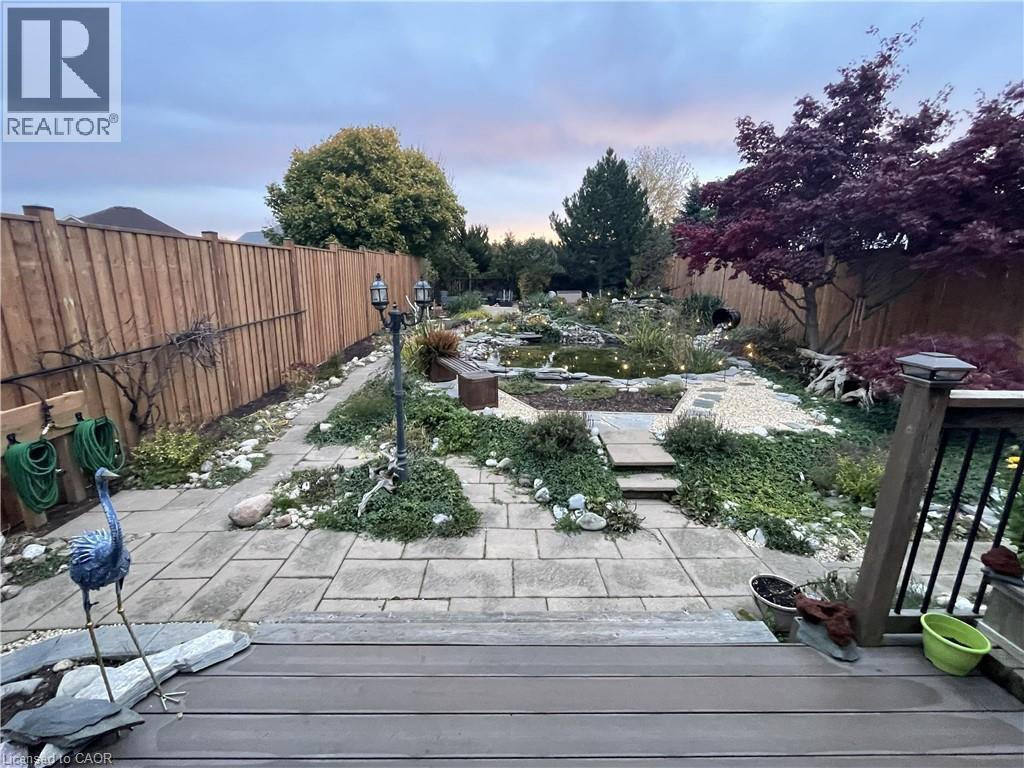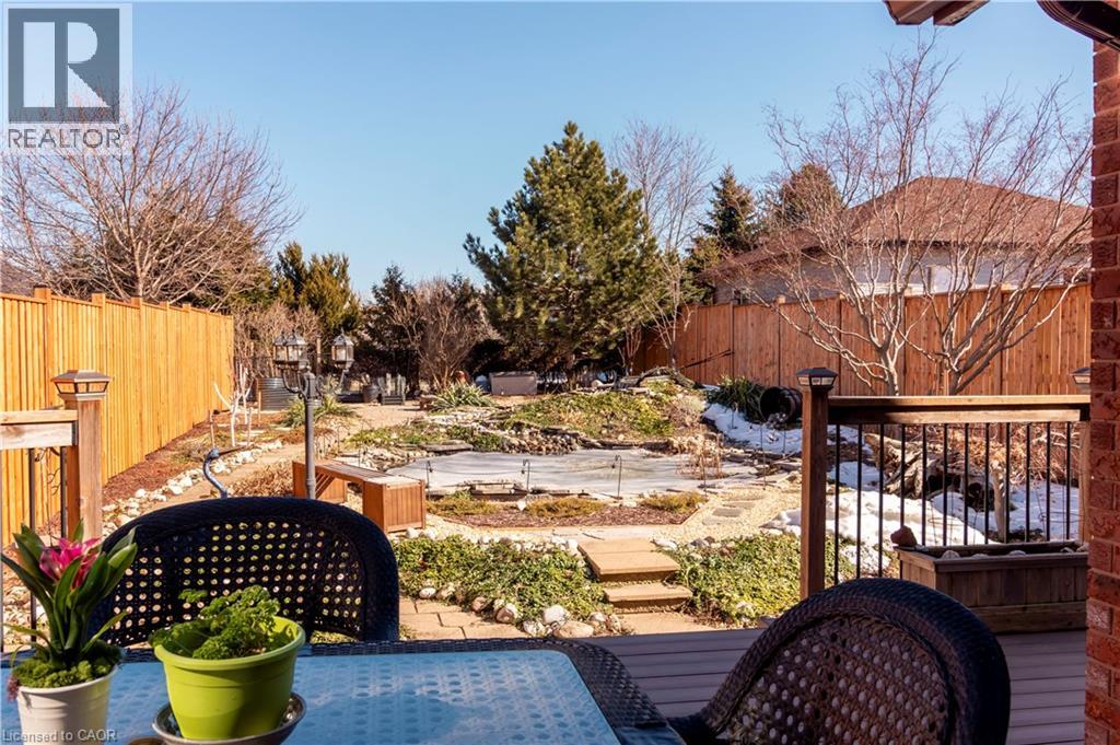 Beautiful 2-storey detached home with backyard oasis in desirable Doon South! Step into the bright foyer through elegant french doors where a cathedral ceiling skylight and extra-wide hardwood staircase create a stunning first impression. The main floor features a bright open-concept living, dining, and kitchen area filled with natural light from large windows, skylights, and a patio door leading to a newer composite deck. Enjoy outdoor living with a natural gas BBQ and spacious seating area overlooking the peaceful backyard oasis with a running stream, pond, fruit trees and lush gardens. Upstairs, the spacious primary suite with a vaulted ceilings offers an oversized walk-in closet and a luxurious 4-piece ensuite with whirlpool tub, double sinks, and a large glass walk-in shower. A bonus in ceiling heat lamp will ensure your comfort while toweling off. Two additional generous bedrooms with large closets share the main 4-piece bathroom. The finished basement, with a separate laundry room, features a wet bar entertainment room with four in-ceiling surround speakers compatible with 7.1 audio, perfect for movie nights. This well-maintained 20-year-old home is built with durable 2x6 construction and includes an oversized double car garage with a 220V EV charger. Situated on a large 40’ x 170’ lot with beautifully landscaped, low-maintenance grounds and no grass to cut. Recent updates include roof (2020) with 50-year shingles, A/C (2021) with 10-year warranty, and furnace (2018) with humidifier, wood fence (2025), gas fireplace insert (2026)RO water filter (2024). This is truly a move in ready home waiting for the right family to enjoy their very own private paradise. (id:64974)