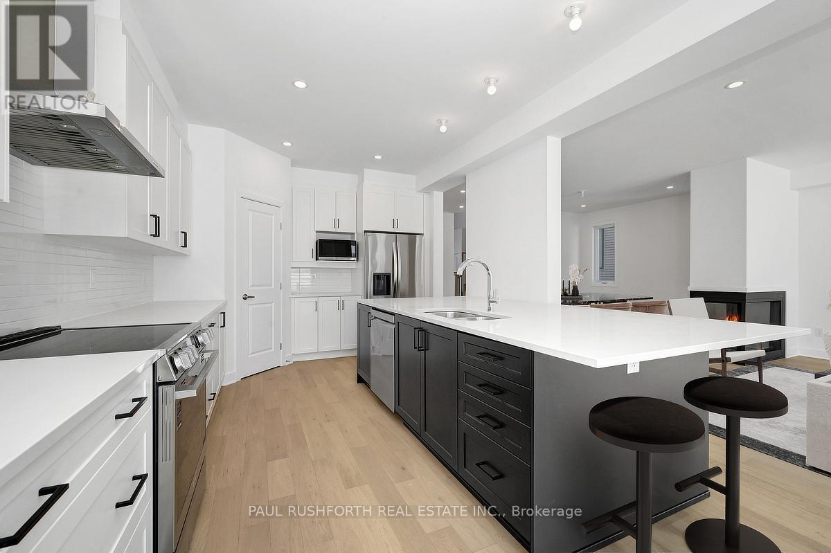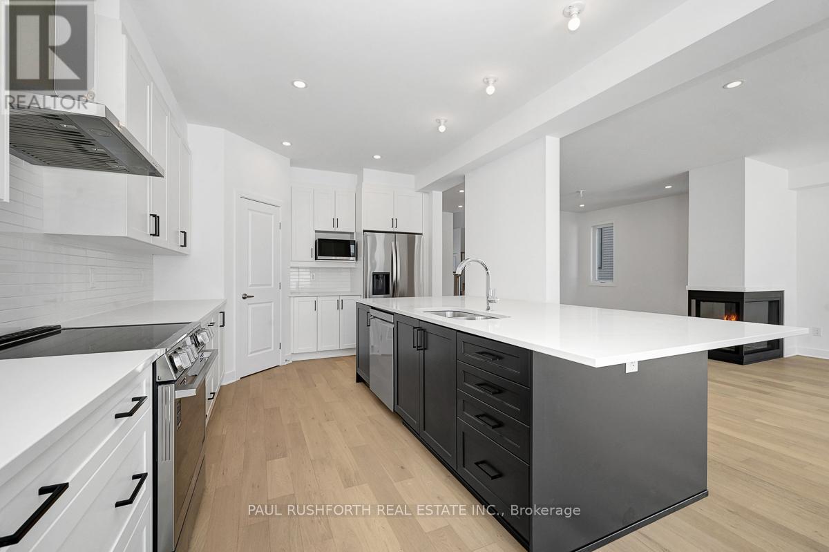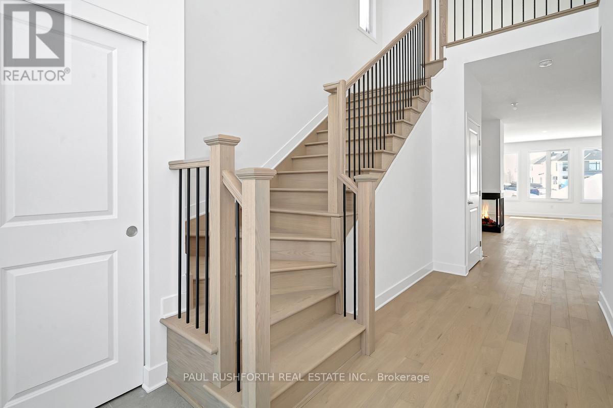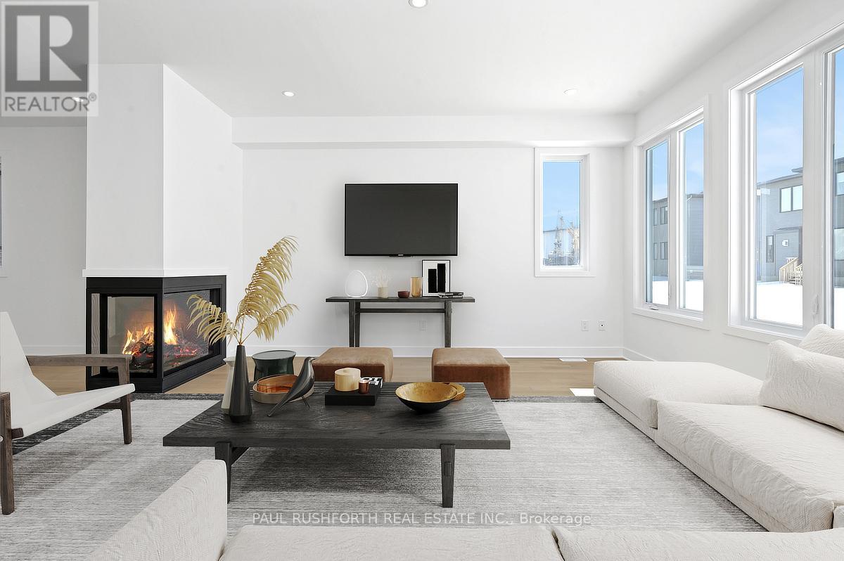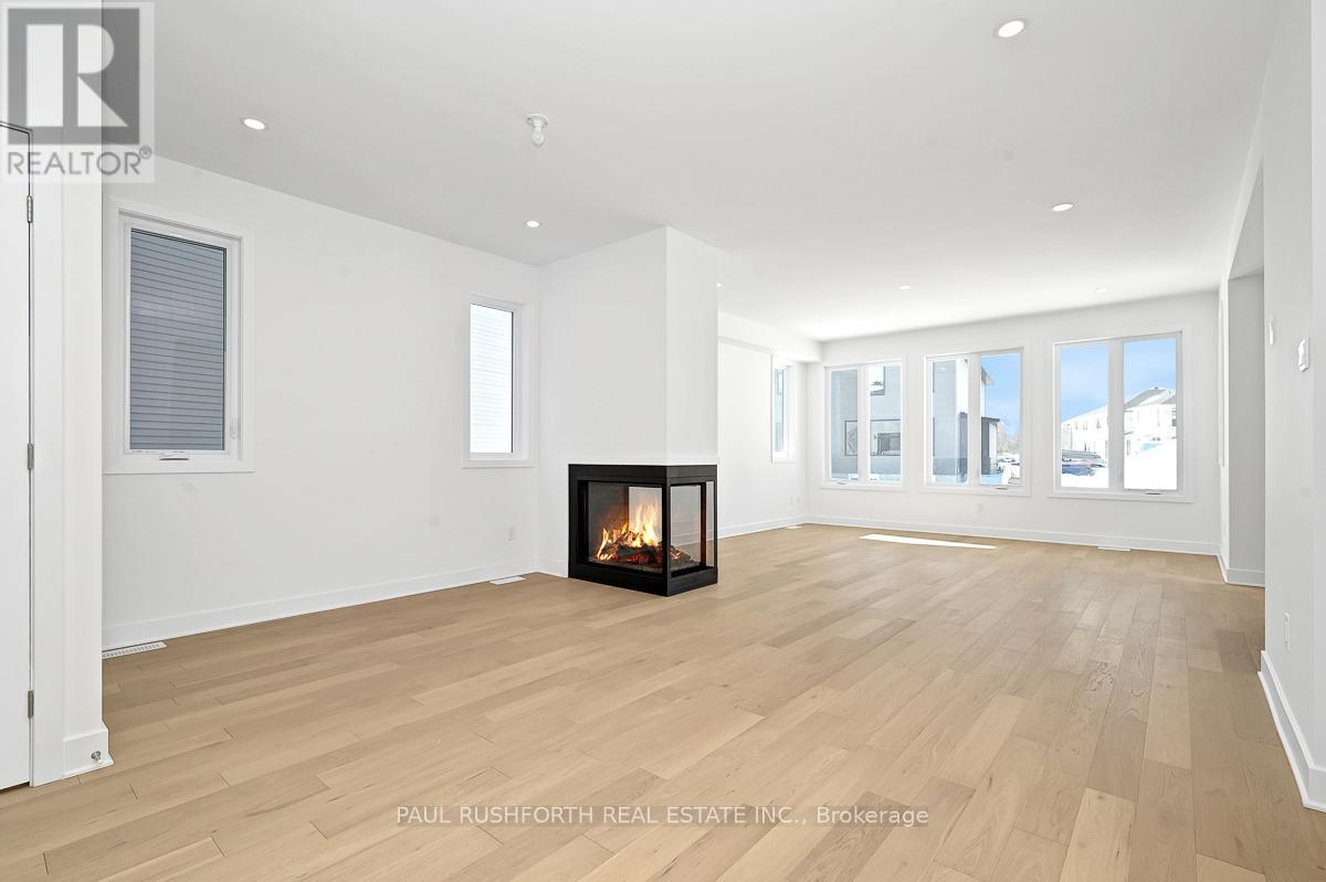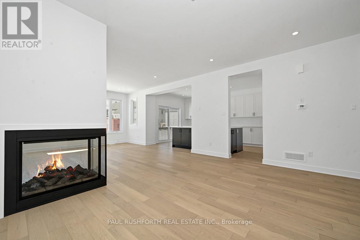 From the moment you walk in, you'll feel at home. This brand new 2,178 sq ft Melbourne by Phoenix Homes is move-in ready, with designer-selected upgrades and finishes, a finished basement, and full Tarion warranty. The main floor impresses with 9-foot ceilings, 5" pre-engineered hardwood, and a stunning 3-sided gas fireplace. The chef-inspired kitchen is equipped with stainless steel appliances, an oversized island, walk-in pantry, and soft-close cabinetry - ideal for everyday living and entertaining. An oak staircase and Levven smart lighting package complete the refined feel. Upstairs offers 4 bedrooms and second-floor laundry. The primary retreat is a true escape, with a private ensuite featuring a double-sink vanity, freestanding soaker tub and separate shower. The lower level adds 525 sq ft of finished recreation space with enlarged basement windows, an approx. 9' foundation pour, and 3-piece rough-in. Whether you envision a home theatre, gym, playroom, or office, the space is ready to make it yours. Some photos have been virtually staged. (id:64974)