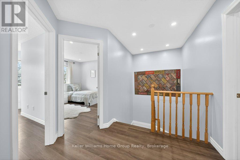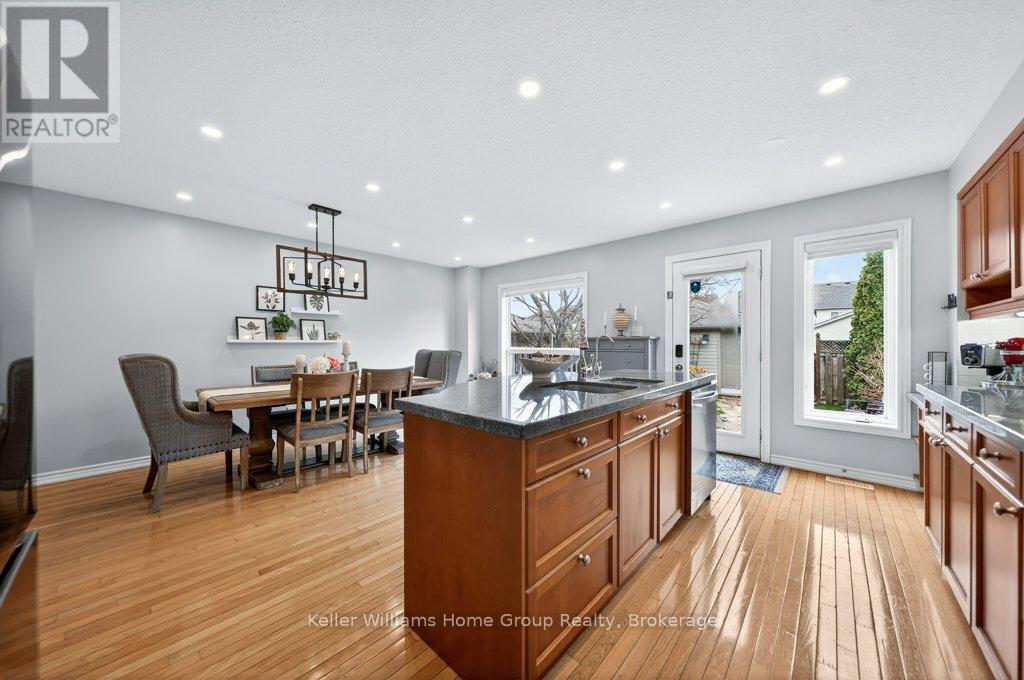 Welcome to this beautifully updated "freehold" home in the highly sought after Eastbridge community of Waterloo, a rare opportunity in an area known for its amazing schools and low turnover. This move in ready property showcases extensive upgrades throughout, including a kitchen with maple cabinetry, granite countertops, stylish new backsplash (2025), and newer stainless steel LG appliances (2024-25), along with a dedicated drinking water filtration system (2025). The home features gleaming oak hardwood floors on the main level, new laminate flooring upstairs (2025), and three spacious bedrooms complemented by two fully renovated 3-piece bathrooms (2025) and an updated powder room (2024) on the main floor. Major mechanical upgrades completed in late 2024 include a heat pump, A/C, humidifier, on-demand water heater, and water softener, which are all owned, plus a Samsung smart washer and dryer (2024). Freshly painted home (2025-26). This home also offers a detached garage (roof 2025) with additional driveway parking. Step outside to a low maintenance backyard retreat with a large flagstone patio, water feature, and plenty of sunshine, perfect for relaxing or entertaining. With a lot of peace of mind and a stunning community, this is a no brainer! (id:64974)