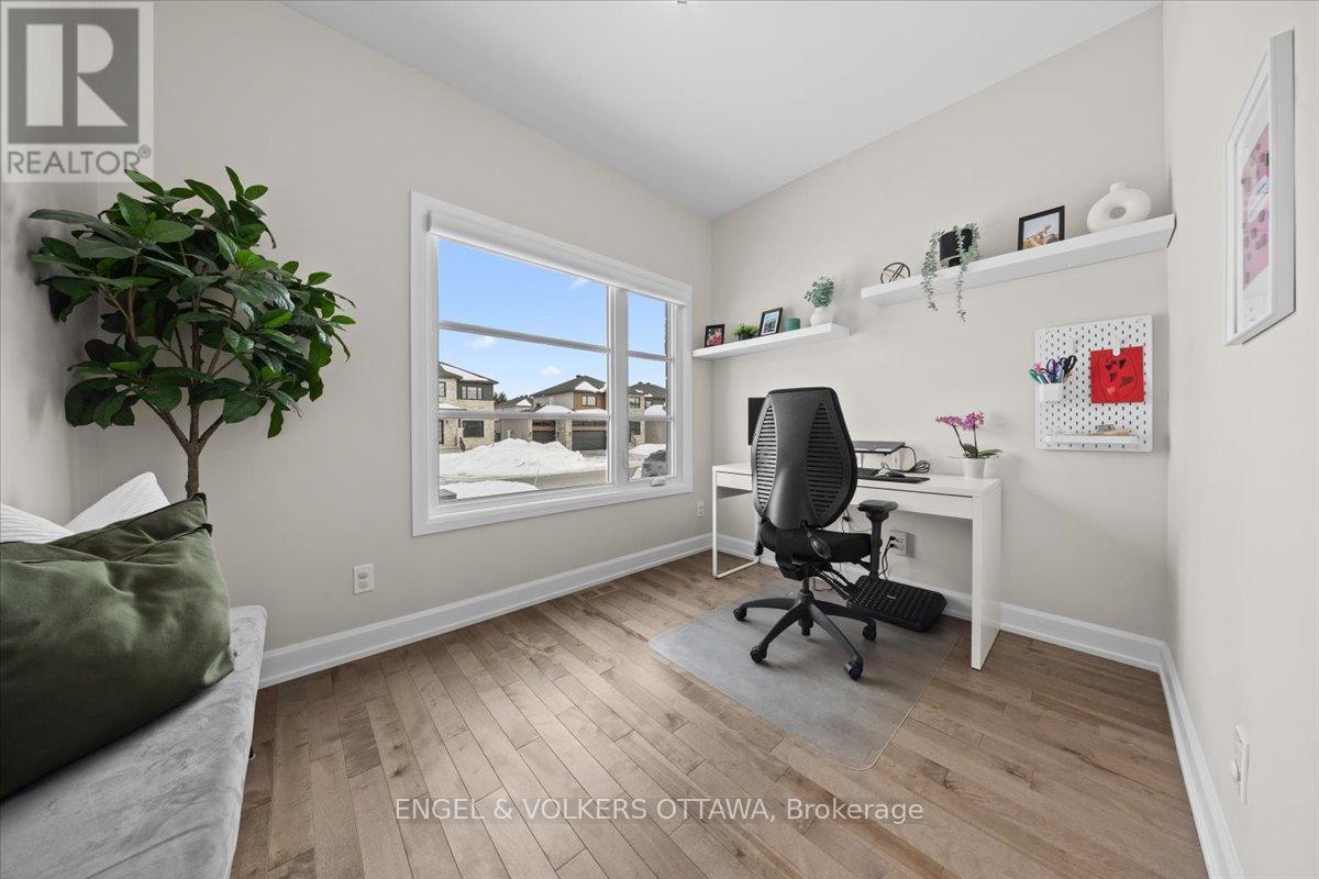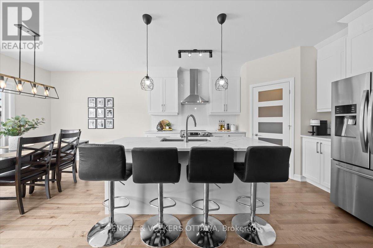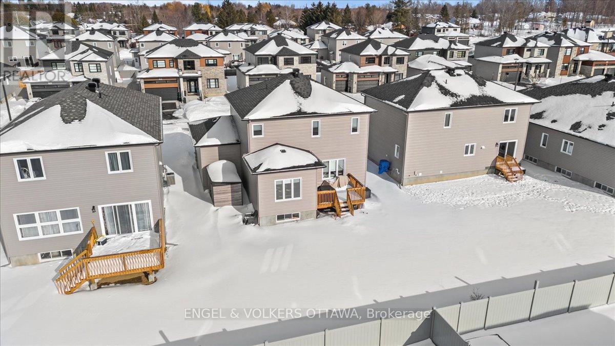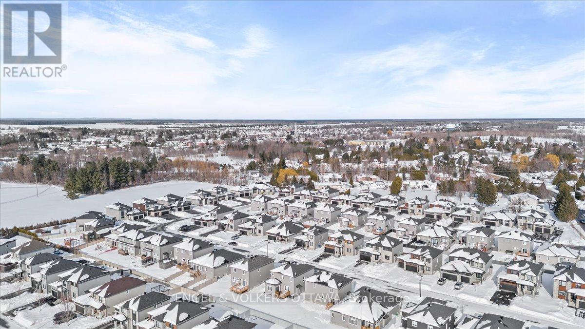 Built by reputable Melanie Homes in 2023, this beautifully finished 3+1 bedroom, 2.5 bath home offers the perfect blend of thoughtful design, quality craftsmanship, and modern comfort. Situated on a large lot on a quiet crescent in family friendly Ste Marie Hamlet in Embrun, only 30 minutes to downtown Ottawa, this home has been exceptionally well cared for and is completely move-in ready.The main floor with 9' ceilings features a bright and functional layout filled with natural light, including a dedicated front office that is ideal for working from home, and a stunning open concept living (featuring a gorgeous gas fireplace), dining, and kitchen space designed for everyday living and entertaining. The kitchen showcases upgraded cabinetry, quartz counters, and the added convenience of a walk in pantry, providing both style and practical storage.Upstairs, the spacious primary suite offers a true retreat, complete with a spa inspired ensuite featuring a stand alone tub, double sinks, and elegant finishes, as well as a large walk in closet. Two additional bedrooms provide comfortable space for family or guests.The fully finished basement extends the living space with a fourth bedroom, generous storage, and a flexible layout that can easily accommodate a home gym, media room, or play space.Outside, enjoy the large backyard (and with storage shed) back deck, and permanent outdoor lighting that enhances both curb appeal and year round enjoyment. The double car garage adds convenience and functionality.Located in a welcoming community close to parks, schools, the baseball diamond, and the future recreation centre in Russell Township, this home offers an ideal setting for families looking for space, comfort, and connection. (id:64974)