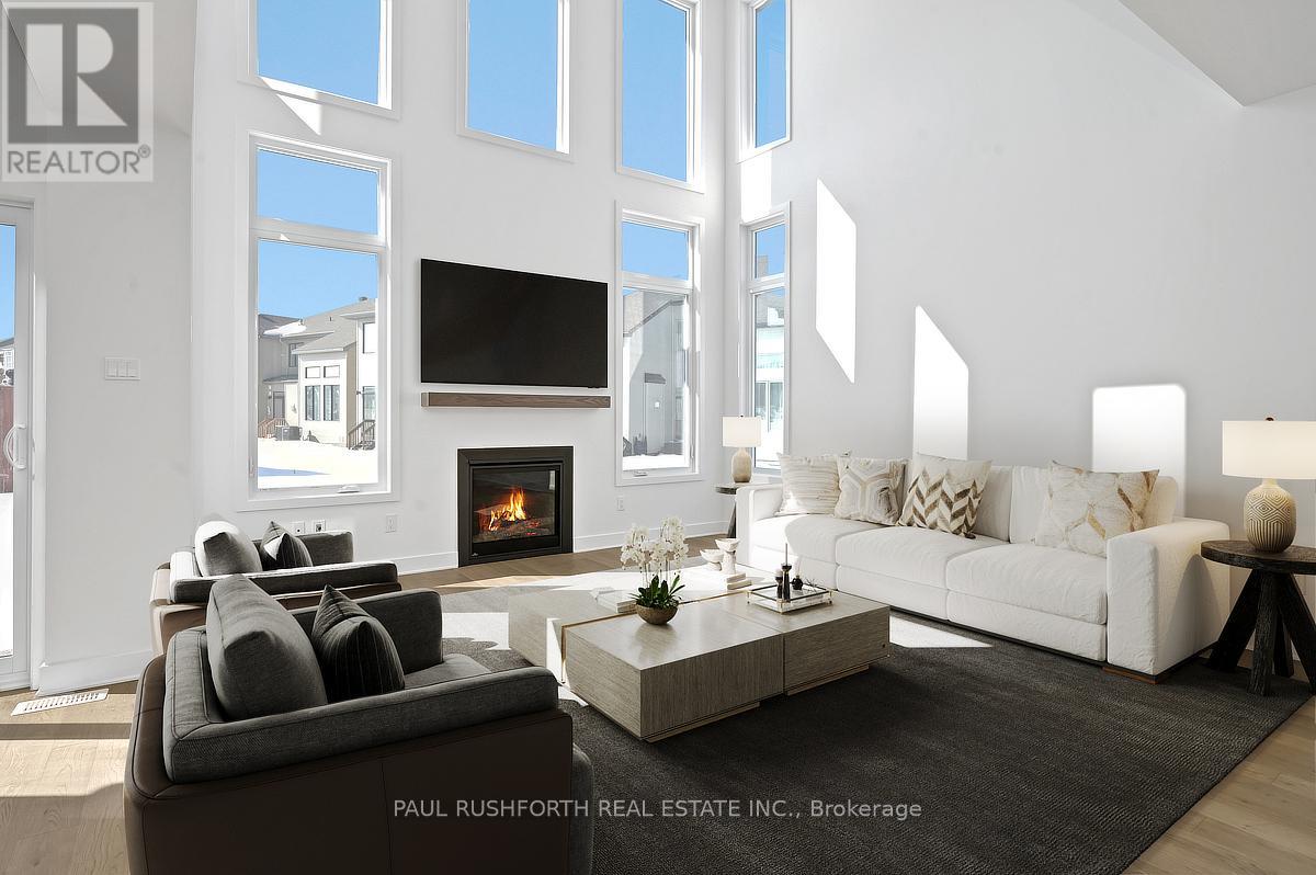 Skip the wait! This brand new 2,043 sq ft Strathmore model by Phoenix Homes is move-in ready, featuring over $38,000 in upgrades, a finished basement, and full Tarion warranty for peace of mind. The main floor impresses with 9-foot ceilings, 5" pre-engineered hardwood, and a dramatic family room with 17-foot ceilings and gas fireplace. The chef's kitchen is equipped with stainless steel appliances, an oversized island, walk-through pantry, soft-close cabinetry, and pot & pan drawers - a perfect place for entertaining. An oak staircase and Levven smart lighting package complete the refined feel. Upstairs offers 3 bedrooms with a loft overlooking the main living area, as well as primary retreat with 5-piece ensuite, and second-floor laundry. The lower level adds 438 sq ft of finished recreation space with an approx. 9' foundation pour and 3-piece rough-in. Whether you envision a home theatre, gym, playroom, or office, the space is ready to make it yours. Some photos have been virtually staged. (id:64974)