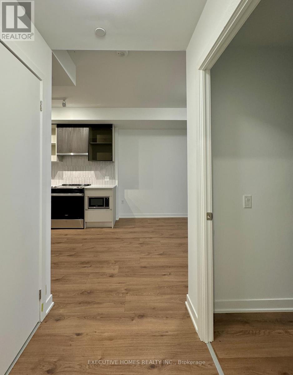 Welcome to Distrikt Trailside 2 in the beautiful town of Oakville.Brand new 1 bed + 1 bath suite. Available immediately. Featuring an open concept layout, hardwood flooring, floor to ceiling windows, ensuite laundry, & walk out to a spacious balcony. Modern kitchen offers - stainless steel appliances, quartz countertops & custom backsplash. Unit comes with brand new window coverings. Popular floor plan with very spacious bedroom. Full size washer & dryer. Beautifully designed resort-like amenities including a grand lobby with double height ceilings, luxury residence, lounge, fitness centre & rooftop terrace. 1 parking space & 1 storage locker included. Close proximity to great schools, shopping, dining, Oakville Hospital, Sixteen Mile Sports Complex, public transit & major highway access. (id:64974)