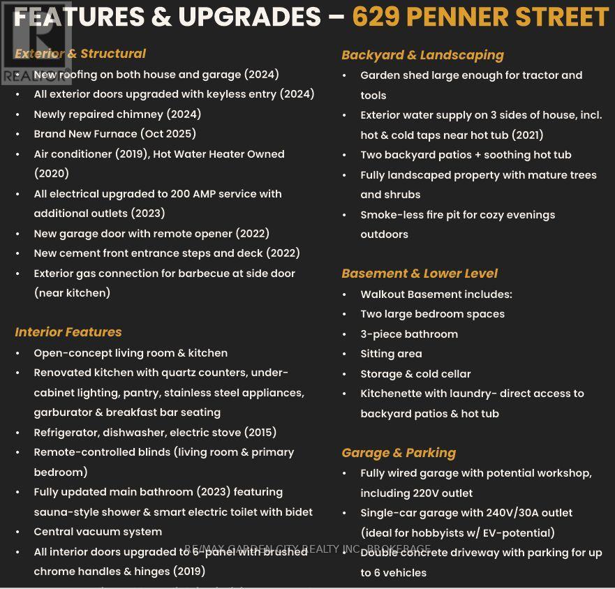 Welcome to 629 Penner Street, a charming, updated bungalow in the heart of Virgil - one of Niagara-on-the-Lake's most loved communities. This is not a large home - and that's exactly its appeal. It offers a right-sized, move-in-ready opportunity for the next chapter of life, where lifestyle, simplicity, and location matter more than excess space- all set on a rare 200-foot private lot. Inside, natural light, hardwood floors, and an open-concept layout make daily living easy. The renovated kitchen features quartz countertops, SS appliances, and a pantry, flowing seamlessly into the dining and living areas - ideal for relaxed evenings or entertaining. Two comfortable bedrooms and a fully renovated 3-piece bathroom complete the main level. The lower walkout adds meaningful versatility with additional bedroom space, a sitting area, a second 3-piece bath, and a kitchenette - well-suited for guests, extended family stays, or flexible use as needs evolve. The private 200-foot-deep lot is a standout feature, surrounded by mature trees and offering a peaceful backyard retreat complete with a hot tub and seamless indoor-outdoor connection rarely found in Niagara-on-the-Lake. Virgil offers everyday amenities, while Old Town, world-class wineries, award-winning dining, boutique shopping, farm markets, craft breweries and the Shaw Festival are just minutes away - all without peak-season congestion. Major updates provide peace of mind, including roofing (2024), furnace (2025), 200-amp electrical service (2023), A/C (2019), an owned hot water tank, and a garage currently used as a workshop with a 240V outlet offering EV potential. Additional features and improvements are detailed in the feature sheet. Ideal for downsizers, empty nesters, second-home buyers, or those seeking lifestyle-forward living in one of Niagara-on-the-Lake's most desirable communities, this thoughtfully updated bungalow offers the opportunity to enjoy less house, more life in a location that simply delivers. (id:64974)
