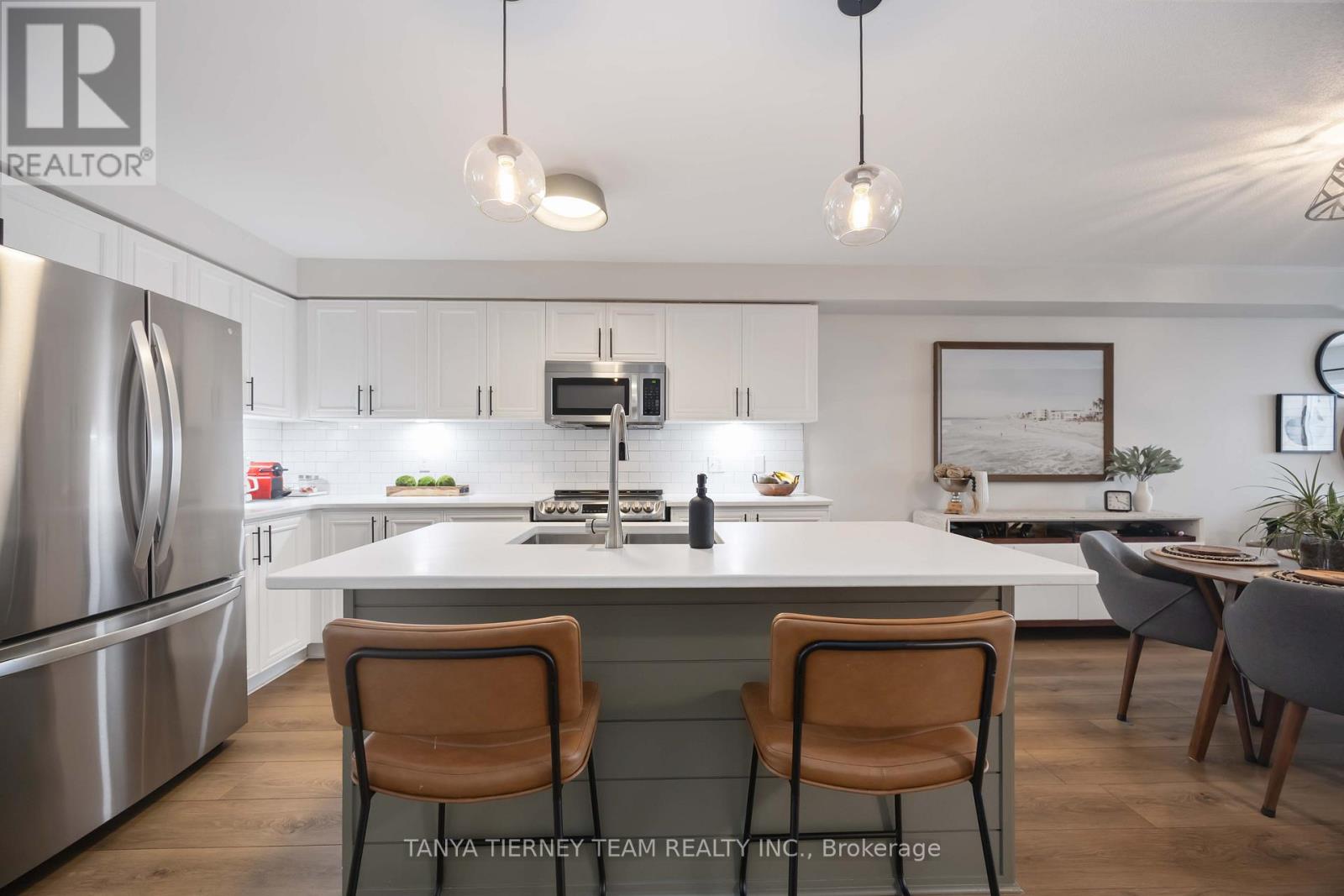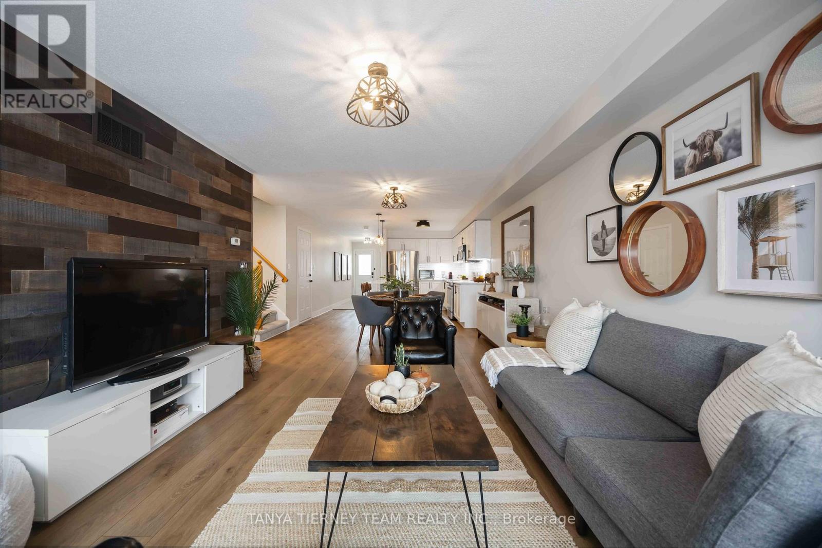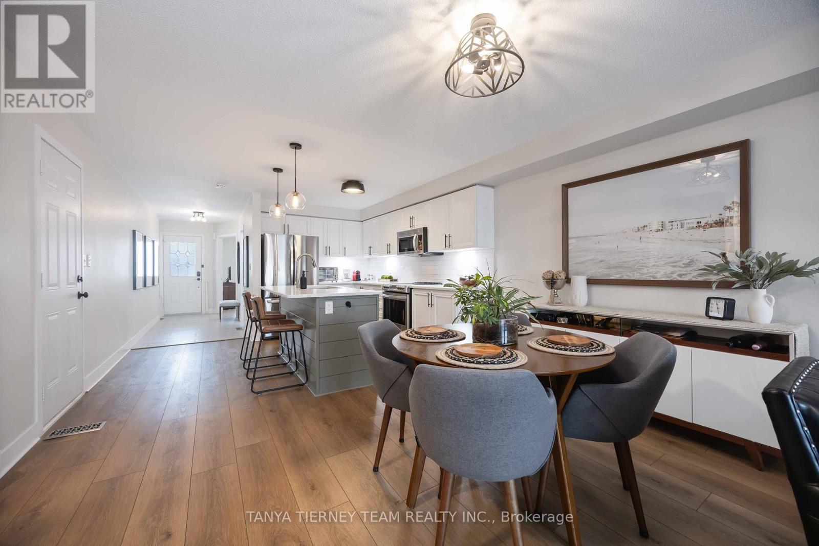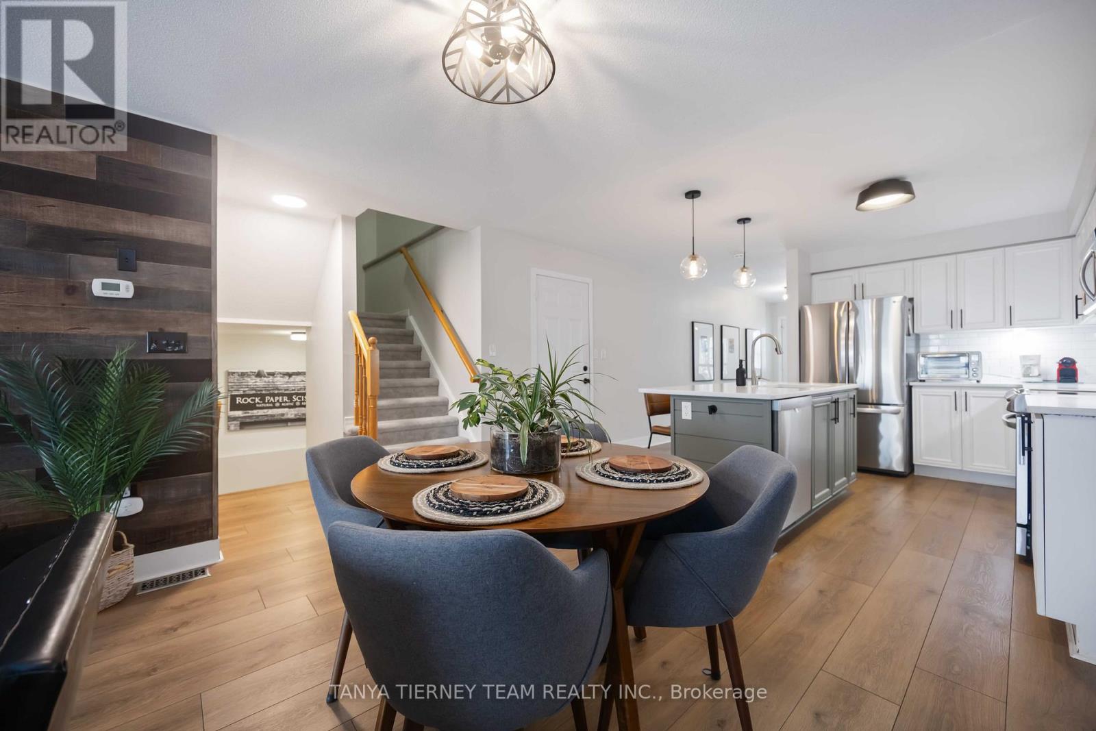 Rarely offered 4+2 bedroom, 4 full bath freehold townhome in a sought-after West End Peterborough community. This unique property offers exceptional multi-generational living potential with a fully finished basement featuring a kitchenette (outlet for stove) OR an upper-level retreat with 2 bedrooms, 4pc bath and family room. A true unicorn! The sun-filled open concept main floor features luxury vinyl plank flooring, neutral décor, an inviting family room with feature wall and walk-out to the entertainers deck and fully fenced backyard. The upgraded kitchen includes quartz countertops, centre island with breakfast bar, pendant lighting, subway tile backsplash, stainless steel appliances and a generous dining area. Main floor also offers a laundry room, 4pc bath and 2 spacious bedrooms including a primary with 3pc ensuite and walk-in closet. The upper level provides an additional 2 bedrooms, 4pc bath and separate family room-ideal for teens, guests or extended family. The fully finished basement includes 2 bedrooms, 4pc bath, a large rec room, above-grade windows and convenient kitchenette area. Parking for 4. Steps to schools including Fleming College, parks, transit and major amenities. Perfect for large families, investors or multi-generational living with over 2,750 sqft of upgraded living space! (id:64974)