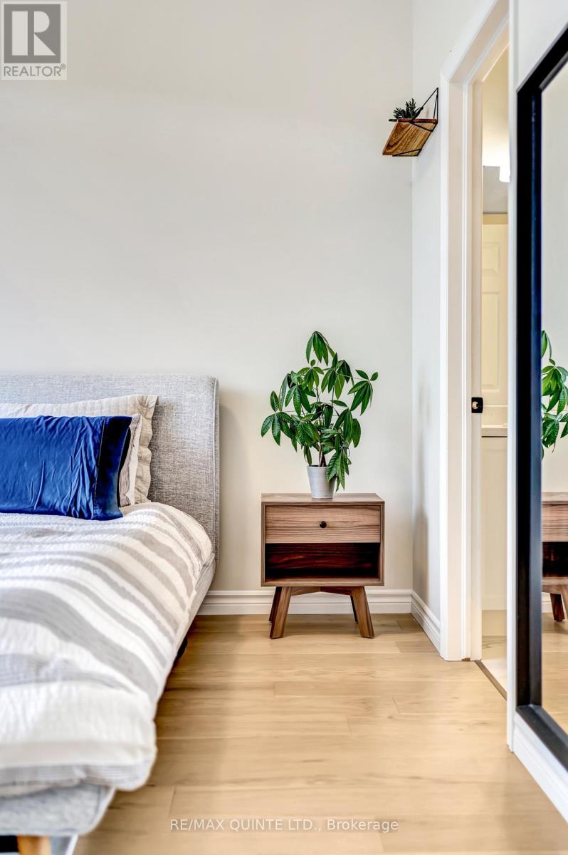Discover effortless luxury in this nearly new Geertsma-built freehold bungalow townhouse, offering over 2,300 sq. ft. of beautifully finished living space. Designed for modern comfort and low-maintenance living, this home features 4 bedrooms, 3 full bathrooms, and an inviting layout perfect for downsizers, professionals, or family seeking elevated lifestyle with minimal upkeep. Main floor features high ceilings and loads of natural light. The bright, open-concept kitchen shines with high-end finishes, quartz countertops, gas stove and seamless flow into the living and dining areas plus main. floor laundry. The primary suite is a true retreat, complete with a spa-inspired 5-piece ensuite and a large walk-in closet. A second main-floor bedroom enjoys its own 4-piece cheater ensuite, ideal for guests or multi-generational living.The fully finished lower level adds impressive versatility, offering two additional bright bedrooms, another full bathroom, and a massive recreation room perfect for entertaining or relaxing. Enjoy the charm of a private back courtyard with gas bbq hook up, plus the convenience of parking and an attached garage.Set in the sought-after Riverstone community, this home is minutes from Highway 401, Quinte Mall, parks, and CFB Trenton. A rare blend of comfort, style, and convenience-this is modern living at its best in one of Belleville's premier locations. This home is loaded with value and can accommodate a quick closing. (id:64974)