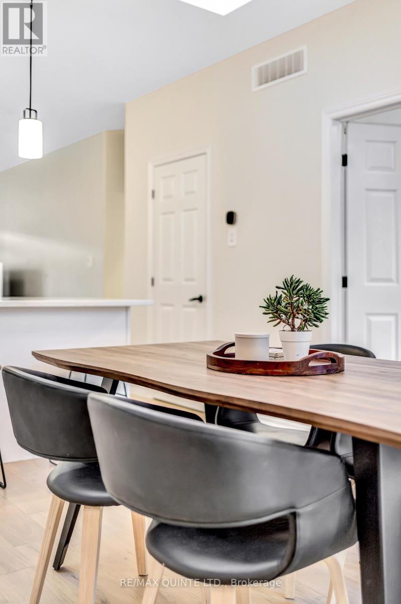 Discover effortless luxury in this nearly new Geertsma-built freehold bungalow townhouse, offering over 2,300 sq. ft. of beautifully finished living space. Designed for modern comfort and low-maintenance living, this home features 4 bedrooms, 3 full bathrooms, and an inviting layout perfect for downsizers, professionals, or family seeking elevated lifestyle with minimal upkeep. Main floor features high ceilings and loads of natural light. The bright, open-concept kitchen shines with high-end finishes, quartz countertops, gas stove and seamless flow into the living and dining areas plus main. floor laundry. The primary suite is a true retreat, complete with a spa-inspired 5-piece ensuite and a large walk-in closet. A second main-floor bedroom enjoys its own 4-piece cheater ensuite, ideal for guests or multi-generational living.The fully finished lower level adds impressive versatility, offering two additional bright bedrooms, another full bathroom, and a massive recreation room perfect for entertaining or relaxing. Enjoy the charm of a private back courtyard with gas bbq hook up, plus the convenience of parking and an attached garage.Set in the sought-after Riverstone community, this home is minutes from Highway 401, Quinte Mall, parks, and CFB Trenton. A rare blend of comfort, style, and convenience-this is modern living at its best in one of Belleville's premier locations. This home is loaded with value and can accommodate a quick closing. (id:64974)
