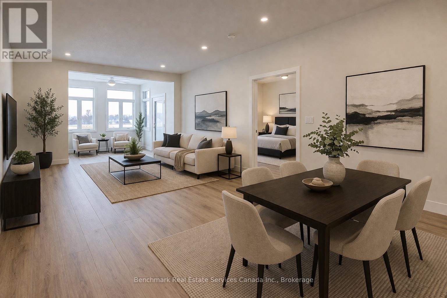 Welcome to easy, carefree living in this beautifully designed 2-bedroom, 2-bathroom bungalow condo, nestled in the quiet and welcoming town of Ripley. With 1,310 square feet of thoughtfully laid-out living space, this home offers the perfect blend of comfort, convenience, and low-maintenance living, all on one floor. Step inside to an open-concept layout with wide hallways and doorways, ideal for those seeking a barrier-free lifestyle. The spacious kitchen flows seamlessly into the bright living and dining areas, perfect for entertaining or simply enjoying everyday life. There are two generously sized bedrooms including a primary suite which includes a walk in closet and an ensuite with step in shower, or enjoy a soak in the main bathroom with an oversized tub & shower combination. Enjoy the benefits of condo living with snow removal and lawn care handled for you, so you can spend more time doing what you love. Just minutes from the sandy shores of Lake Huron, this home offers small-town charm with easy access to the beach, local shops, and nearby amenities. Whether you're downsizing, retiring, or simply looking for a fresh start in a friendly community, this bungalow condo is a perfect fit. Don't miss this rare opportunity to own a stylish and accessible home in one of Huron-Kinloss most desirable locations. (id:64974)
