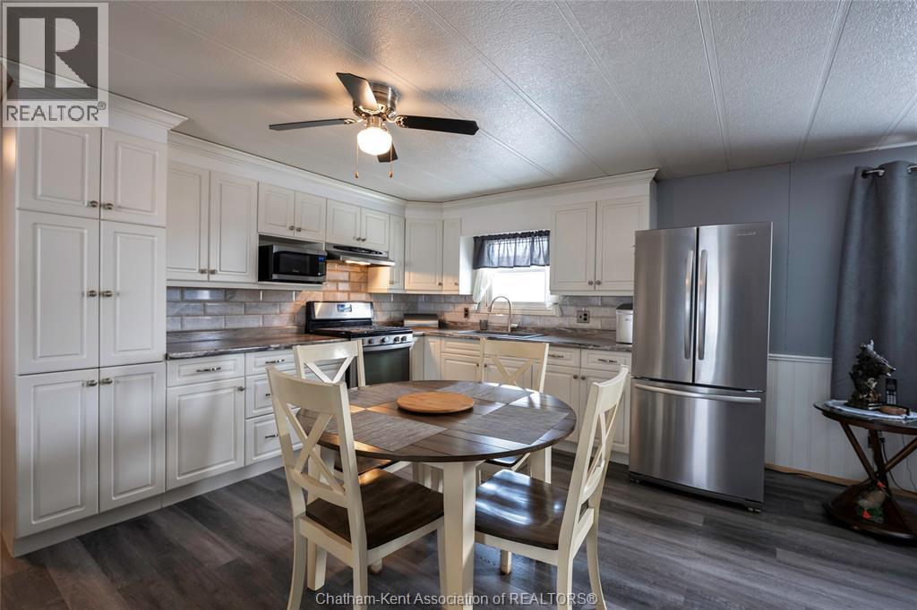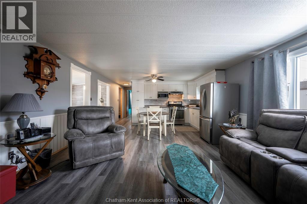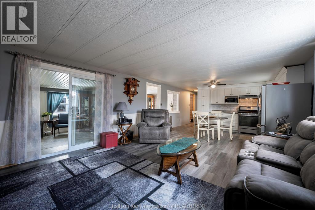 Welcome to 63 Dunkirk, a beautifully updated 2-bedroom, 1-bathroom mobile home located in the highly sought-after St. Clair Estates—a well-maintained, safe, and community-oriented park known for its pride of ownership and active lifestyle. This home offers impressive space and thoughtful upgrades throughout. Both bedrooms are exceptionally large, easily accommodating king-size beds with room to spare for desks, dressers, or sitting areas—perfect for those who refuse to compromise on comfort. The kitchen has been renovated with new flooring, creating a fresh, functional space that flows seamlessly into the living and dining areas. A standout feature is the fully framed-in, four-season sunroom, offering additional living space year-round. Whether used as a dining nook for morning coffee or a cozy spot for late-night dinners, it adds warmth, versatility, and charm to the home. Outdoors, enjoy a fully fenced yard, dual parking spaces, and two storage sheds for all your extras. Relax and unwind in your private hot tub, complete with a dedicated indoor hot tub room—a rare and luxurious bonus. For added peace of mind, the home is equipped with a Generac generator, ensuring comfort and functionality during any power outages. With new siding, modern updates, and a layout that feels far more spacious than expected, this home is an excellent opportunity for first-time buyers, retirees, or anyone seeking affordable living without sacrificing lifestyle. (id:64974)