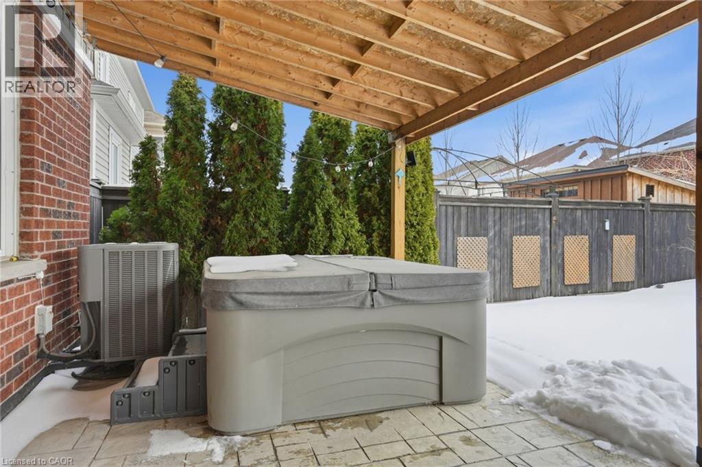 Step into luxury at 63 Fowler Drive, a stunning 2-storey executive home offering a true 2,881 square feet of refined living space above grade. Set on a premium lot in a family-first community, this home impresses immediately with a stone-accented façade and stamped concrete porch. Inside, the layout is breathtaking, featuring soaring ceilings open to the upper level in the living room, gleaming hardwood floors, and a main-floor private office perfect for working from home. The heart of the home is the upgraded, oversized chef’s kitchen featuring granite counters, a gas stove, and an extended pantry. It flows seamlessly to your private backyard oasis—an entertainer’s dream featuring a hot tub, built-in fire pit, and a custom stamped concrete patio with an extended awning for all-weather enjoyment. Upstairs offers bedroom-level laundry and four spacious bedrooms, including a primary retreat with a walk-in closet and spa-like 5-piece ensuite. The newly finished (2023) basement is a massive value-add. Currently set up with a cozy rec room, electric fireplace, and games area, it also features a large, unfinished storage wing designed to hide clutter. Bonus: This unfinished space offers the perfect footprint to add a bedroom, kitchen, and bath for a future in-law suite—ideal for multi-generational living or a mortgage-helping income unit. Located minutes from top-rated schools, the Binbrook Fairgrounds, and conservation trails. Brand new furnace. Don’t miss this rare find! (id:64974)