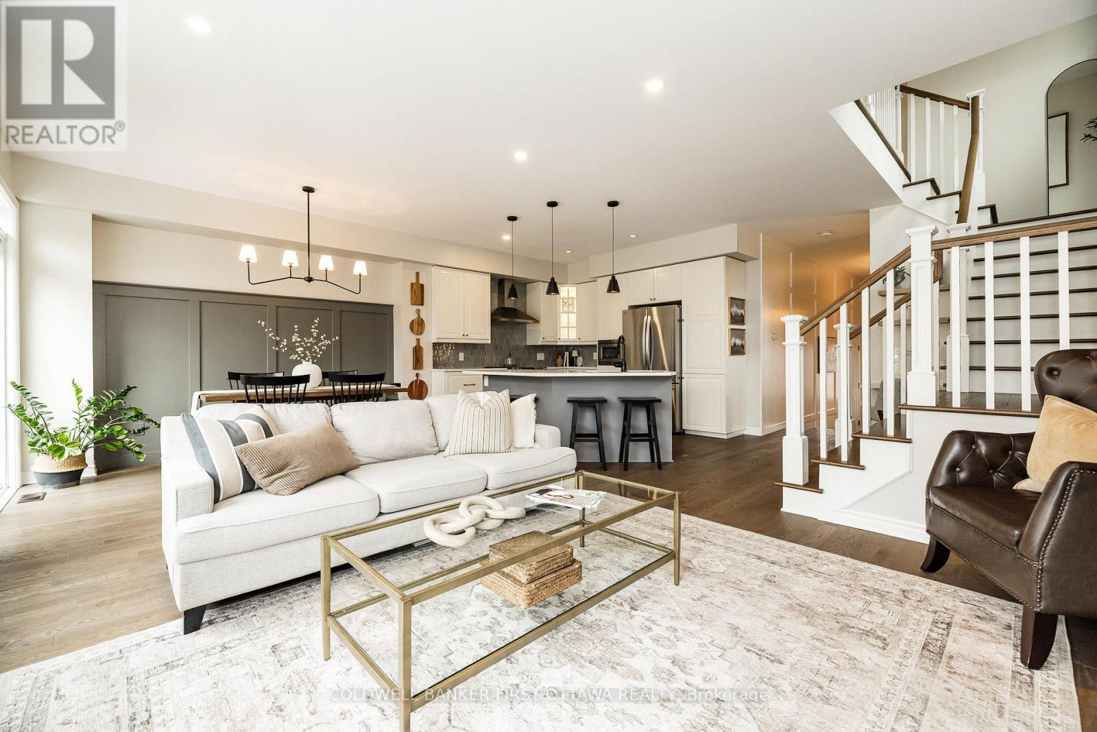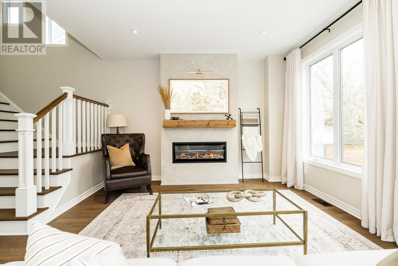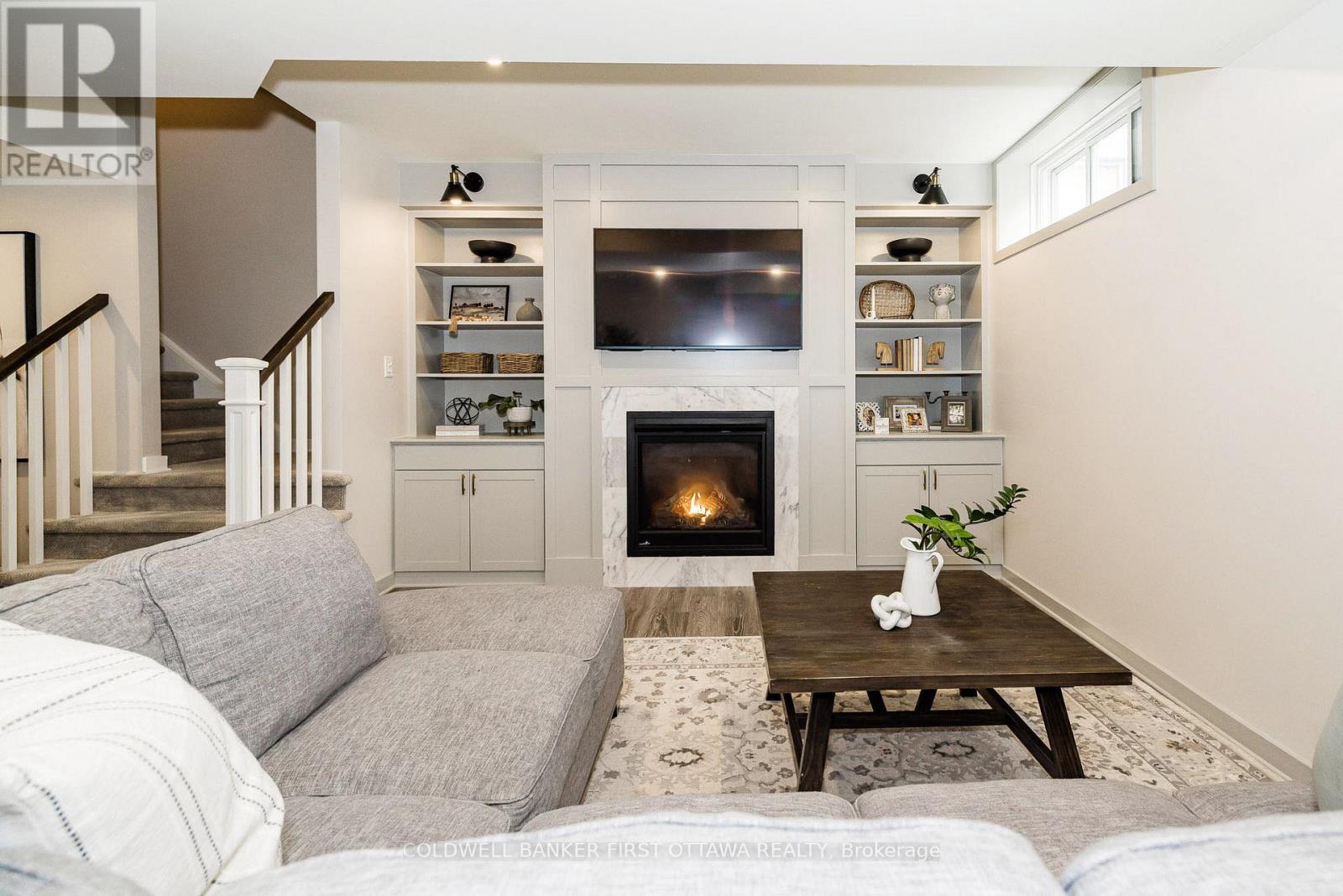 This beautiful 3-bedroom, 3-bathroom semi-detached home in Carleton Place offers space, style, and functionality. A spacious foyer welcomes you into the open-concept main floor, featuring a bright living room with fireplace and a modern kitchen with stainless steel appliances, stylish backsplash, and a large island overlooking the dining area with access to the rear yard. A powder room completes this level. Upstairs, the primary bedroom boasts a 5-piece ensuite, accompanied by two additional bedrooms, a full bathroom, and a convenient laundry room. The finished basement includes a recreation area with fireplace, perfect for family gatherings. Step outside to a fully fenced backyard with a deck, ideal for entertaining or enjoying quiet moments outdoors. Conveniently located near shopping, parks, and schools, this home combines comfort and lifestyle. (id:64974)