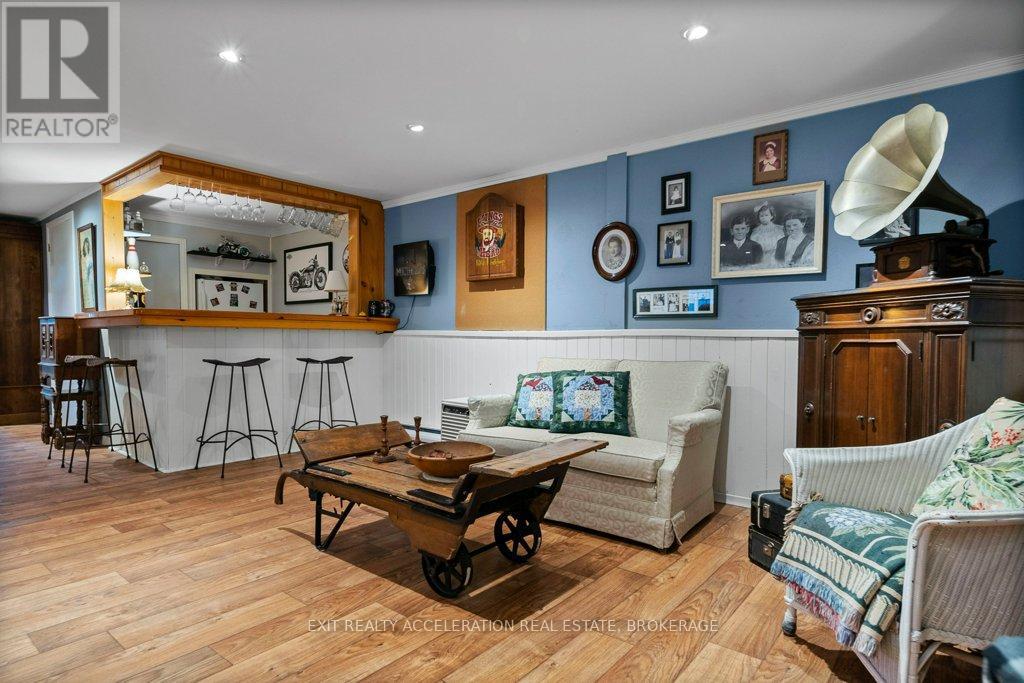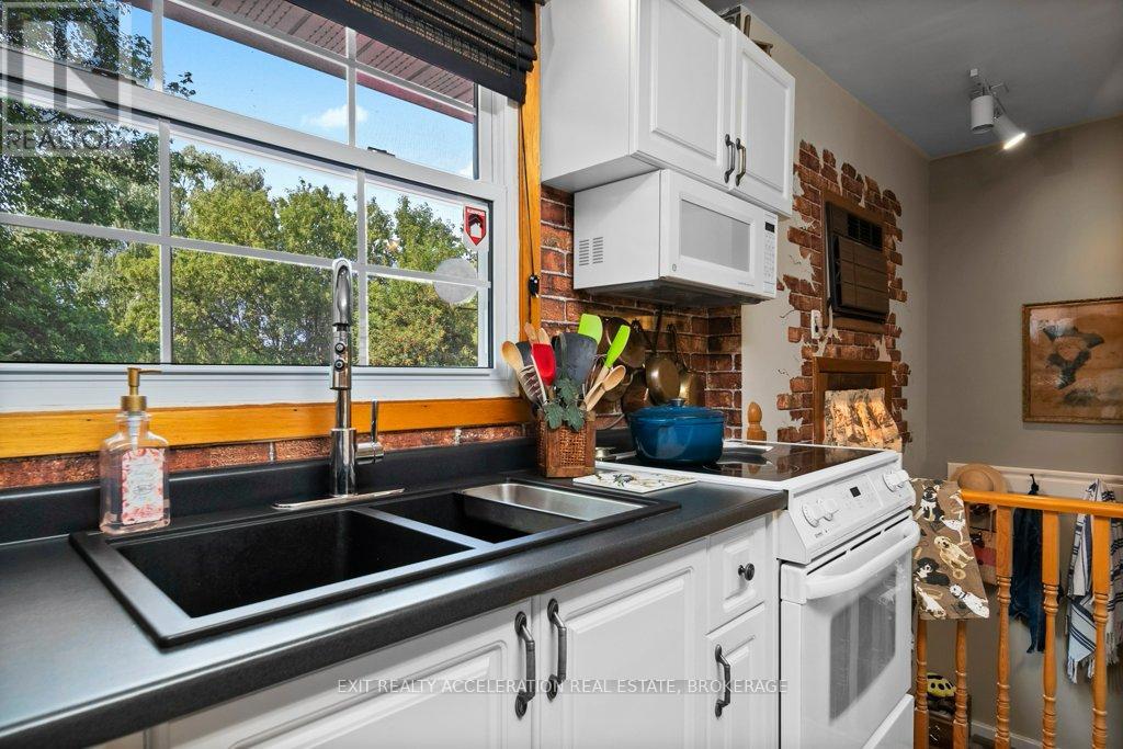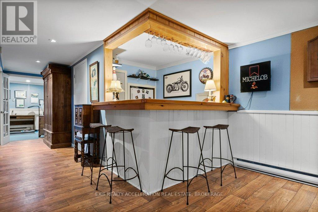 Welcome to this lovely CREEK FRONT, WATER VIEW four-bedroom, two-bathroom bungalow located on the edge of Napanee, where town convenience meets peaceful surroundings. Set on just under half an acre of beautifully landscaped property, this home offers a warm and inviting atmosphere inside and out. The bright kitchen opens easily to the main living spaces, with hardwood flooring flowing throughout the upper level. The attached garage, heated by natural gas, includes a spacious loft for exceptional storage. The finished basement extends the living area with a cozy family room and bar, along with a bedroom featuring its own three-piece ensuite. From the lower level, step into the impressive indoor pool area with a heated in-ground pool (32x14, constant 5ft depth), perfect for year-round enjoyment. Access the screened porch or the deck from here, both offering tranquil views of the landscaped backyard and the Napanee River beyond - an ideal retreat for relaxation or entertaining. (Main house roof - 2015, Pool addition roof - 2022, Decks - 2025, Stone Style Siding - 2023, Front porch rebuild - 2025), Pool liner - 2025, Pool Heater - 2024, Pool Filter - 2024, Pump - 2019, Heat & Moisture Cover - 2023 (id:64974)