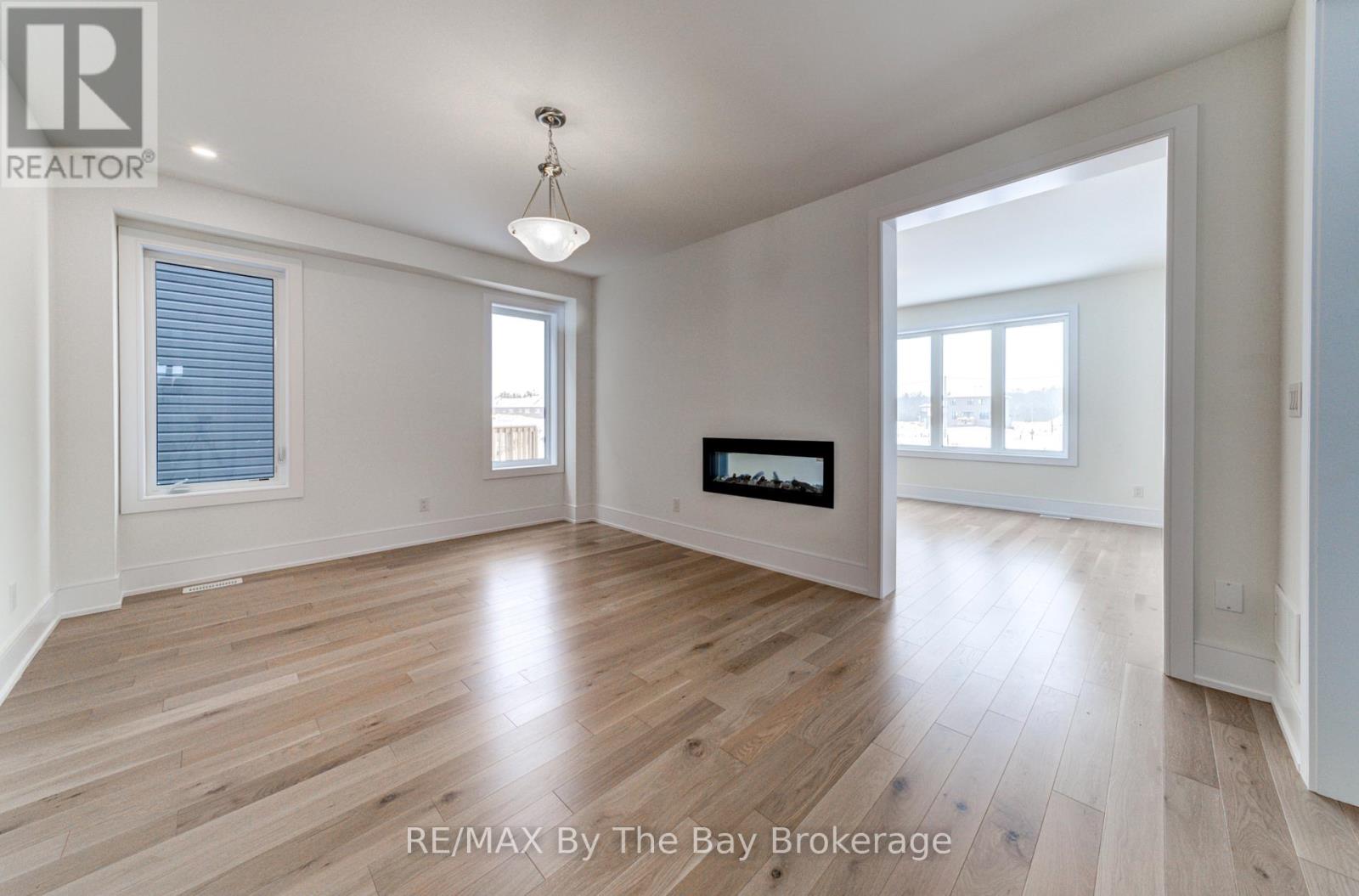 This beautifully appointed 2,811 sq ft new build by Zancor Homes offers everything you've been searching for. Featuring the popular 'Marine' floor plan in Elevation B, this 4 bedroom, 3.5 bathroom home delivers an exceptional blend of space, style, and smart design. Main floor offers 8-foot doors, a semi open-concept layout where upgraded hardwood flooring flows throughout the main level and upstairs hallway, with smooth ceilings on both levels. The living and dining room are connected by a double-sided electric fireplace, creating a warm, inviting atmosphere perfect for entertaining or relaxing with family. The kitchen features upgraded two-tone cabinetry with pull-out garbage bins and complete with stainless steel appliances. A private main floor den provides flexible space for a home office, study, or playroom, while the garage entry mudroom keeps coats, shoes, and bags neatly organized. On the second floor, the primary bedroom provides a spacious walk-in closet and private 5pc ensuite with an upgraded floating vanity. The second bedroom has a private 3pc ensuite with upgraded glass shower, while the third and fourth bedrooms have a connecting 5pc bathroom. The second floor laundry with linen closet means no more hauling baskets up and down stairs, which provides extra convenience for busy households. The River's Edge neighbourhood offers the perfect combination of location, layout, and livability. Walking distance to elementary school, future high school and trails! (id:64974)