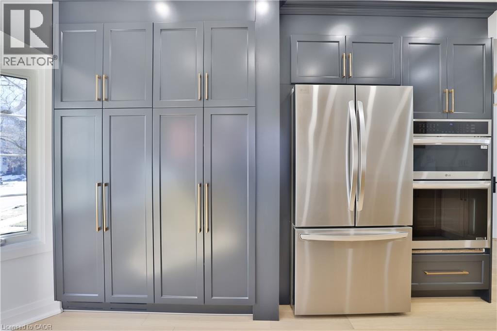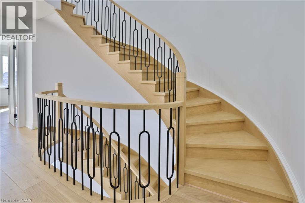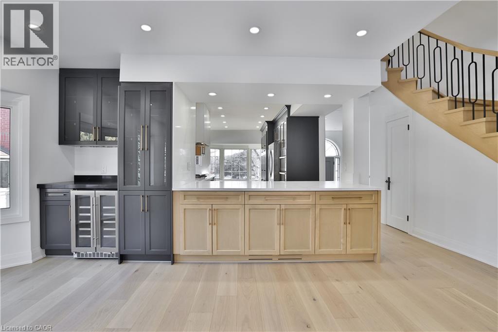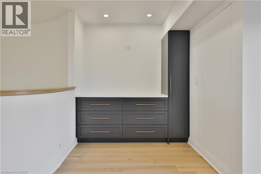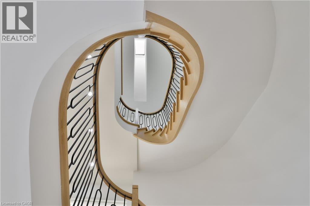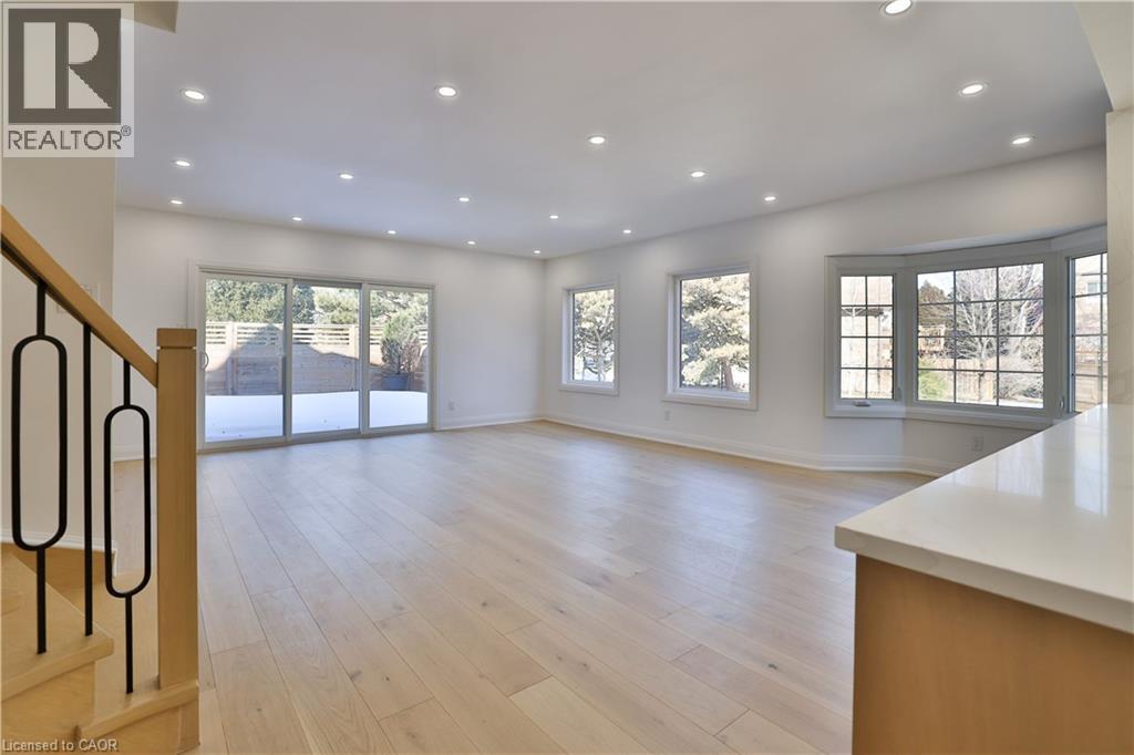Luxury lakeside living in Bronte's coveted Schooner's Reach. Completely reimagined from top to bottom, this exceptional freehold townhome offers nearly 3,000 square feet of beautifully renovated living space just moments from the lake, marina and the vibrant shops and restaurants of Bronte Village. The main level unfolds with wide-plank flooring, expansive sightlines and a stunning redesign of the kitchen and living spaces. The kitchen has been opened and rebuilt with custom cabinetry, quartz surfaces, integrated wall ovens, gas cooktop and striking two-tone finishes that feel both warm and contemporary. Two additional windows were added in the family room to enhance natural light, while a fully rebuilt staircase with hardwood treads and modern railings now acts as an architectural focal point. Extensive pot lighting and thoughtful electrical upgrades further elevate comfort and functionality throughout the home. The second level offers three well-proportioned bedrooms, a beautifully renovated full bath and convenient laundry. Above it all, the entire third floor is dedicated to a remarkable private primary retreat featuring a spacious bedroom, custom dressing space, two walk-in closets, a luxurious five-piece ensuite and its own balcony. A lower-level office, abundant storage, interior access to the double garage and an oversized terrace ideal for outdoor dining and entertaining complete the home. This freehold townhome community offers the convenience of coordinated landscaping, snow removal and seasonal exterior window cleaning without monthly condo fees, a rare opportunity to enjoy the Schooner's Reach lifestyle in a home that has been entirely transformed. (id:64974)