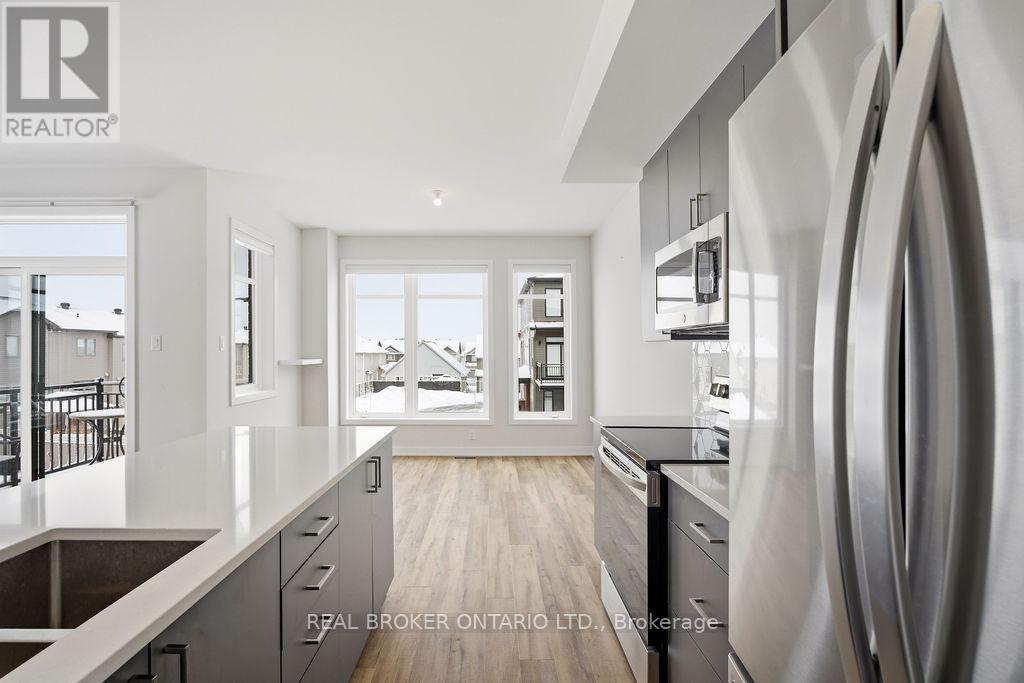 Welcome to this rare end-unit 3-storey townhome in the highly sought-after community of Findlay Creek. Offering 3 spacious bedrooms and a thoughtfully designed layout, this home is perfect for modern living.The bright and airy open-concept second floor features a seamless flow between the living, dining, and kitchen areas, complete with large windows that flood the space with natural light. Step out onto your private balcony-perfect for morning coffee or evening relaxation. A convenient powder room completes this level.A standout feature of this home is the rare main floor den, ideal for a home office, workspace, or flex room to suit your lifestyle.Upstairs, you'll find three well-sized bedrooms, including a primary retreat with a walk-in closet, along with a full bathroom designed for comfort and functionality.Situated on a premium corner lot, this end-unit offers added privacy, extra windows, and an abundance of natural light throughout.A rare opportunity to own a stylish and functional home in one of Ottawa's most desirable neighbourhoods-close to parks, schools, shopping, and all amenities. (id:64974)