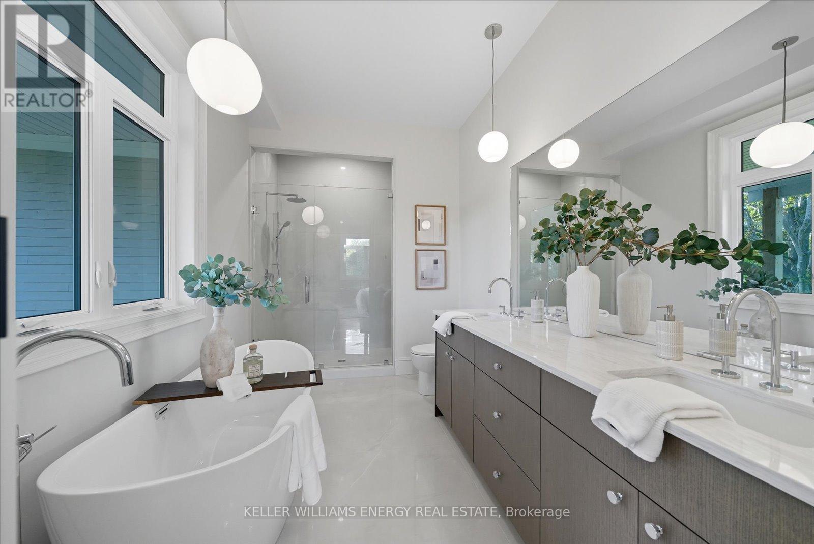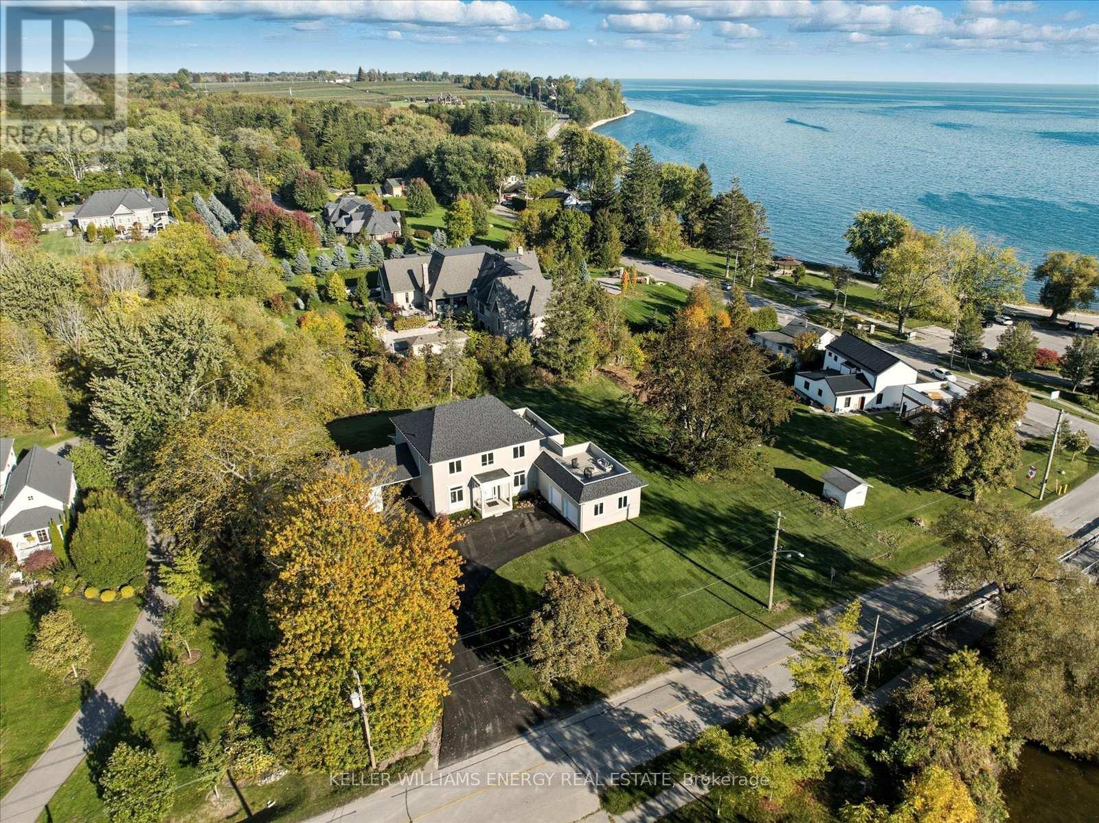 Wake up to Lake Ontario views and step across the street to Bond Head Beach, Marina, Pier, and private boat launch. This one-of-a-kind custom-built residence offers a rare blend of refined luxury and relaxed lakeside living in the historic Bond Head community. Soaring 10' main-floor ceilings and a dramatic 20' great room create an immediate sense of scale and light. The open-concept kitchen features a servery and walk-out to a wraparound deck-perfect for entertaining or quiet mornings by the water. The main-floor primary suite is a private retreat, complete with walk-in closet, spa-inspired ensuite, walk-out access, and serene lake views. Upstairs, a stylish sitting lounge with built-in minibar opens to a rooftop terrace offering unparalleled panoramic views of Lake Ontario. An oversized, private backyard provides approximately 2,000 sq ft of outdoor living space, including a covered entertainer's deck. Additional highlights include main-floor laundry, abundant storage, and two attached garages (one with carport). A rare opportunity to own a truly exceptional home in one of Newcastle's most coveted waterfront locations. (id:64974)
