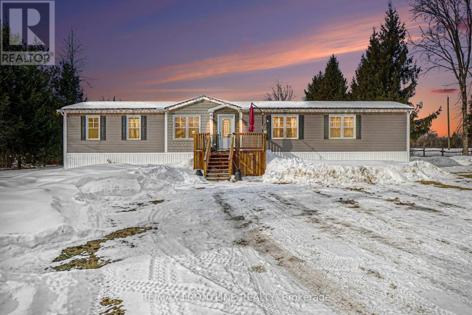 Welcome to your next chapter - a beautifully crafted bungalow (just under 1100 sqft) built in 2022, nestled on a generous 1.5-acre lot with 150 feet of road frontage. This thoughtfully designed two-bedroom, two-bathroom Modular home is flooded with natural daylight and features carpet-free living throughout, a spacious kitchen with a centre island, and a cozy modern propane fireplace which adds warmth and ambiance during those chilly evenings. Outside is where this property truly shines. A large private deck with a gazebo creates the perfect spot for morning coffee, summer barbecues, or simply soaking in the tranquility of your surroundings. This property also boasts a large wired and insulated storage shed/ work shop with a pellet stove. Ideal for a craftsmen.Conveniently situated just on the edge of Smiths Falls, you're minutes from shopping, dining, and the local hospital. This property perfectly blends modern living with peaceful rural charm. Fridge, stove, washer and dryer are included, making this a seamless move-in experience. Perfect for couples, downsizers, or anyone seeking a low-maintenance lifestyle.Do not miss your chance to own this nearly new gem. Book your private showing today! (id:64974)