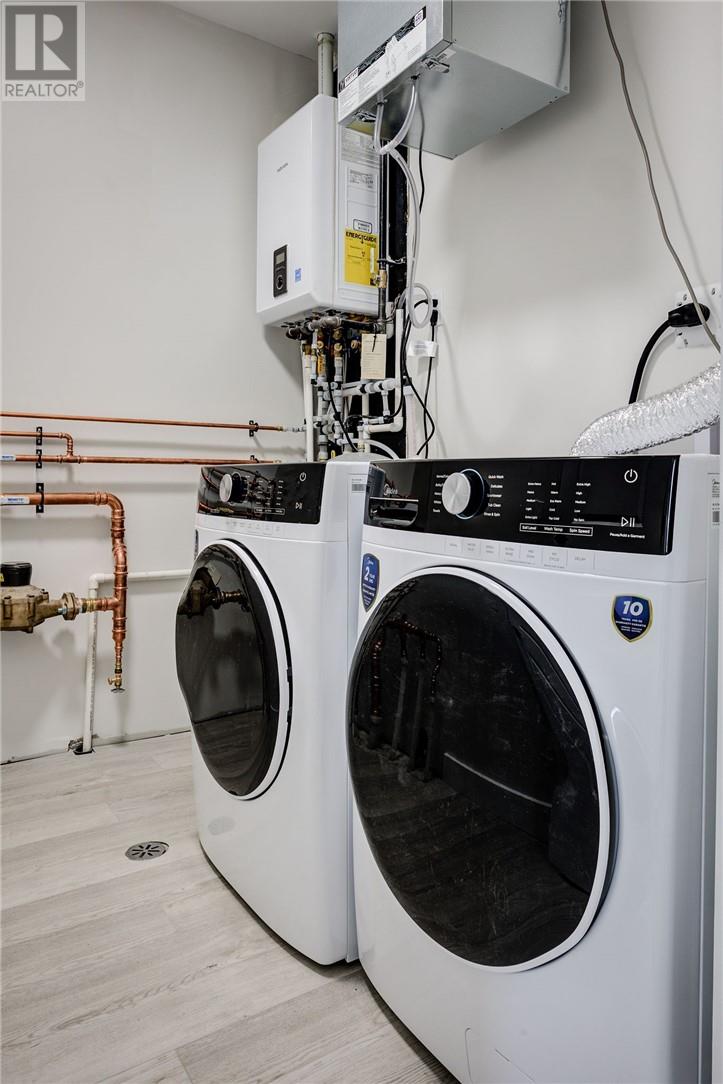 Large, BRAND NEW 1200 sqft 2 bed 2 bath townhomes. Only 1 unit left! This slab on grade 2 storey building offers a main floor kitchen, dining and living room with a main floor bath and walkout to the backyard with a large deck and privacy fencing. The upstairs offers two large bedrooms and a walk in closet and utility room with washer dryer and a full bathroom. These units are brand new and each unit has independent gas heating system with infloor heat boiler, electrical panel and hrv. High end finishings with soft close white cabinets, quartz countertops, air conditioning and more! (id:64974)