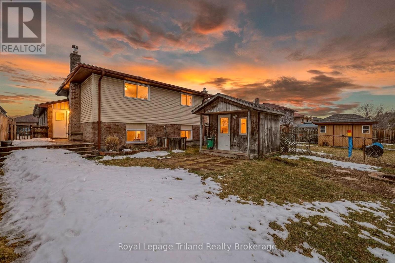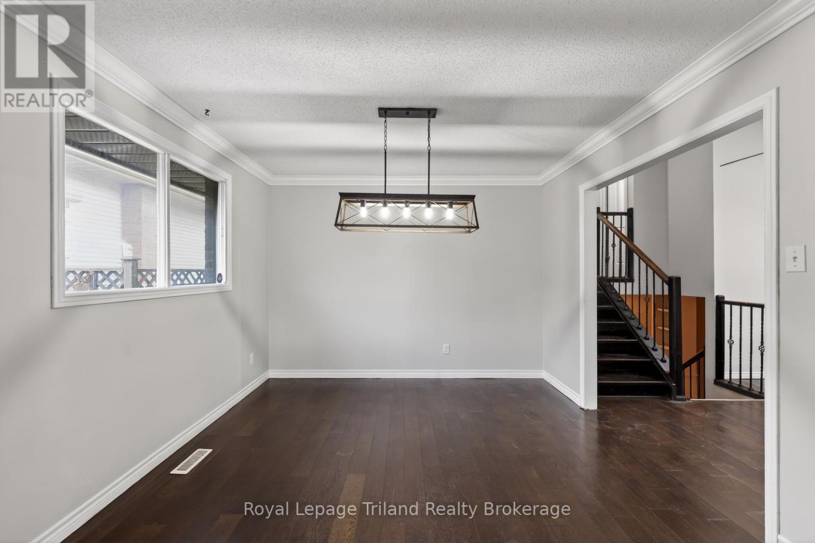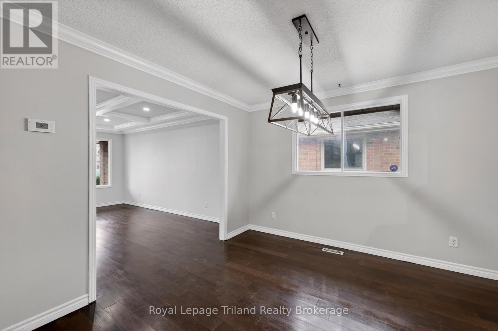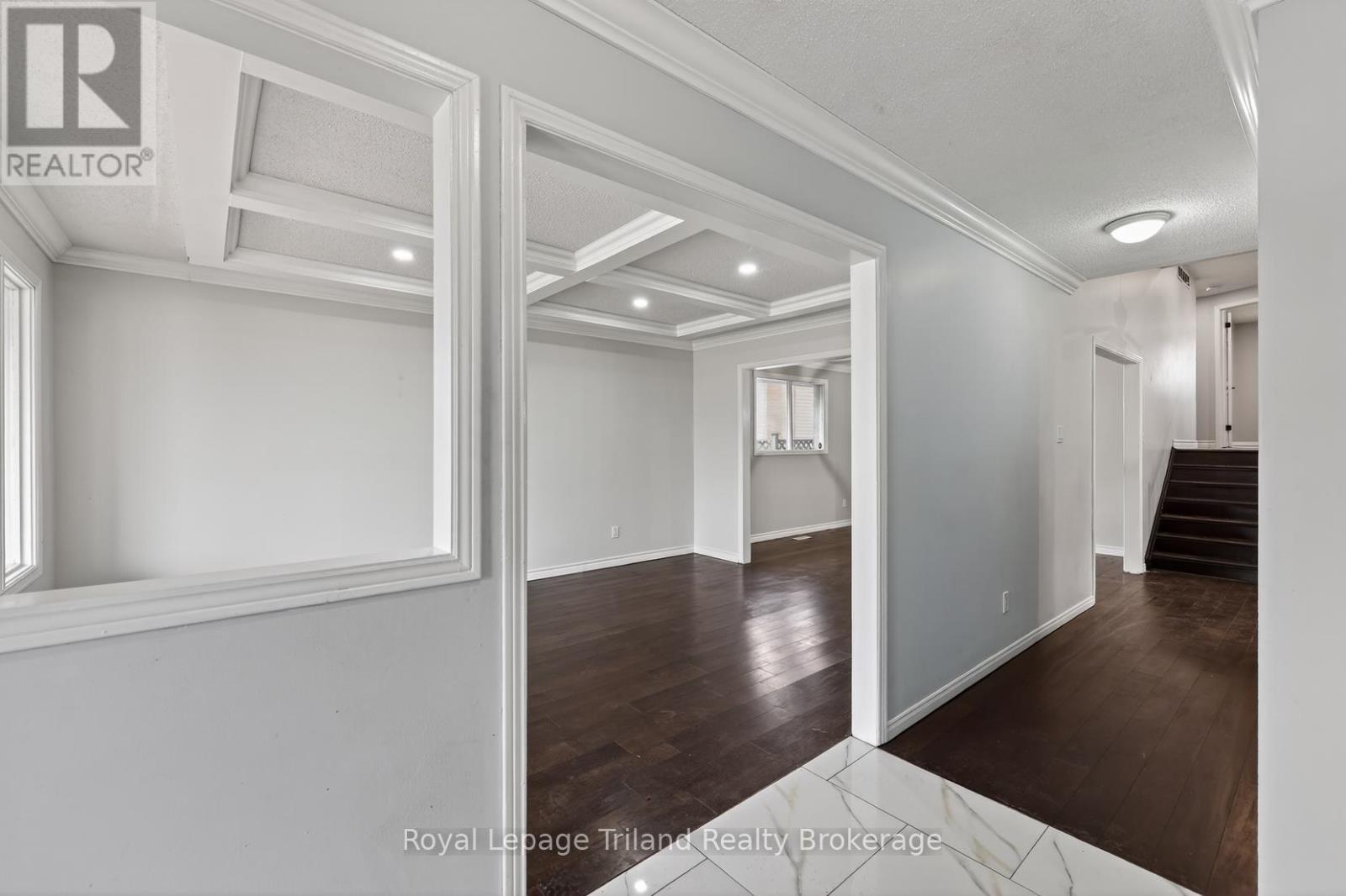 Room to live and space to grow! Bright and welcoming, this 3 bedroom, 2 full bathroom 4-level backsplit offers a layout that works. Set in Whitlow Estates, an East London pocket known for its quiet streets and strong sense of community, this home is ideally suited for family living. 2224+/- sq. ft. of finished living space on 4 levels. The 40' x 147' lot is extra deep, are you thinking a future pool? Great curb appeal - a handsome brick exterior, easy-care landscaping, double drive, attached garage, and a covered front porch that makes a strong first impression. Step inside to a bright foyer with porcelain tile floors that set the tone right away. Clean lines, neutral finishes and carpet-free flooring throughout the main and lower levels. Natural light fills the living room, highlighting the coffered ceilings and front window. Everyday meals and weekend gatherings come together in the sun-filled dining room. The kitchen is also bright and well laid out, with a center island, breakfast bar, skylight and plenty of cabinetry and counter space. Step out from the kitchen to the private side deck, a natural extension of your living space for BBQs and patio furniture. Sweet dreams are calling in any of the 3 well-sized upper-level bedrooms, served by a 4-piece bath. A few steps down, the lower level is a great retreat, featuring a huge family room, above-grade windows & a 3-piece bath. You'll find a rec room, den/office or 4th bedroom by adding an egress window, laundry and storage in the basement. The layout offers potential for a future in-law suite. The fenced backyard offers space to spread out - for play, pets & gatherings. Close to numerous schools, parks, recreation, shopping and public transit. A quick jaunt to the 401 or Veterans Memorial Pkwy. Notable updates: furnace 2024, garage door 2024, shingles 2020. A great family home that fits today and still works for what comes next. (id:64974)