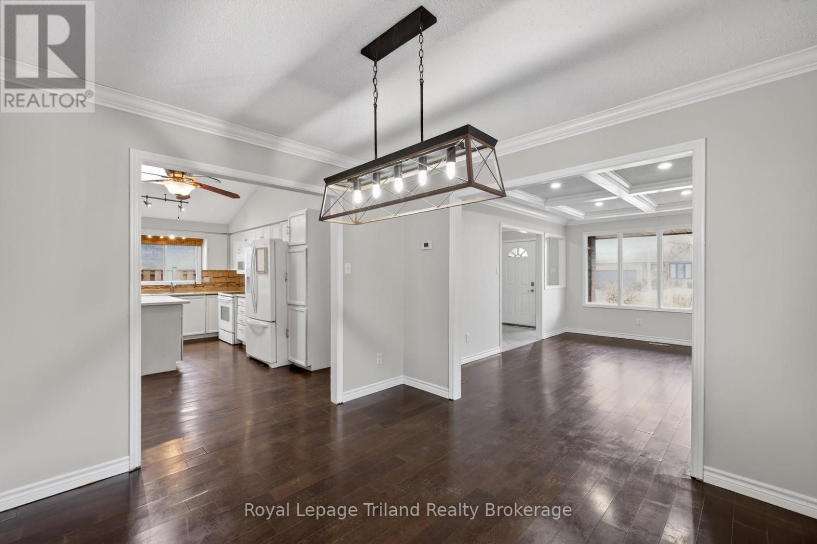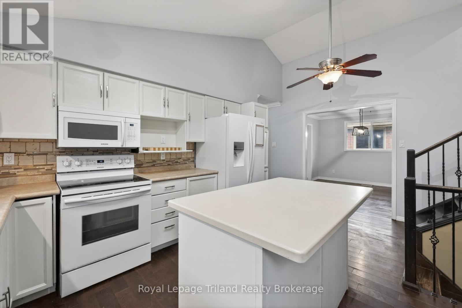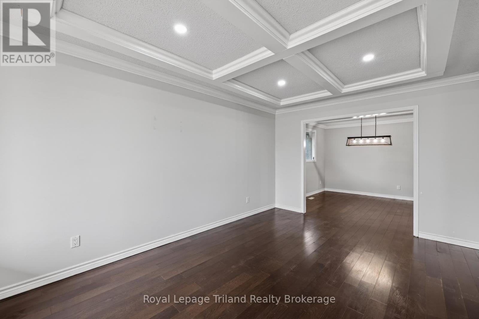 Room to live and space to grow! Bright and welcoming, this 3 bedroom, 2 full bathroom 4-level backsplit offers a layout that works. Set in Whitlow Estates, an East London pocket known for its quiet streets and strong sense of community, this home is ideally suited for family living. 2224+/- sq. ft. of finished living space on 4 levels. The 40' x 147' lot is extra deep, are you thinking a future pool? Great curb appeal - a handsome brick exterior, easy-care landscaping, double drive, attached garage, and a covered front porch that makes a strong first impression. Step inside to a bright foyer with porcelain tile floors that set the tone right away. Clean lines, neutral finishes and carpet-free flooring throughout the main and lower levels. Natural light fills the living room, highlighting the coffered ceilings and front window. Everyday meals and weekend gatherings come together in the sun-filled dining room. The kitchen is also bright and well laid out, with a center island, breakfast bar, skylight and plenty of cabinetry and counter space. Step out from the kitchen to the private side deck, a natural extension of your living space for BBQs and patio furniture. Sweet dreams are calling in any of the 3 well-sized upper-level bedrooms, served by a 4-piece bath. A few steps down, the lower level is a great retreat, featuring a huge family room, above-grade windows & a 3-piece bath. You'll find a rec room, den/office or 4th bedroom by adding an egress window, laundry and storage in the basement. The layout offers potential for a future in-law suite. The fenced backyard offers space to spread out - for play, pets & gatherings. Close to numerous schools, parks, recreation, shopping and public transit. A quick jaunt to the 401 or Veterans Memorial Pkwy. Notable updates: furnace 2024, garage door 2024, shingles 2020. A great family home that fits today and still works for what comes next. (id:64974)
