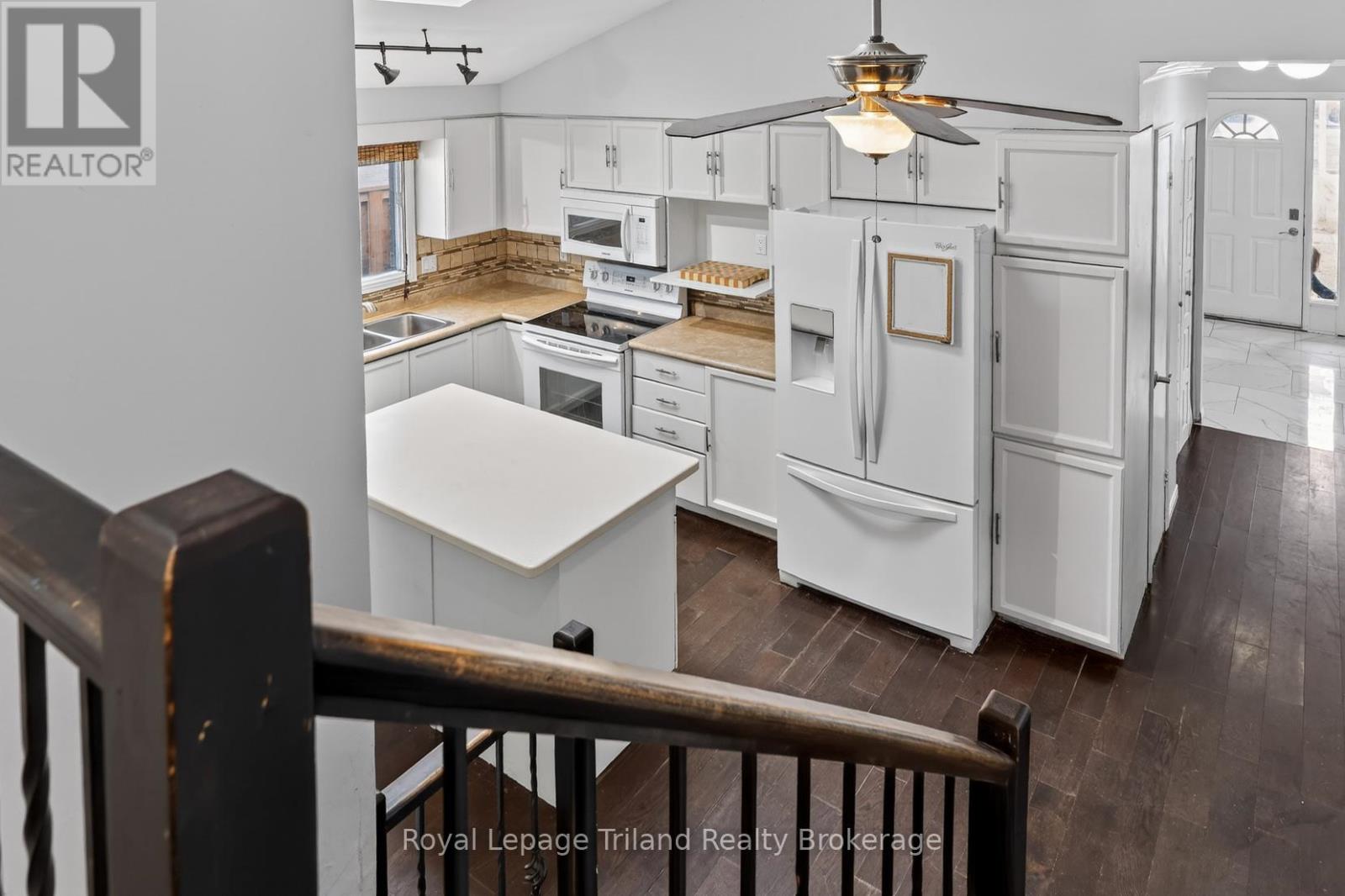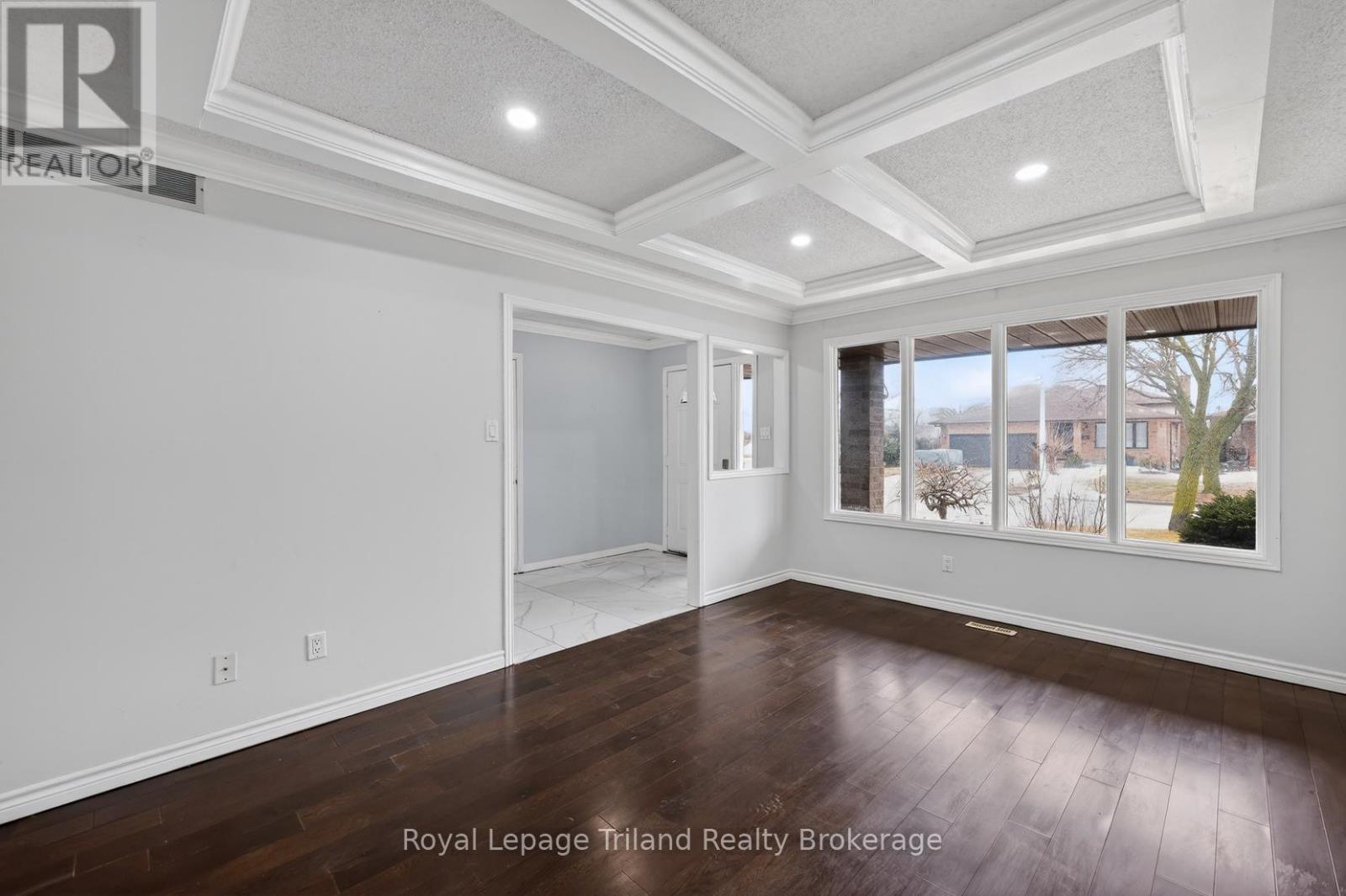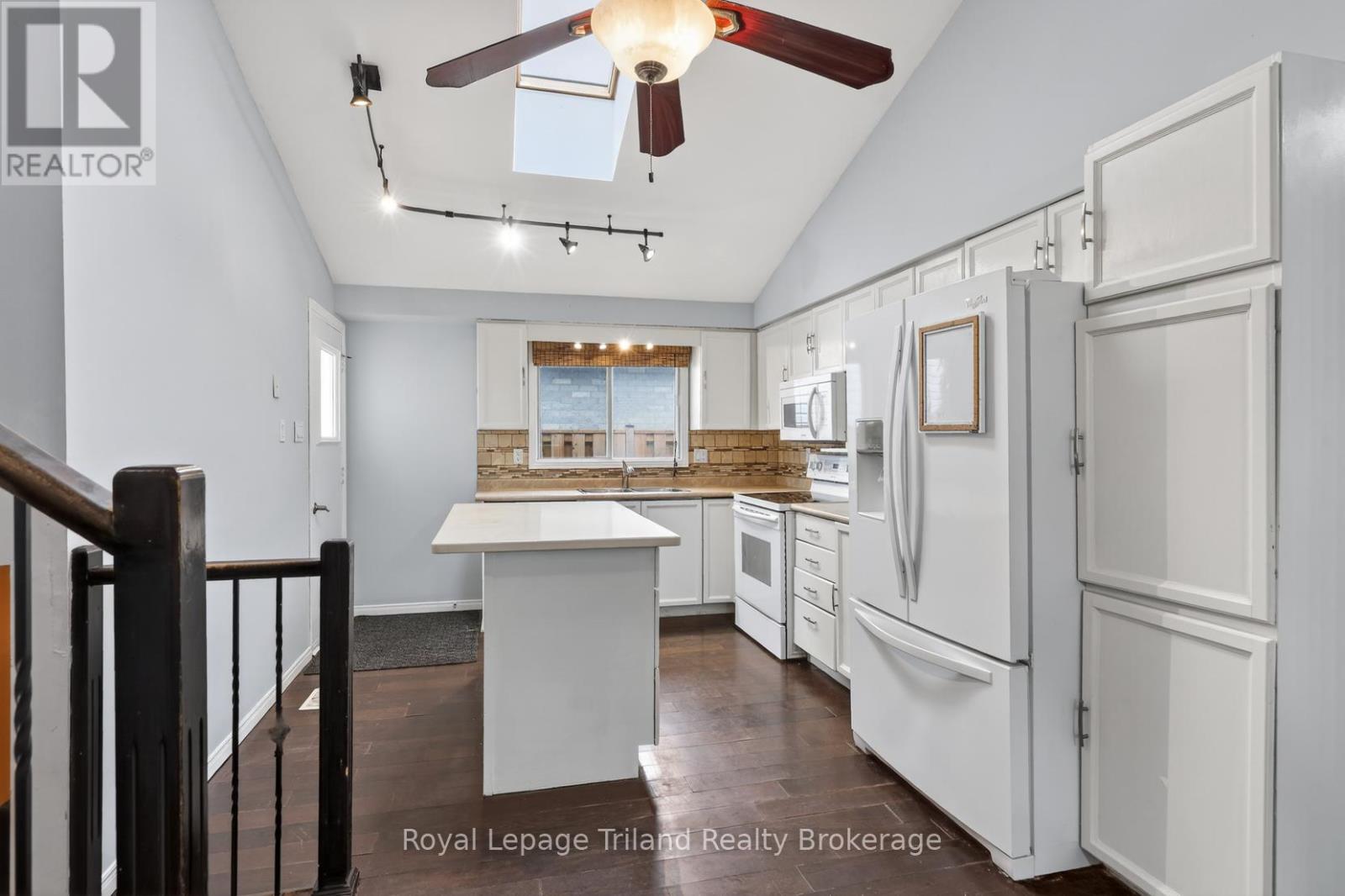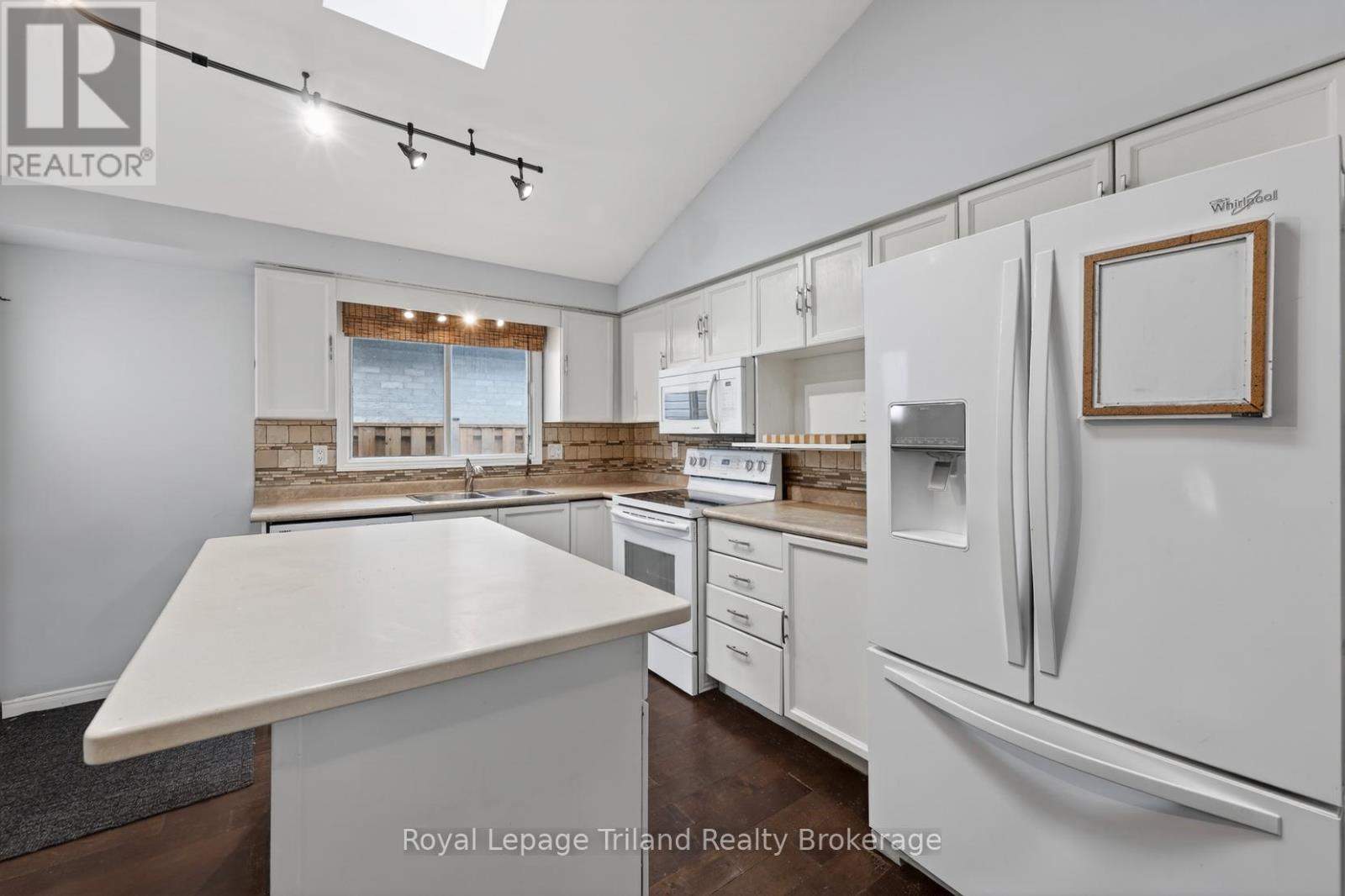 Room to live and space to grow! Bright and welcoming, this 3 bedroom, 2 full bathroom 4-level backsplit offers a layout that works. Set in Whitlow Estates, an East London pocket known for its quiet streets and strong sense of community, this home is ideally suited for family living. 2224+/- sq. ft. of finished living space on 4 levels. The 40' x 147' lot is extra deep, are you thinking a future pool? Great curb appeal - a handsome brick exterior, easy-care landscaping, double drive, attached garage, and a covered front porch that makes a strong first impression. Step inside to a bright foyer with porcelain tile floors that set the tone right away. Clean lines, neutral finishes and carpet-free flooring throughout the main and lower levels. Natural light fills the living room, highlighting the coffered ceilings and front window. Everyday meals and weekend gatherings come together in the sun-filled dining room. The kitchen is also bright and well laid out, with a center island, breakfast bar, skylight and plenty of cabinetry and counter space. Step out from the kitchen to the private side deck, a natural extension of your living space for BBQs and patio furniture. Sweet dreams are calling in any of the 3 well-sized upper-level bedrooms, served by a 4-piece bath. A few steps down, the lower level is a great retreat, featuring a huge family room, above-grade windows & a 3-piece bath. You'll find a rec room, den/office or 4th bedroom by adding an egress window, laundry and storage in the basement. The layout offers potential for a future in-law suite. The fenced backyard offers space to spread out - for play, pets & gatherings. Close to numerous schools, parks, recreation, shopping and public transit. A quick jaunt to the 401 or Veterans Memorial Pkwy. Notable updates: furnace 2024, garage door 2024, shingles 2020. A great family home that fits today and still works for what comes next. (id:64974)