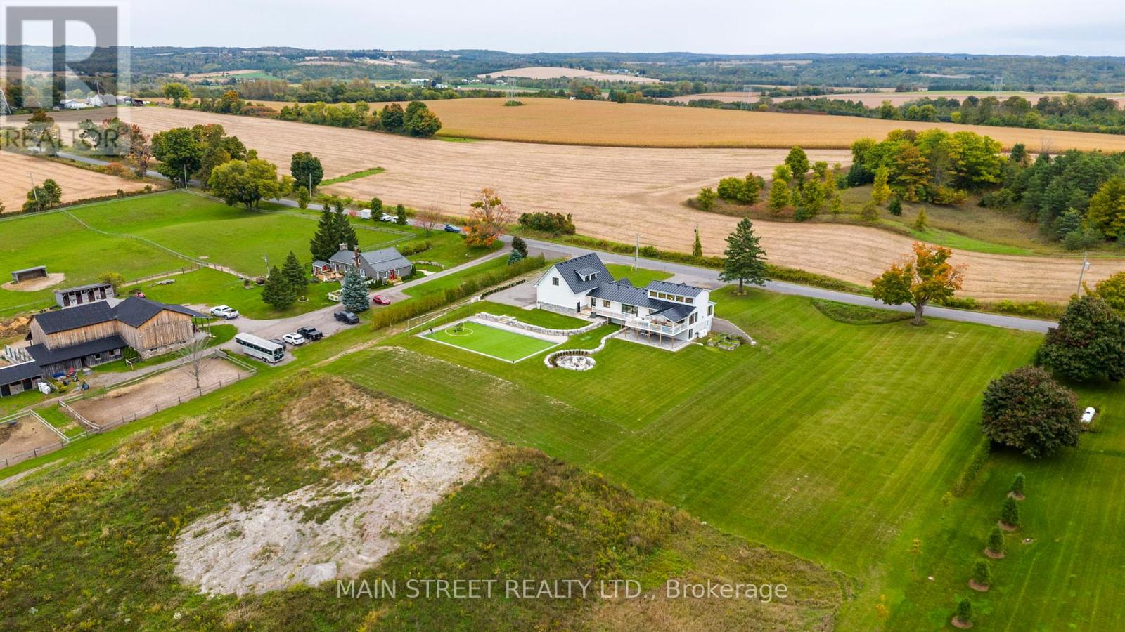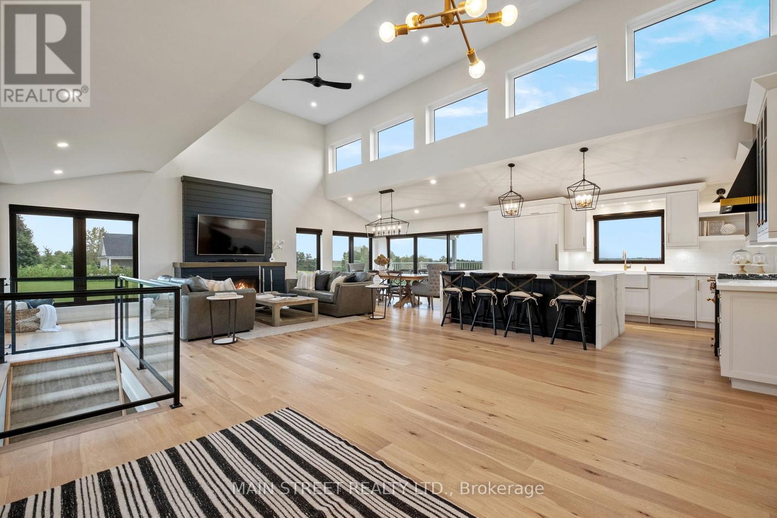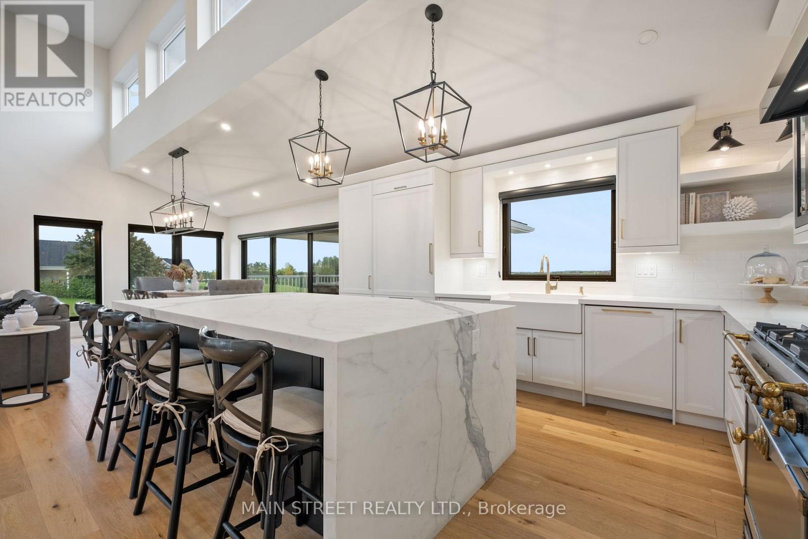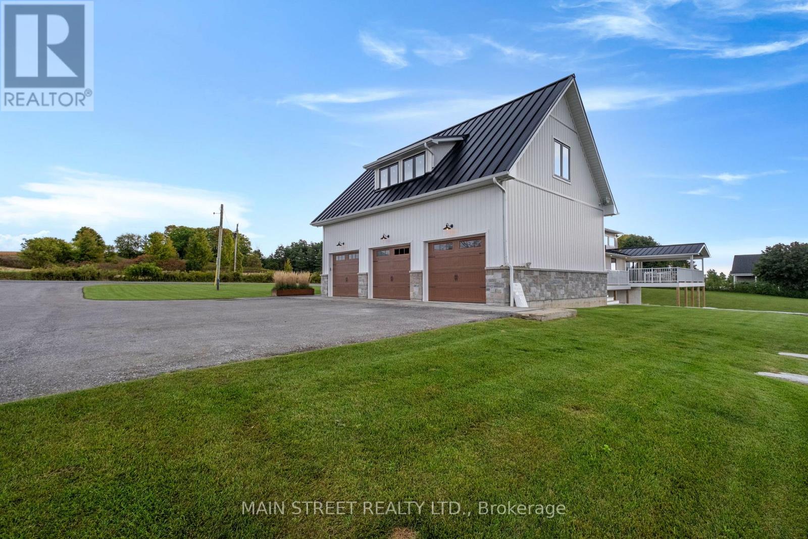 Welcome to a one-of-a-kind retreat nestled on 10 breathtaking acres. Experience the pinnacle of country living with easy and convenient access to urban amenities. This custom built luxury bungalow includes 3+1 bedrooms, 3 full bathrooms, with sweeping pastoral views of rolling hills, horse pastures, and lush apple orchards.Inside, every detail exudes elegance from soaring 18 foot ceilings and clerestory windows to engineeredhardwood flooring throughout. The stunning designer kitchen features top-of-the-line Rocpal cabinetry, LaCornue range, integrated SubZero fridge, and a fantastic 8x5 island with honed porcelain waterfall countertops. The open concept design is flooded with natural light and floor to ceiling windows in nearly every room. Multiple walkouts access the expansive composite deck that spans the entire back of the home - perfect for entertaining. Relax in the spacious bedrooms with custom closet organizers, spa-like bathrooms, and stylish laundry/boot room perfect for busy families. The basement boasts an open concept rec space, separate entrance/mudroom, walk out to backyard, extra large storage room, guest room and a BRAND NEW FULL BATHROOM ideal for guests and families. Outside, adventure awaits! Explore the winding trails through heritage apple trees on foot or by ATV/snowmobile. Gather around the fire pit under the stars, or transform the custom 2,800 sq.ft. turf sports field into your own skating rink in the winter for year round enjoyment. The impressive 3-bay garage with 10-foot doors and space for up to five vehicles adds incredible functionality. This spectacular estate is a rare opportunity to own true countryside perfection. Extras: Newly added full Basement Bathroom (2026) - Unfinished loft over the garage approx. 750 sq.ft.- TimberTech composite deck - 2,800 sq.ft Turf sports field - Groomed trails - Private pond - 5 Mins to HWY 407, 7 Mins to DT Bowmanville - Standing seam metal roof - 20 Car parking - Front yard irrigation. (id:64974)