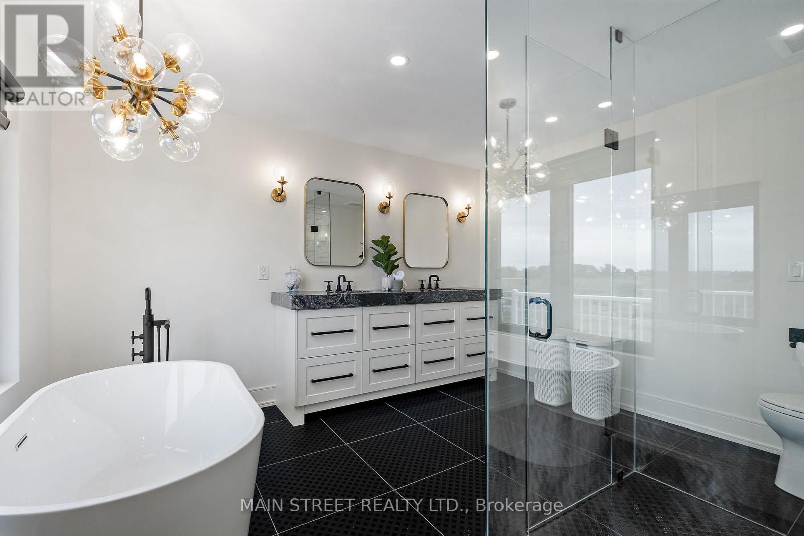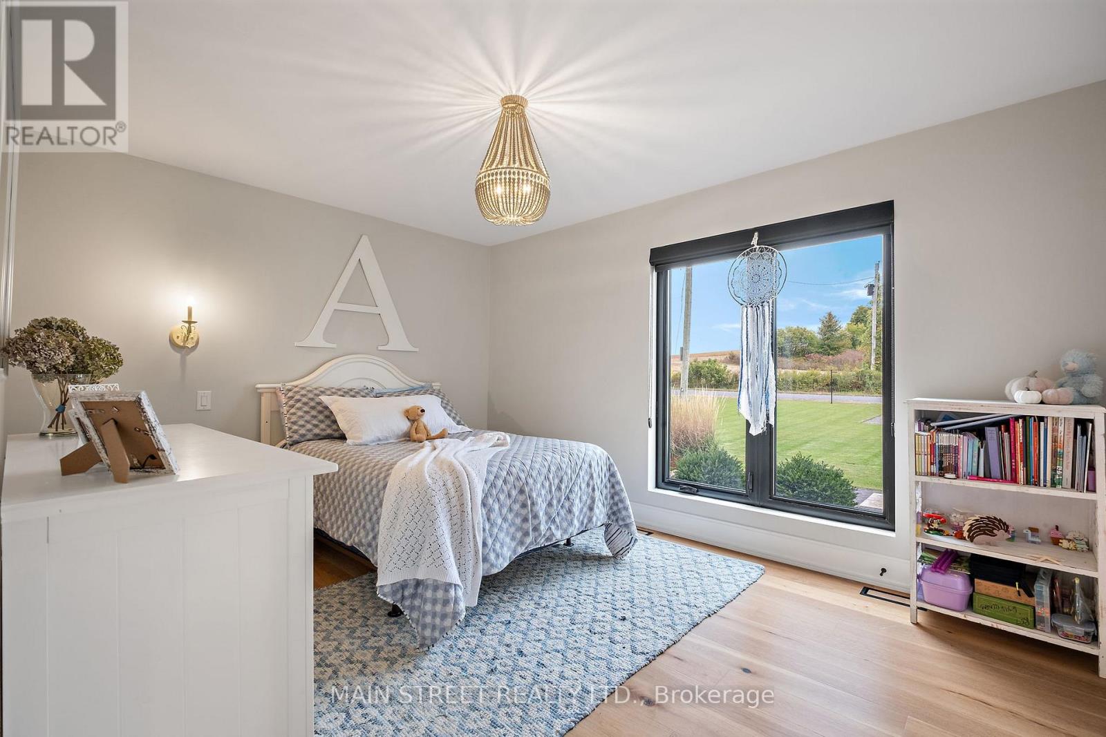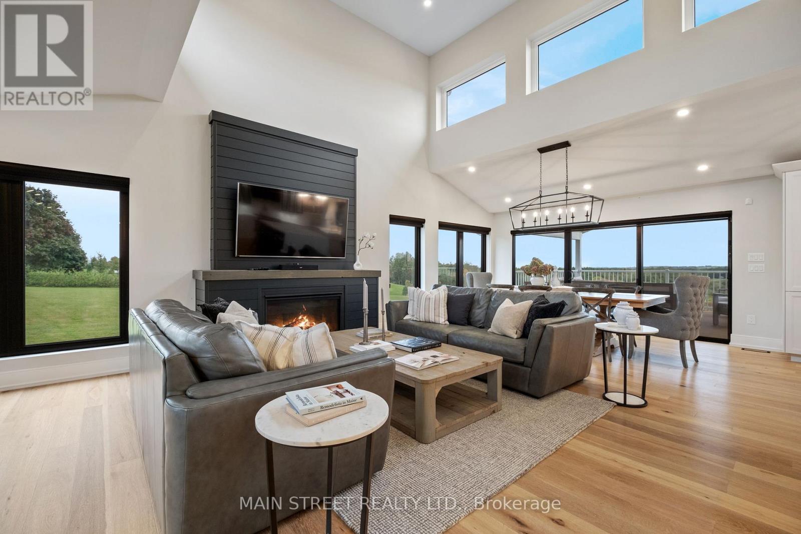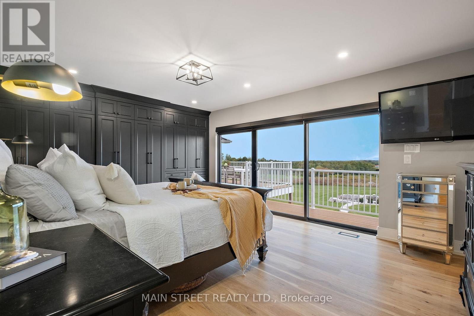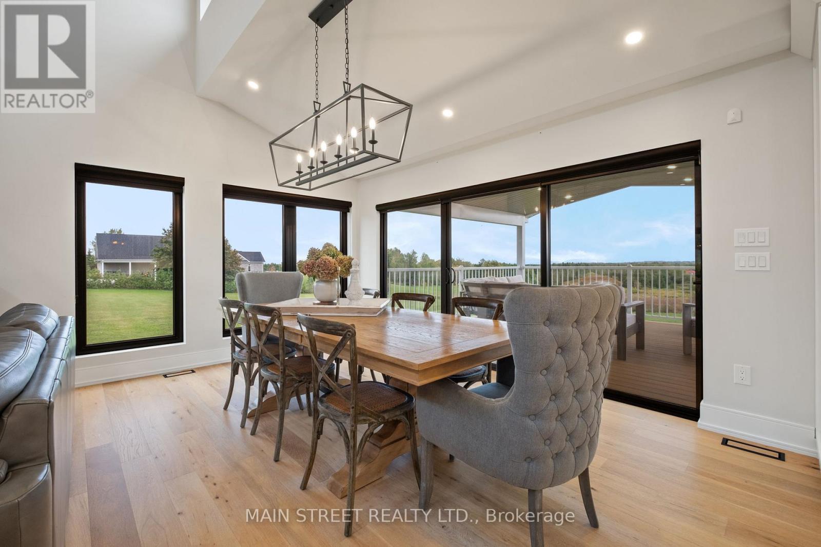 Welcome to a one-of-a-kind retreat nestled on 10 breathtaking acres. Experience the pinnacle of country living with easy and convenient access to urban amenities. This custom built luxury bungalow includes 3+1 bedrooms, 3 full bathrooms, with sweeping pastoral views of rolling hills, horse pastures, and lush apple orchards.Inside, every detail exudes elegance from soaring 18 foot ceilings and clerestory windows to engineeredhardwood flooring throughout. The stunning designer kitchen features top-of-the-line Rocpal cabinetry, LaCornue range, integrated SubZero fridge, and a fantastic 8x5 island with honed porcelain waterfall countertops. The open concept design is flooded with natural light and floor to ceiling windows in nearly every room. Multiple walkouts access the expansive composite deck that spans the entire back of the home - perfect for entertaining. Relax in the spacious bedrooms with custom closet organizers, spa-like bathrooms, and stylish laundry/boot room perfect for busy families. The basement boasts an open concept rec space, separate entrance/mudroom, walk out to backyard, extra large storage room, guest room and a BRAND NEW FULL BATHROOM ideal for guests and families. Outside, adventure awaits! Explore the winding trails through heritage apple trees on foot or by ATV/snowmobile. Gather around the fire pit under the stars, or transform the custom 2,800 sq.ft. turf sports field into your own skating rink in the winter for year round enjoyment. The impressive 3-bay garage with 10-foot doors and space for up to five vehicles adds incredible functionality. This spectacular estate is a rare opportunity to own true countryside perfection. Extras: Newly added full Basement Bathroom (2026) - Unfinished loft over the garage approx. 750 sq.ft.- TimberTech composite deck - 2,800 sq.ft Turf sports field - Groomed trails - Private pond - 5 Mins to HWY 407, 7 Mins to DT Bowmanville - Standing seam metal roof - 20 Car parking - Front yard irrigation. (id:64974)