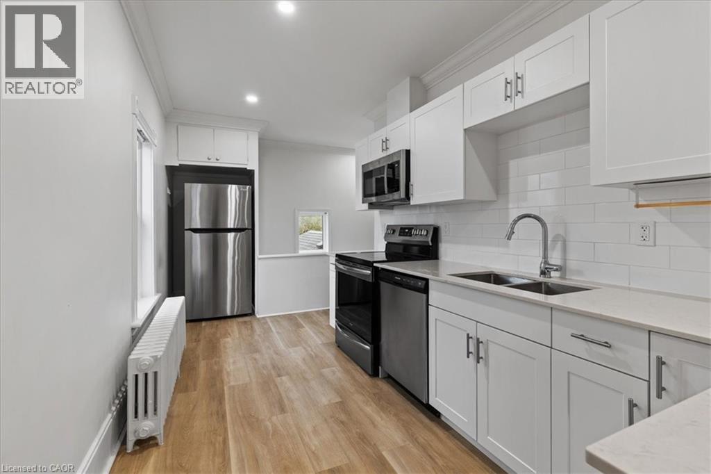 Discover this newly renovated, modern 930 sq ft, two-bedroom apartment in North Preston, ready for immediate occupancy! This bright andspacious unit features two generous bedrooms and a covered patio—perfect for summer evenings with friends and family. The sleek whitekitchen, fully updated, boasts stainless steel appliances and quartz countertops, adding a touch of sophistication. Located just steps fromLaurence St Park, King Street’s vibrant shops and restaurants, the LCBO, and everyday essentials, this apartment also offers quick access toHighway 8 and the 401, making commuting a breeze. Enjoy the convenience of ensuite laundry and parking for two vehicles. Heat and summermaintenance are included. (id:64974)
