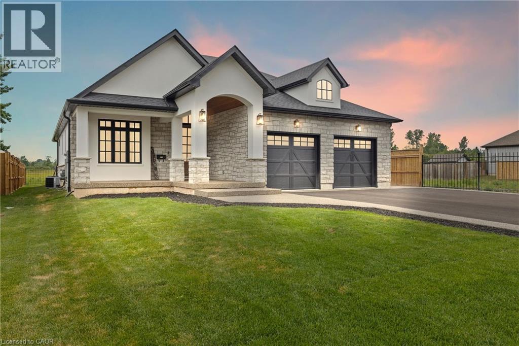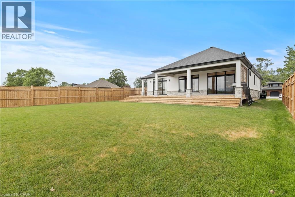 This custom-built 2 year luxury bungalow located close to the beach, is finished from top to bottom with world class detail and craftsmanship throughout! Offering over 3,000 sq. ft. of living space, including more than 1,700 sq. ft. on the main floor and over 1,200 sq. ft. of beautifully finished basement, this property seamlessly combines elegance, comfort, and functionality. With four spacious bedrooms and four bathrooms, the layout features a stunning in-law suite in the basement with its own private walk-out entrance, making it ideal for multi-generational living or hosting guests in style. Designed with soaring ceilings on both levels, the home showcases stone countertops throughout, including in the lower-level kitchen, along with built-in cabinetry and high-end appliances on both levels. A hidden walk-in pantry adds charm and convenience to the main floor kitchen, while the covered back deck offers peaceful views with no rear neighbours. The fully fenced backyard, exposed aggregate and asphalt driveway, and exceptional curb appeal complete the package. Located in one of Ontario's most charming small towns, this turn-key property is ready for you to move in and enjoy the lifestyle you deserve. (id:64974)
