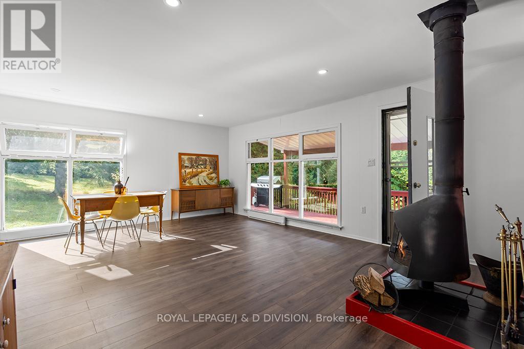 Escape to your all-season haven! Cozy up by the crackling woodburning fireplace in winter, with cross country skiing and Bruce Trail right at your doorstep. Come summer, enjoy breathtaking hikes, fishing at the nearby reservoir, and endless outdoor adventures. Whether it's a snowy retreat or a sunny getaway, it's all yours for the taking at this amazing secluded 6.56acre property in the township of Mulmur. Set back from the road the main home features 2 good sized bedrooms filled with natural light, a bright combined living and dining room featuring a statement wood burning fireplace and a walkout to the back porch, as well as bonus space in the lower level with an extra bedroom and family/media room! The large detached garage can comfortably fit 2 large vehicles as well as 2 bonus workshop and storage spaces. The "bunkie" is an excellent footprint for someone to make their own to have great additional living space with plumbing and electrical available. 45 minutes to Blue Mountain, 25 minutes to the shops in Orangeville, 15 minutes to the shops in Shelburne. Main floor vinyl flooring (2025), New baseboards on main floor (2025, Waterproofing in basement (2025), French drain/weeping tile (2025), New Electrical Panel (2025). (id:64974)