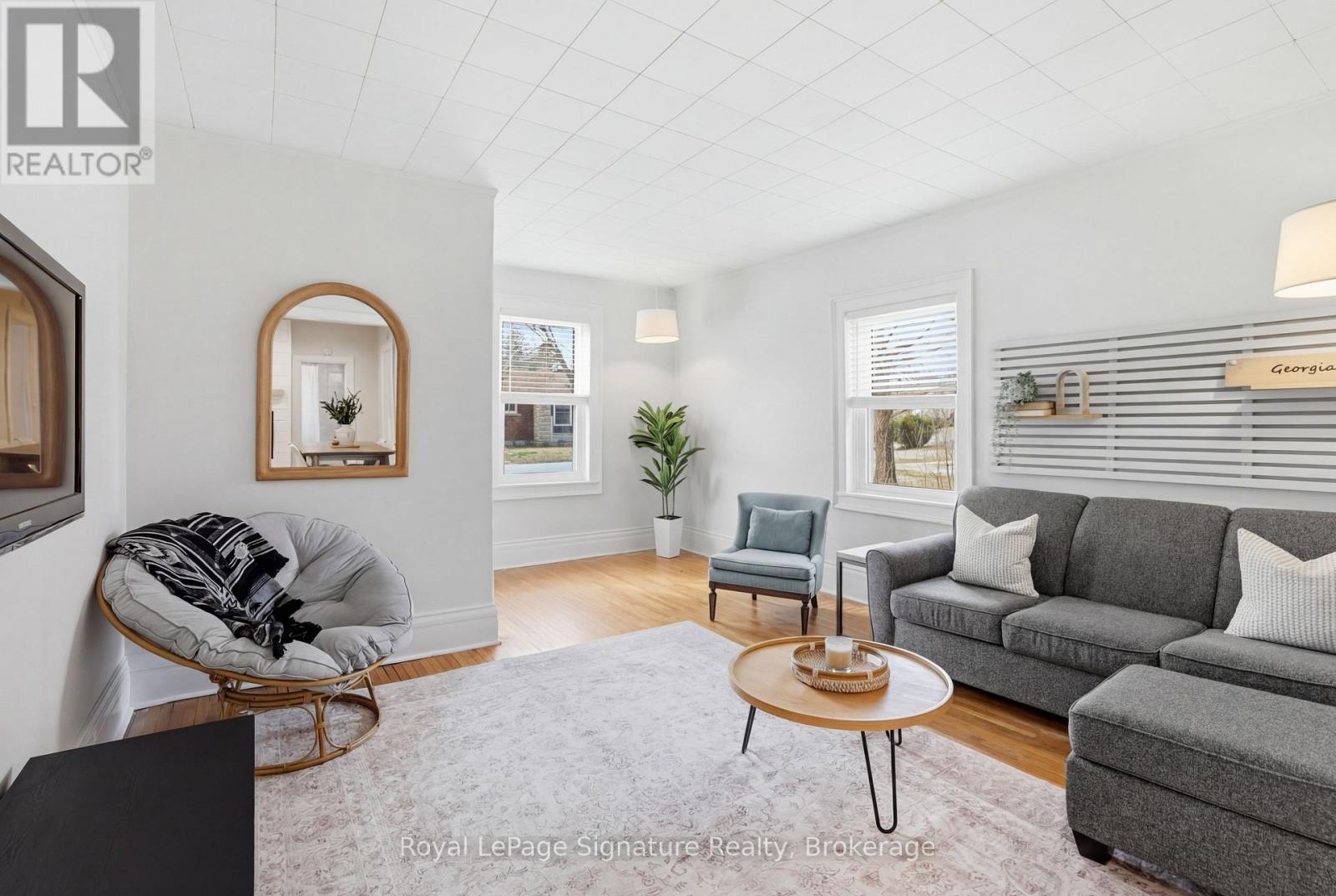 Tucked away on a desirable, tree-lined street, this charming home offers just under 1,200 sq ft of comfortable living space on a generous 66 x 165 ft town lot. Surrounded by mature trees, the property provides a peaceful setting while still being just a short walk to downtown Collingwood, Central Park Arena, and local trails. Inside, the home features a bright, open-concept living layout that maximizes space and flow, ideal for everyday living or entertaining. The thoughtful layout maximizes its footprint, creating a warm and inviting atmosphere throughout. Perfect for first-time buyers, downsizers, or investors, this property also offers exceptional potential. The deep lot provides ample opportunity to expand or customize your living space over time, making it a smart long-term investment. Enjoy the best of both worlds: a quiet residential setting with easy access to all the amenities, recreation, and charm Collingwood offers. (id:64974)