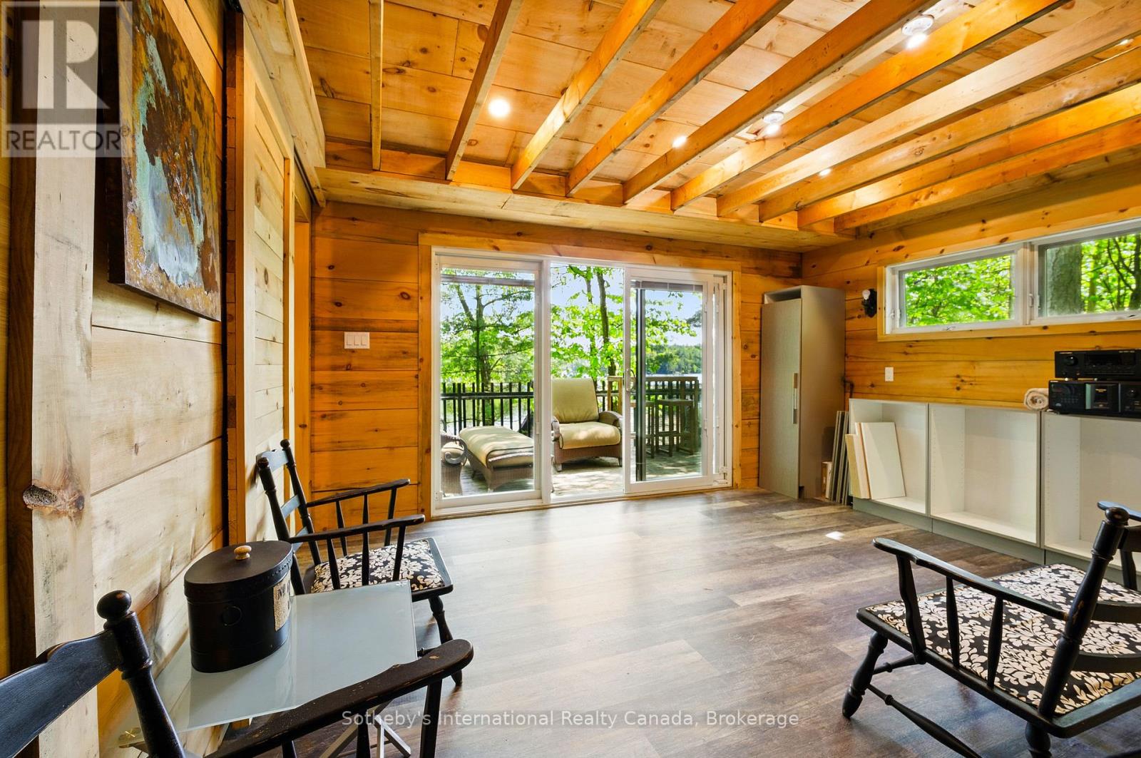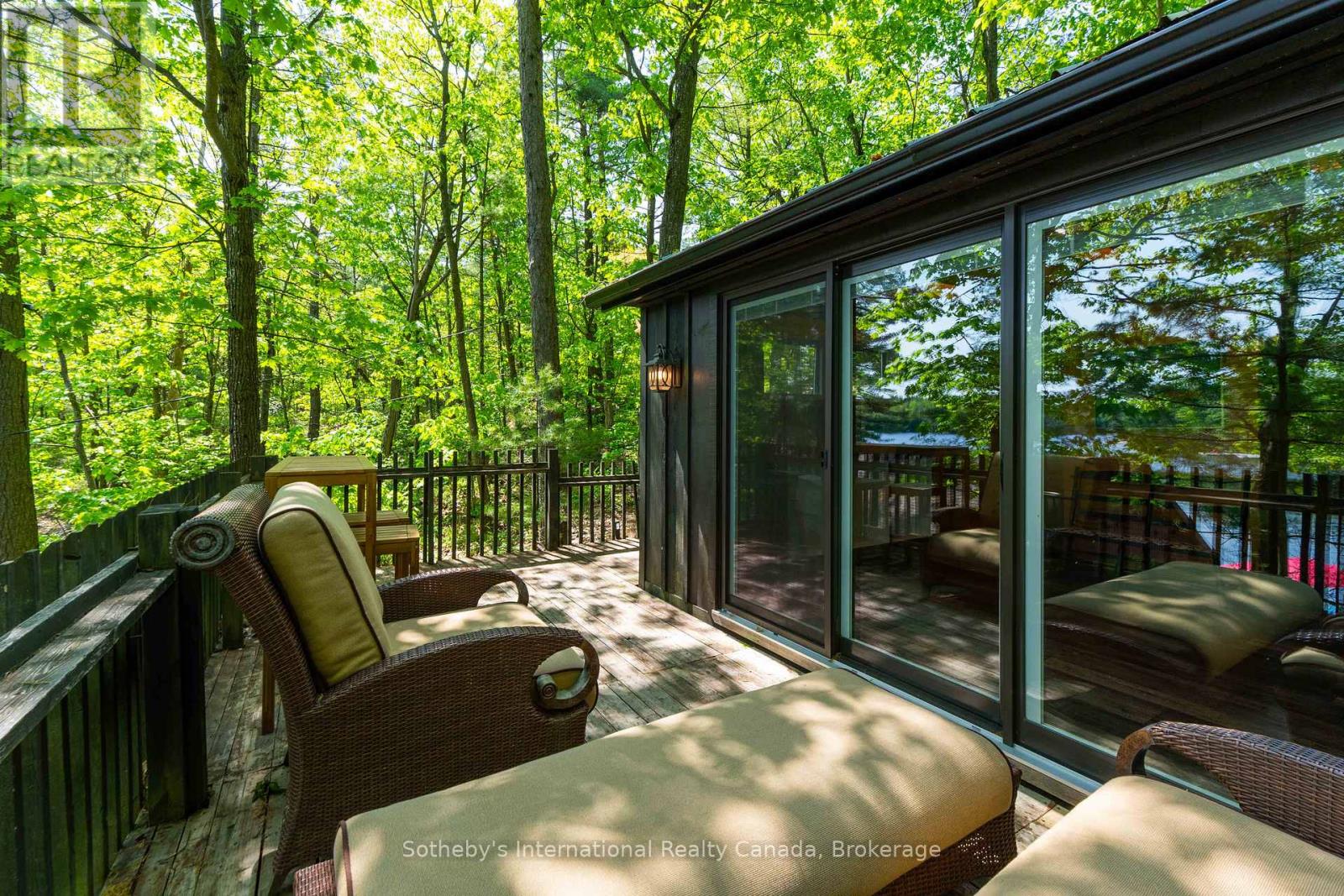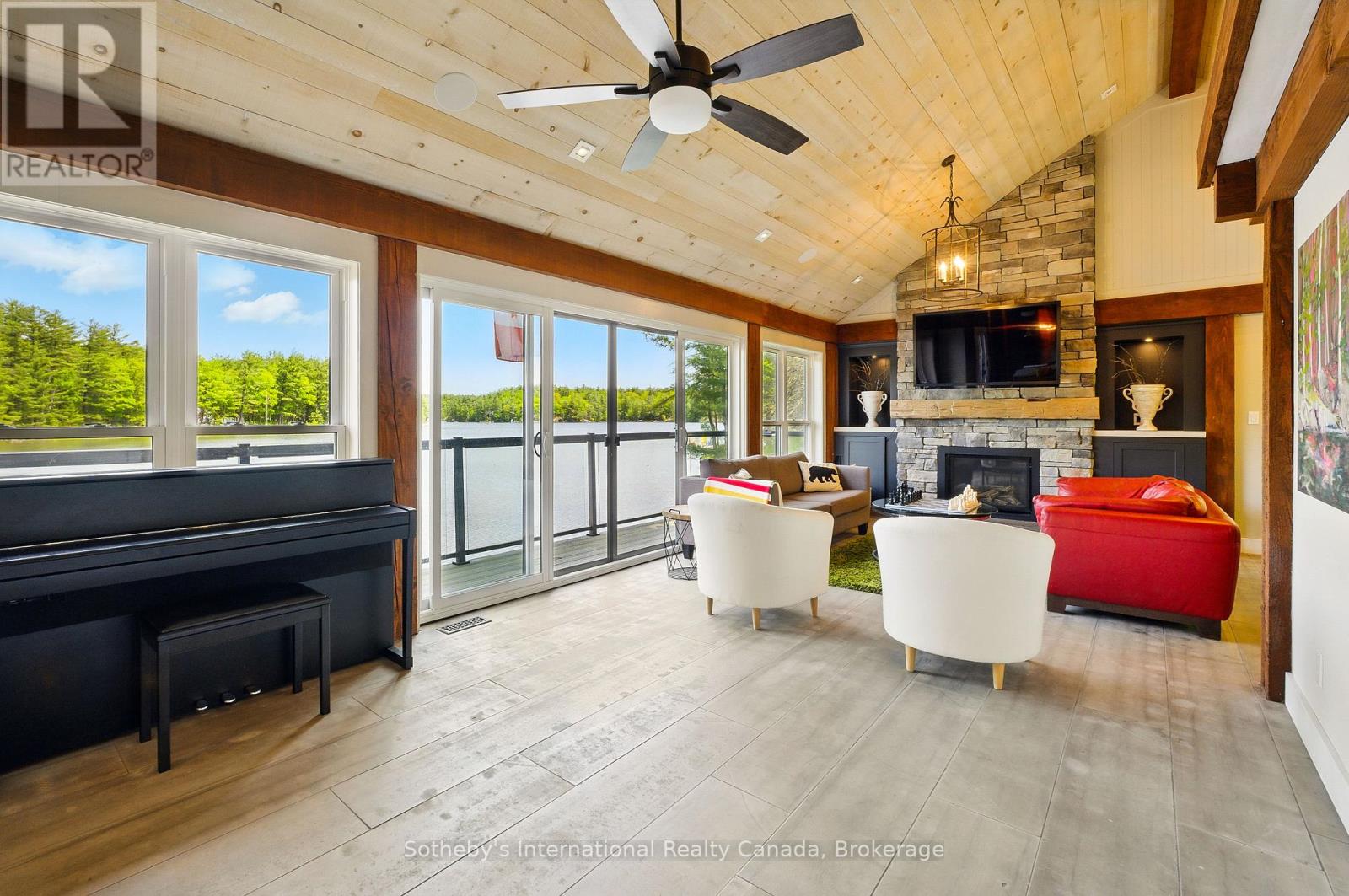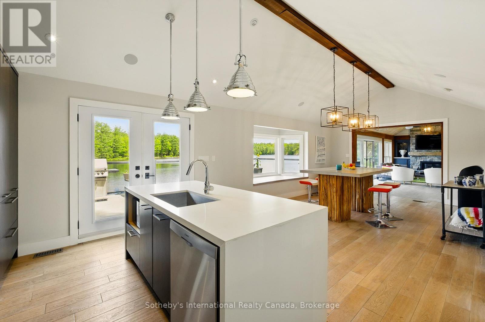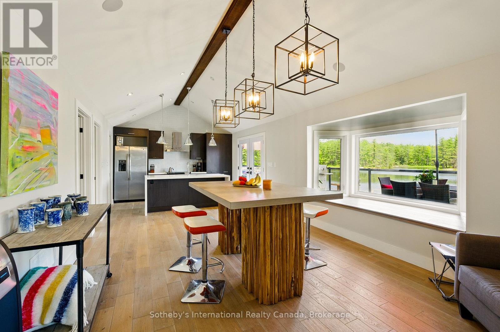 Welcome to 6394 Go Home Lake - an exquisite waterfront retreat where timeless craftsmanship meets the beauty of untouched Muskoka wilderness. Set on 190 feet of private shoreline in the highly sought-after Crystal Bay, this four-season property offers an unparalleled connection to nature and the water. Inside, a sense of warmth and sophistication greets you. The open concept living area is framed by wide plank floors and anchored by a stone fireplace, an inviting centerpiece for family gatherings or quiet evenings by the fire. The chef's kitchen combines form and function with custom cabinetry, stainless-steel appliances, and generous workspace for entertaining. Adjacent, the dining area opens to a panoramic lake view, creating a seamless flow between indoor and outdoor living. Step outside to an expansive deck designed for lakeside entertaining, complete with integrated Control 4 sound for effortless ambience. Here, mornings begin with coffee overlooking still waters, and evenings end under a canopy of stars. The main cottage offers three well-appointed bedrooms and a full bath, while a newly renovated guest bunkie extends the accommodation to visiting family and friends. The bunkie features two bedrooms, a bath, and provisions for a kitchenette, perfect as a studio, office, or guest suite with spectacular views of the bay. Beyond your doorstep, 100's of acres of adjoining Crown land provide unmatched privacy and adventure, ideal for hiking, exploring, or simply losing yourself in nature. Go Home Lake's pristine waters connect to Georgian Bay through the Voyageurs Club, offering access to hidden coves, cascading waterfalls, and private swimming lagoons. With its rare combination of comfort, design, and natural beauty, this property delivers the quintessential Muskoka experience, a place to recharge, reconnect, and create lasting memories on one of the region's most treasured lakes. (id:64974)