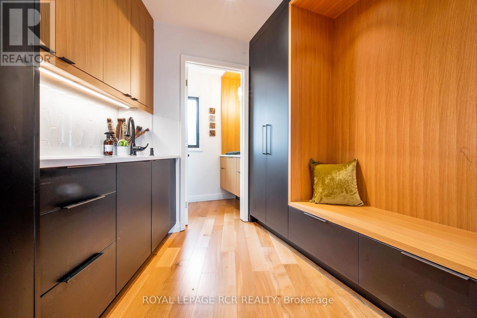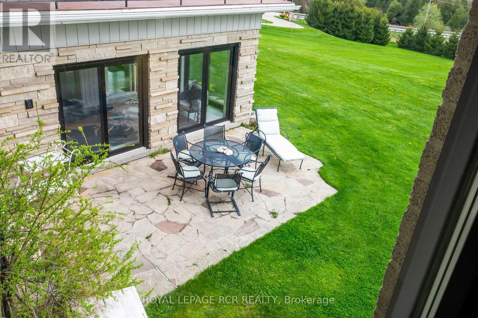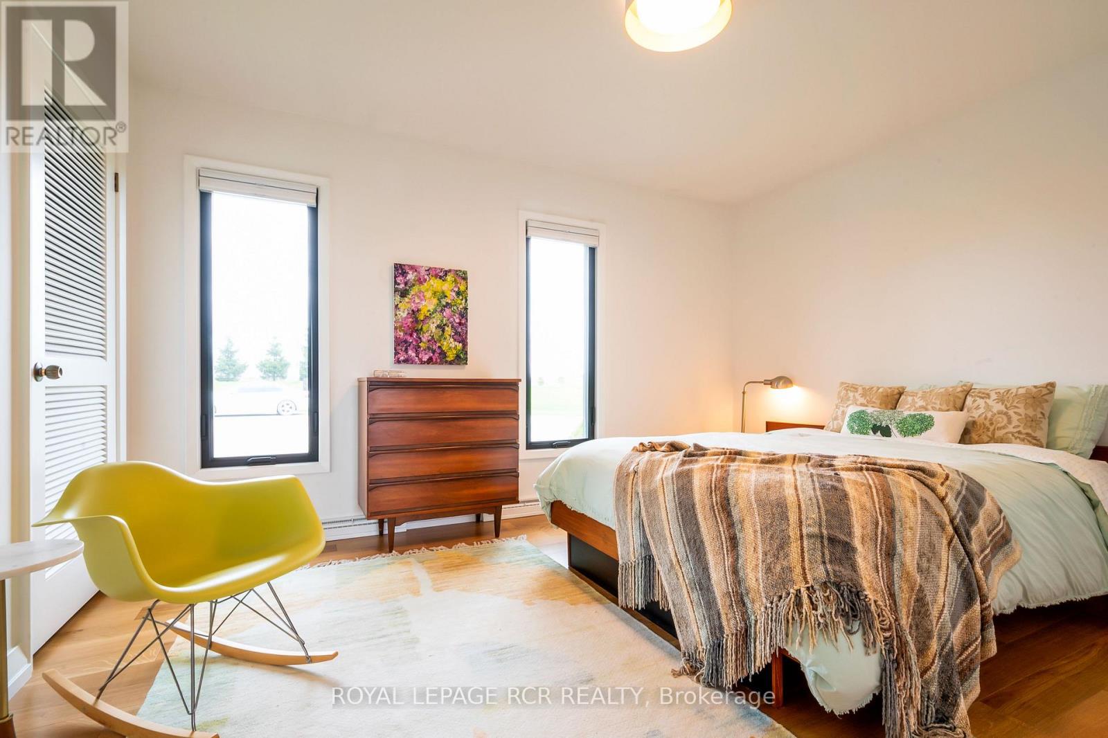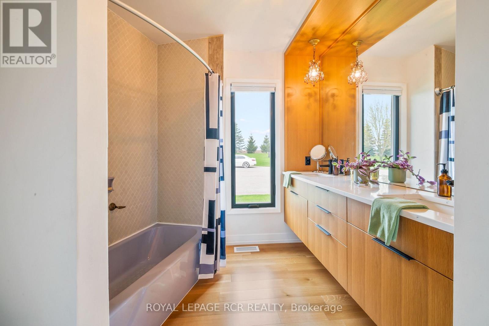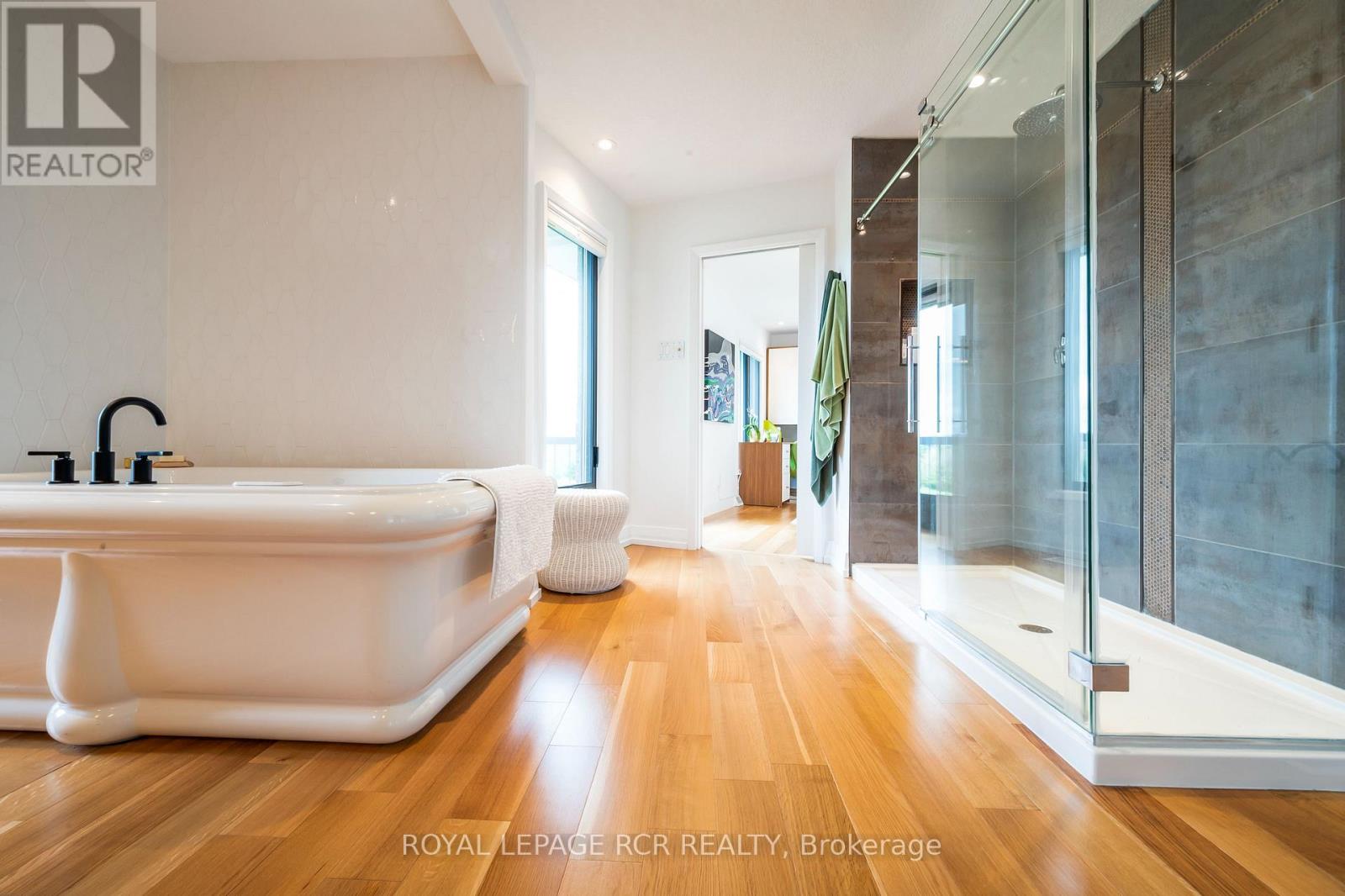 A winding driveway draws you toward The Riverlands, a spectacular top-of-the-line modern estate offering over 7,000 sq ft of total space. Nestled on 3.67 acres with commanding views of the Grand River, this architectural gem underwent an extraordinary full-scale renovation from '20 to '22. Today, it stands as a seamless fusion of timeless design and forward-thinking sustainability, boasting carbon-neutral, net-zero-ready systems. The main level features a stunning chef-inspired kitchen with quartz countertops, custom cabinetry, and an impressive suite of appliances. Sliding doors lead to a stone patio with a fireplace and BBQ, perfectly positioned to enjoy the sights and sounds of one of Ontario's premier fly fishing destinations. The open-concept living and dining area is enhanced by natural light, bespoke walnut built-ins, and sweeping river views. The primary suite is a private retreat, complete with a five-piece ensuite, custom dressing room with integrated laundry, and access to a versatile den or office with a wood-burning fireplace and access to the rooftop terrace. Two more bedrooms offer walk-in closets and share a beautifully updated bath. A curved staircase leads to the lower level featuring a second kitchen with an indoor charcoal grill, a family room with fireplace, a billiards room, a guest suite, a wine room, and a walk-in fridge. Thoughtfully designed to function seamlessly as a multi-generational home, this level offers independent yet connected living spaces ideal for extended family or guests. The showstopping indoor saltwater pool has dedicated HVAC and solar-powered heating, plus a sauna, change room, and adjoining sunroom with walkout to the backyard. Rooftop solar panels, geothermal systems, upgraded electrical, smart home features, and plans for a detached 3-car garage complete this one-of-a-kind package. Just minutes from Belwood Lake and downtown Elora, The Riverlands is a rare blend of modern luxury, natural beauty, and sustainable living. (id:64974)