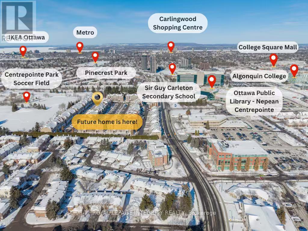 Location truly matters - and this home offers the best of both convenience and comfort. Situated right beside Centrepointe Park, you can enjoy daily walks, fresh air, and green space while still living in a central Ottawa location. It's just steps to the Ottawa Public Library and Algonquin College, making it perfect for professionals, students, or small families. Within a 10-minute drive, you have easy access to Loblaws, IKEA, Walmart, Canadian Tire, Costco, Bayshore Shopping Centre, the Queensway Hospital, and Nepean Sportsplex. Quick access to Highway 417 and nearby transit, including future LRT. You're close to everything, yet the neighbourhood remains quiet and peaceful. This bright 2-bedroom, 3-bathroom stacked townhouse offers a practical open-concept main level with a spacious kitchen, breakfast area, and comfortable living and dining space that flows naturally together. The living room has been upgraded with additional pot lights, making the space brighter and more inviting, especially in the evenings. A private balcony is perfect for enjoying morning sunshine, and a convenient powder room completes the main floor. The home was freshly painted throughout in 2026, including all doors, and features new modern light fixtures installed in 2026, giving it a clean and updated feel. It has also been professionally deep cleaned, with carpets steam-cleaned, so it is truly move-in ready. The lower level offers two ensuite bedrooms, each with its own full bathroom, providing privacy and flexibility. A same-level laundry room and extra storage space add everyday convenience. This home combines a great location, functional layout, and peaceful setting - a wonderful opportunity to enjoy comfortable living in the heart of Ottawa. Washer & Dryer upgraded (2023), Storage Room updated (2021), Carpet replaced (2017). One surfaced parking spot is included(#224). (id:64974)