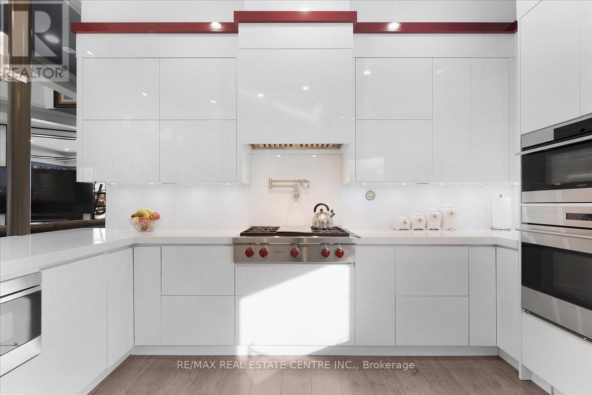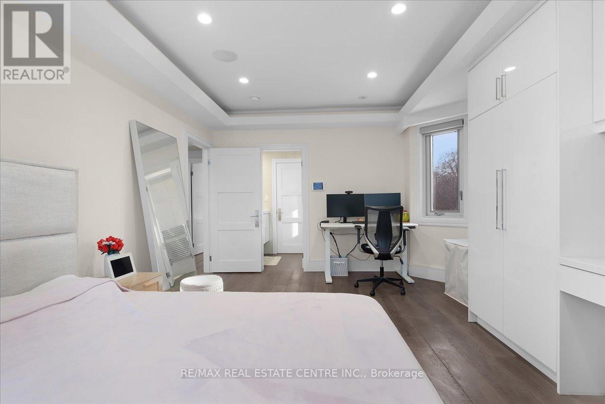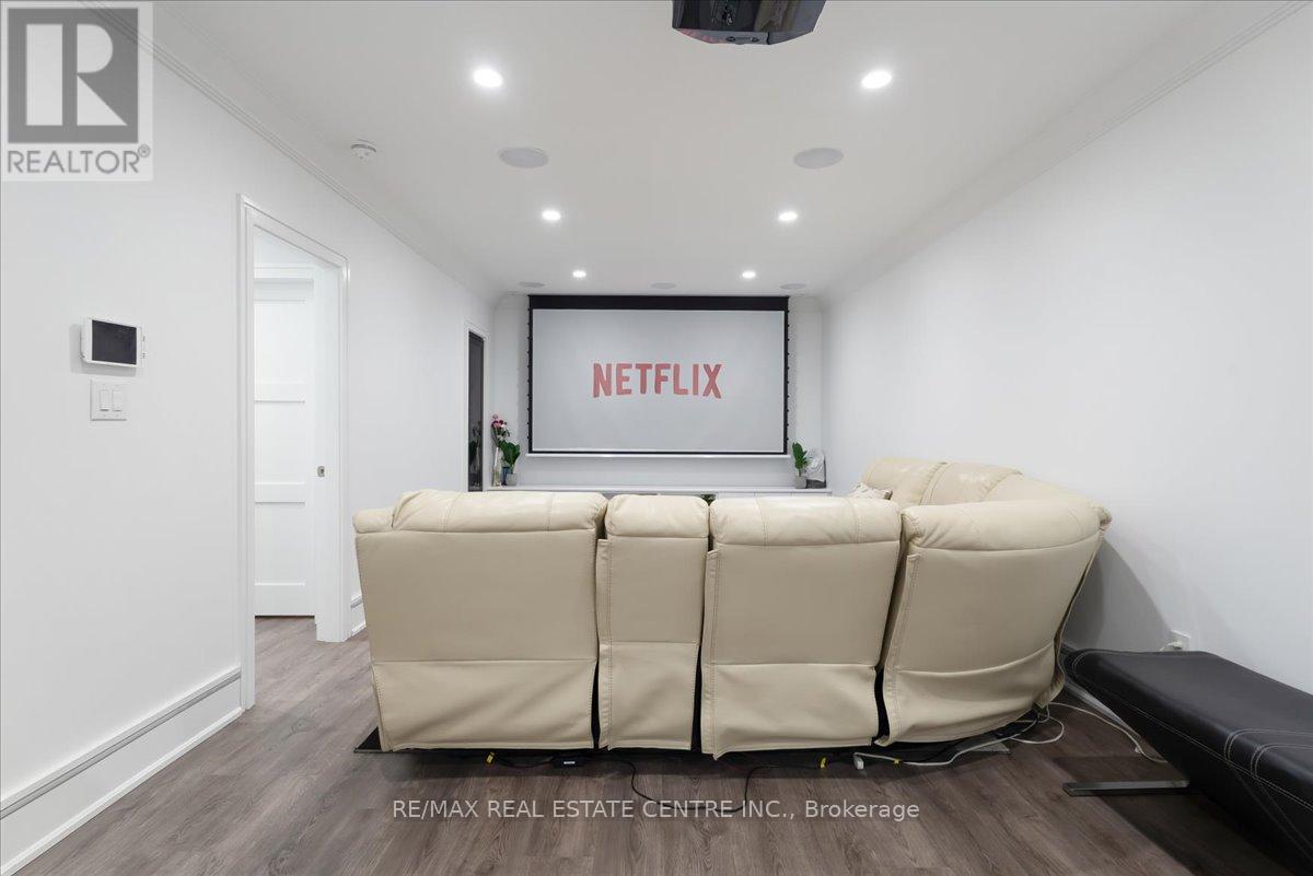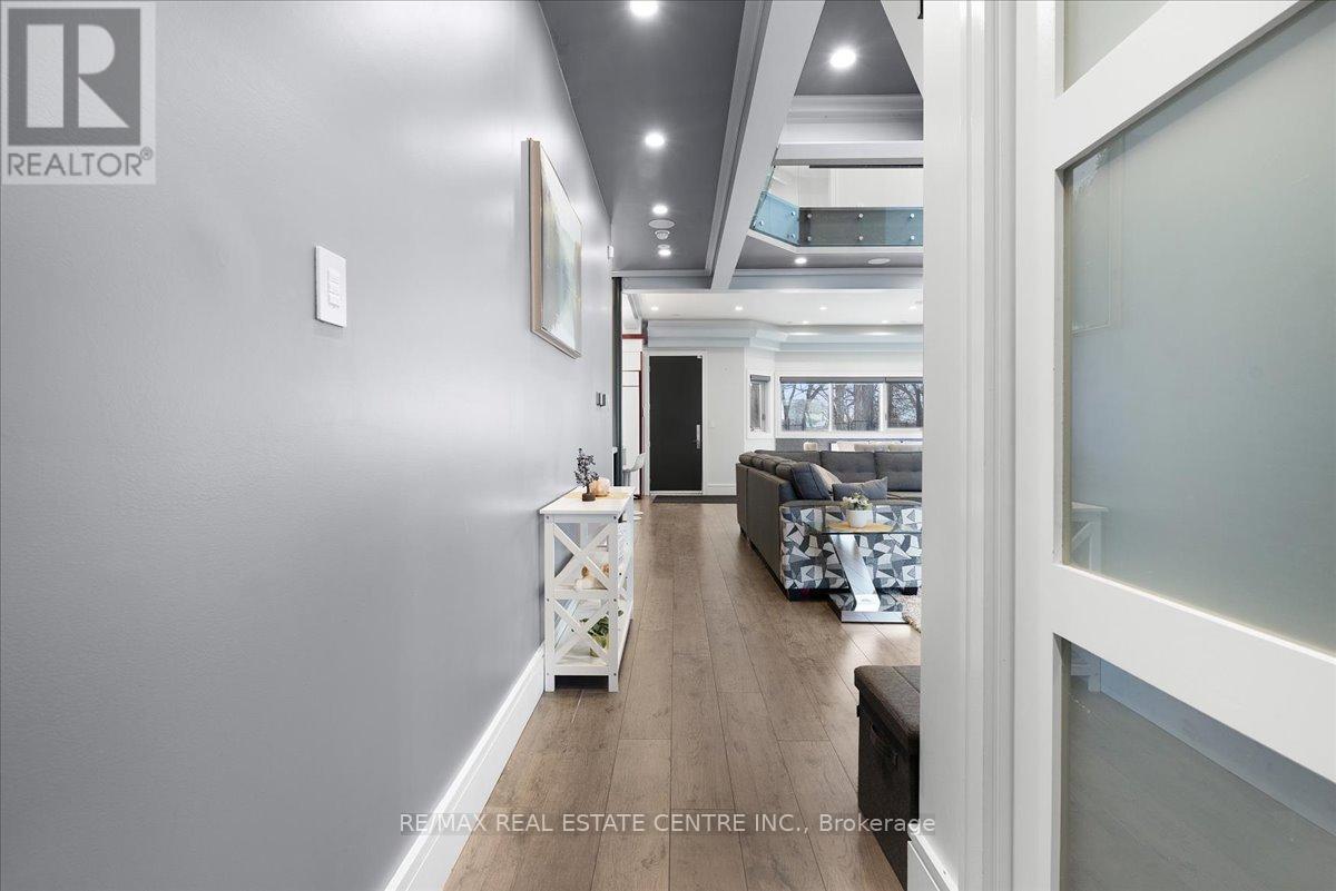 Spectacular one-of-a-kind custom home offering over 3,500 sq ft of finished living space on a premium ravine lot in sought-after Humber Summit. This modern residence features a striking flat-roof design, exceptional privacy with no rear neighbours, and direct access to scenic trails. Enjoy year-round comfort with radiant heated floors throughout and a heated driveway - no snow shovelling required. Gourmet chef's kitchen equipped with premium Wolf appliances and high-end finishes. Fully automated smart home with integrated iPad controls for lighting, climate, security, and entertainment. Spacious open-concept layout ideal for luxury living and entertaining. Heated towel racks in all spa inspired bathrooms. Upgraded 200 amp panel. Professionally finished basement featuring a dedicated theatre room and separate entrance, offering excellent in-law suite or multi-generational living potential. Conveniently located minutes to Costco Wholesale - 100 Billy Bishop Way, top-rated schools, parks, major highways, and Toronto Pearson International Airport. A rare opportunity to own a truly unique modern ravine home in a prime Toronto location. (id:64974)
