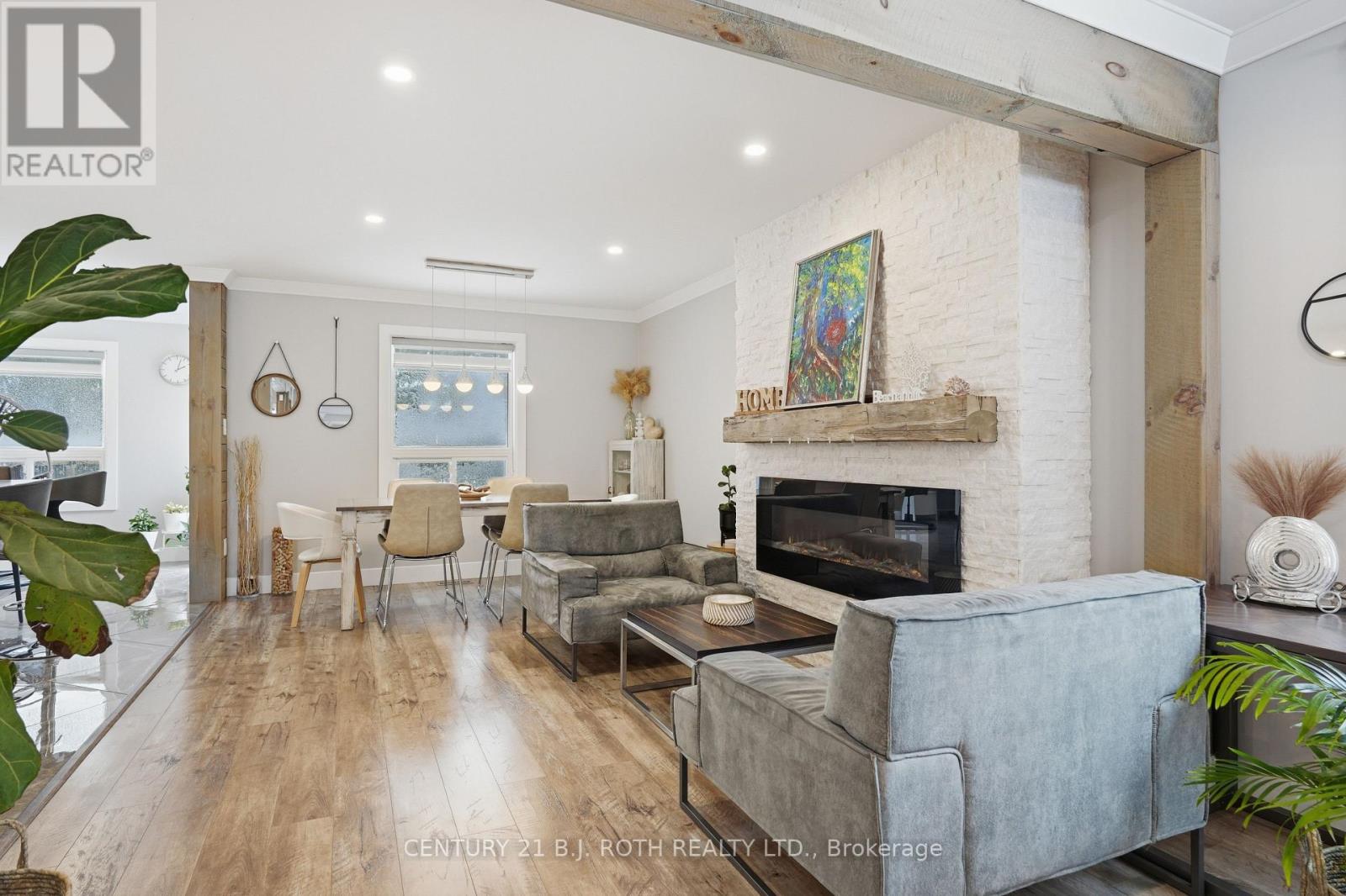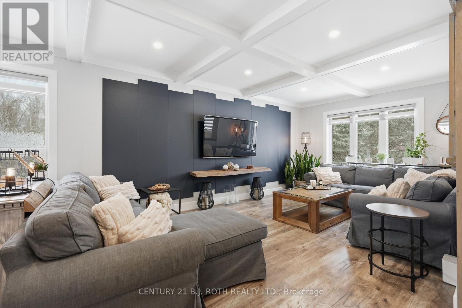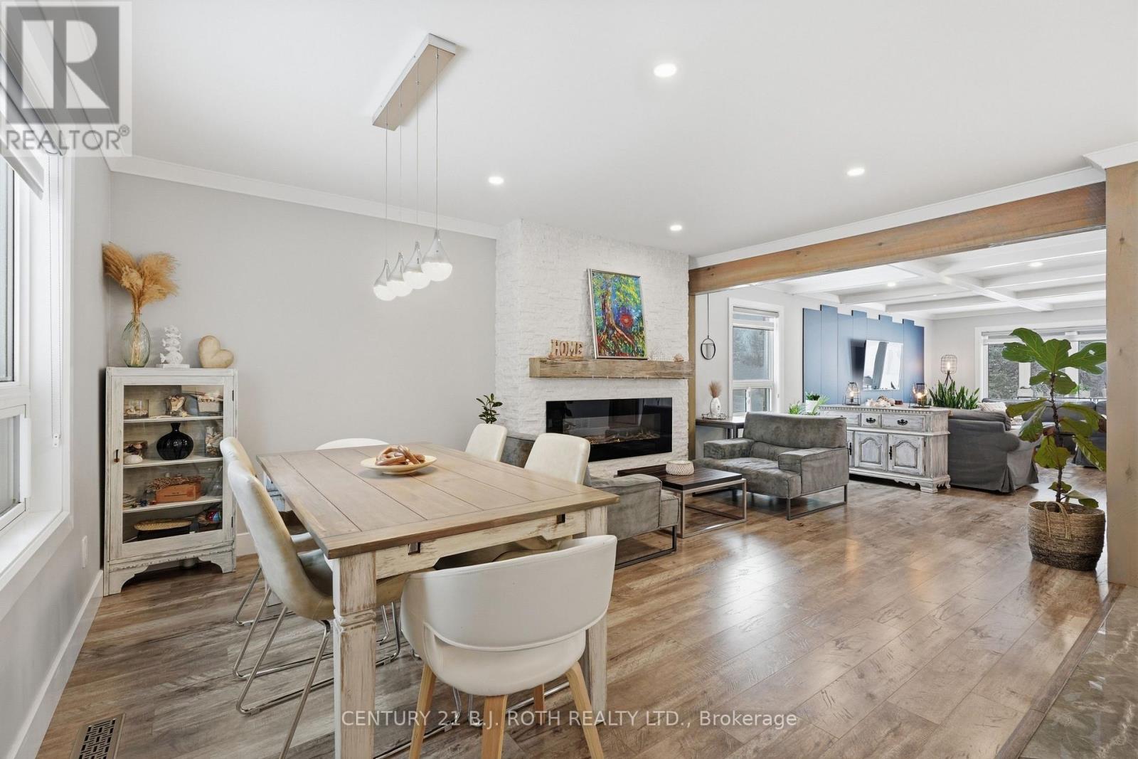 Nestled in one of Wasaga Beach's most sought-after neighbourhoods, this beautifully updated bungalow offers the perfect blend of nature, community, and refined comfort. Just moments from Beach 1 and surrounded by mature trees, scenic trails, and welcoming neighbours, this home delivers a serene lifestyle without compromising everyday convenience. Set proudly on a premium corner lot backing onto a quiet cul-de-sac, the home enjoys a rare sense of privacy while remaining steps to trails, parks, schools, and everything Wasaga Beach has to offer. This property presents an exceptional balance of nature and modern living. Inside, the home has been completely reimagined with a clean and timeless finishes. A stunning, fully renovated kitchen anchors the main level, showcasing upgraded appliances, sleek finishes, and a seamless flow into the open-concept living and dining area. Enhanced by stylish pot lights and new flooring throughout, the space feels bright, cohesive, and effortlessly inviting. Thoughtful upgrades continue with beautifully renovated spa like bathrooms, impressive coffered ceiling, incredible feature fireplace wall, designer lighting, tall baseboards, a newer roof, and a newly built deck, offering true turn-key peace of mind. Offering 5 bedrooms and 3 bathrooms, over 3200 sq ft. of well-appointed living space, designed for both comfort and functionality. The fully finished lower level extends the home's versatility, featuring a spacious rec room, games area, full bathroom, and two bedrooms. Outdoors, the property is equally impressive, complete with an in ground sprinkler system for low-maintenance landscaping. A wide driveway and double-car garage provide ample parking and storage, catering to both everyday living and entertaining needs. Combining thoughtful upgrades, a prime location, and exceptional versatility, this home stands as a rare opportunity in Wasaga Beach offering a lifestyle defined by comfort, convenience, and connection to nature. (id:64974)