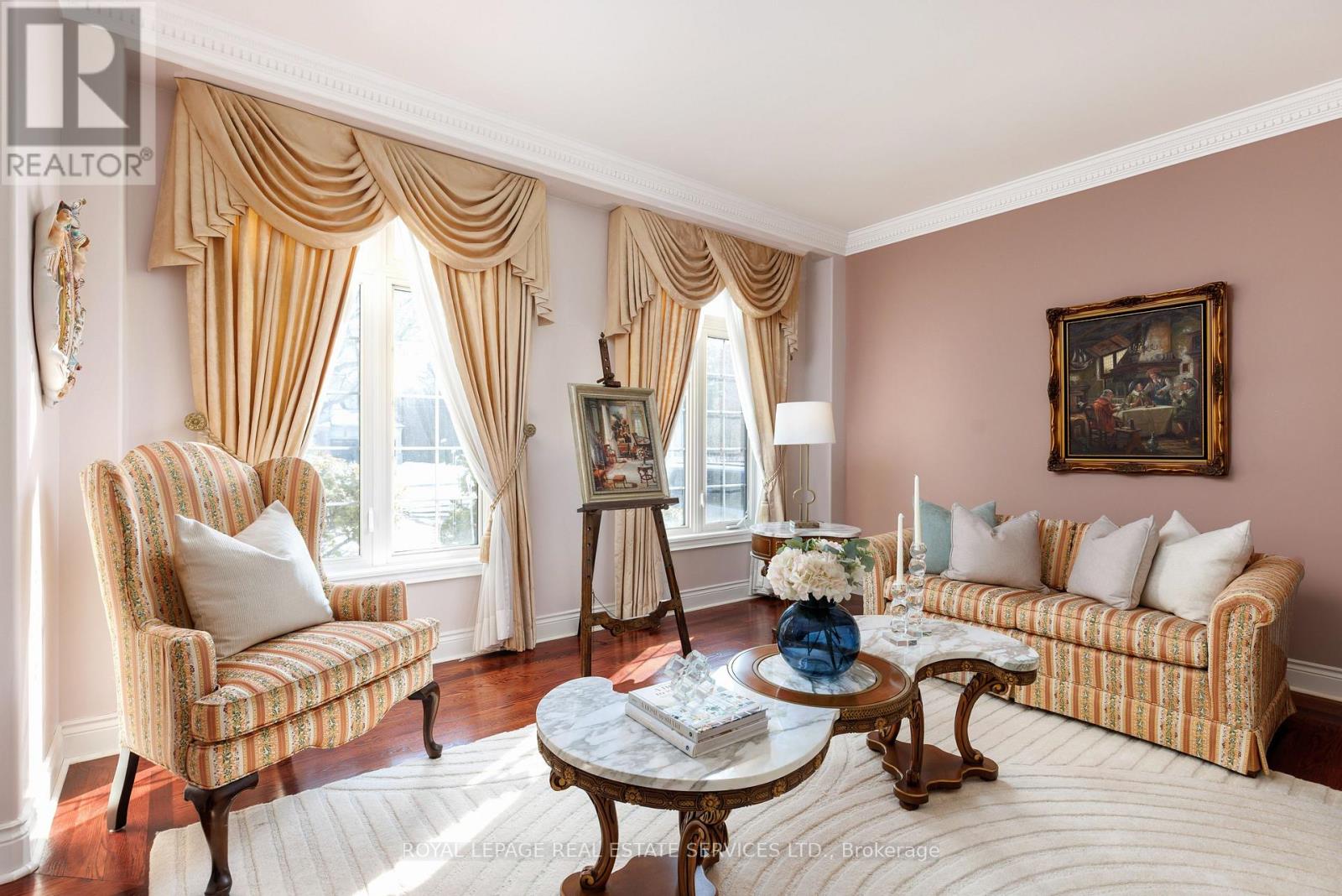 Set within one of Etobicoke's most prestigious enclaves, this exceptional custom-built estate in Humber Heights represents a rare offering of scale, craftsmanship, and enduring elegance. Constructed in the early 2000s with uncompromising attention to detail, the residence showcases a grand traditional design executed with the finest materials and precision throughout. Offering over 6,000 square feet of thoughtfully designed living space, the home exudes warmth and sophistication at every turn. A stately stone-clad and stucco façade sets the tone, while the interior unfolds through a gracious central foyer that seamlessly connects the principal rooms. The traditional layout provides exceptional flow for both everyday living and entertaining, featuring formal living and dining rooms alongside a generous family room, each designed to accommodate large gatherings with ease and comfort. The upper levels are home to spacious, well-appointed bedrooms, each complemented by elegant en-suite bathrooms that reflect timeless luxury and refinement. The finished walk-out lower level further extends the living space, offering expansive areas ideal for entertaining, recreation, or multigenerational living. Completing the residence is an exceptional and rarely found oversized three-car attached garage, paired with a professionally landscaped property and circular driveway that enhances both function and curb appeal. Together, they create a striking balance of grandeur and understated elegance. A truly remarkable estate defined by unmatched craftsmanship, classic architecture, and enduring style-this is a unique opportunity to acquire a legacy property in the very heart of Etobicoke. (id:64974)
