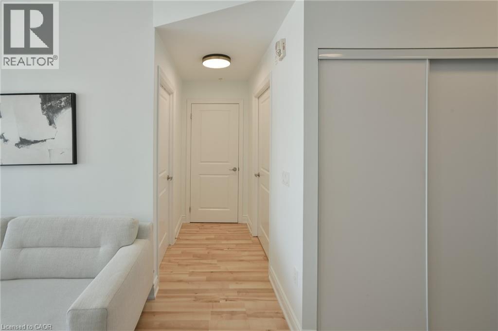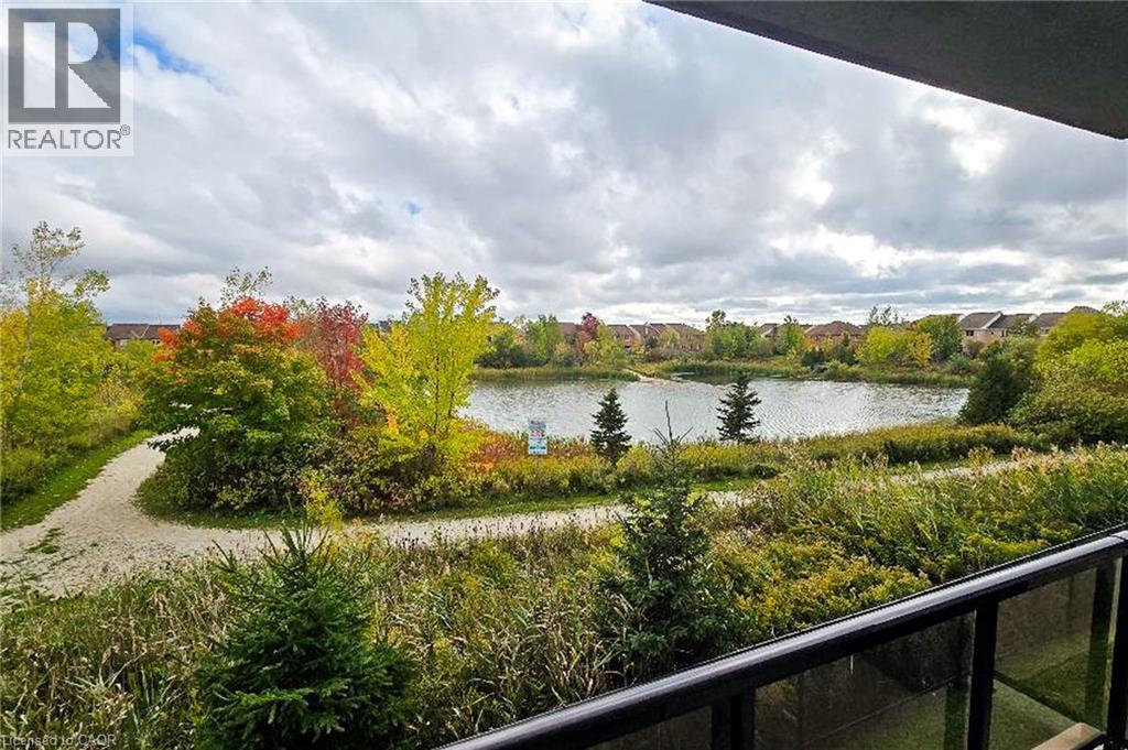 Enjoy upscale living in this beautiful 2-bedroom condo with serene pond views. Offering over 800 sq ft of well-designed living space, this unit features a functional layout with 9-ft ceilings, extended-height kitchen cabinetry, stainless steel appliances, and granite countertops. Large windows flood the space with natural light and showcase sunny southern exposure. Step out onto your private balcony to enjoy your morning coffee while taking in peaceful nature views. Conveniently located just minutes from major highways and steps to schools, parks, and walking trails. Extras include: underground parking close to the entrance, stainless steel fridge, stove, dishwasher, washer and dryer, electric light fixtures,curtains. Garbage room is conveniently located near the unit, and a locker is directly across from the unit. (id:64974)