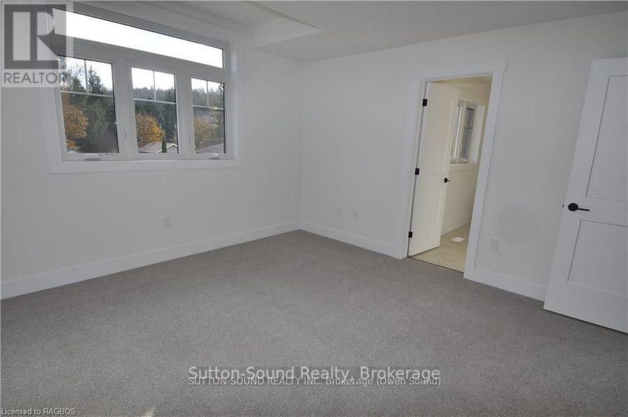 Welcome to this spacious 4-bedroom, 3.5-bathroom semi-detached home, ideally located on a quiet street just steps from Hillcrest Elementary and Owen Sound District High School. Offering over 2,500 sq ft of finished living space, this two-story home combines comfort, convenience, and quality finishes throughout. The main level features a generous great room with a cozy fireplace and walkout to a 10' x 12' pressure-treated deck perfect for relaxing or entertaining. The kitchen is a chefs delight, showcasing a large island, quartz countertops, and ample cabinetry. Hardwood flooring runs throughout the main floor and upstairs hallway, while ceramic tile adds a clean, modern touch to the bathrooms and laundry room. The primary suite includes a well-appointed ensuite with an acrylic shower and quartz countertop. The finished lower level offers a spacious family room, a fourth bedroom, and a 3-piece bathroom ideal for guests or extended family. Additional highlights include a fully covered front porch, concrete driveway and walkway, finished garage with automatic door opener, and attractive Shouldice stone exterior. Energy-efficient features include a high-efficiency gas furnace, HRV system, central air conditioning. Located within walking distance to schools, grocery stores, and other key amenities, this home truly has it all. 4th Bedroom would be in the basement, Builder will install wall and closet at the request of the buyer. (id:64974)