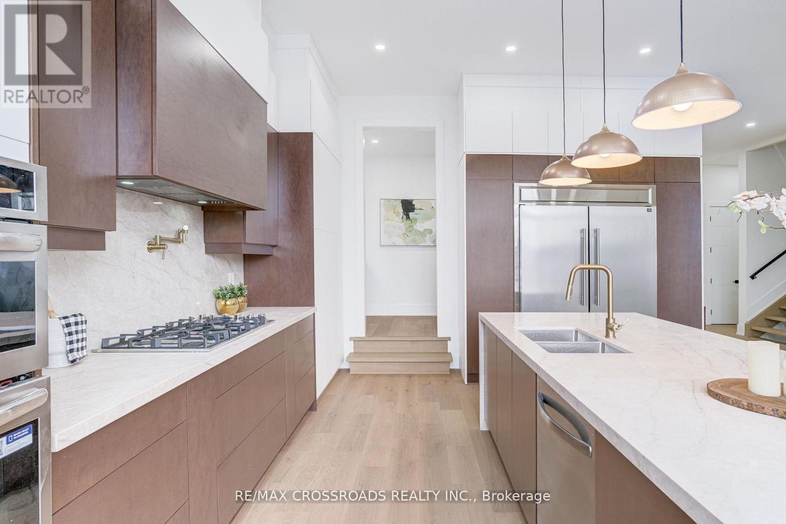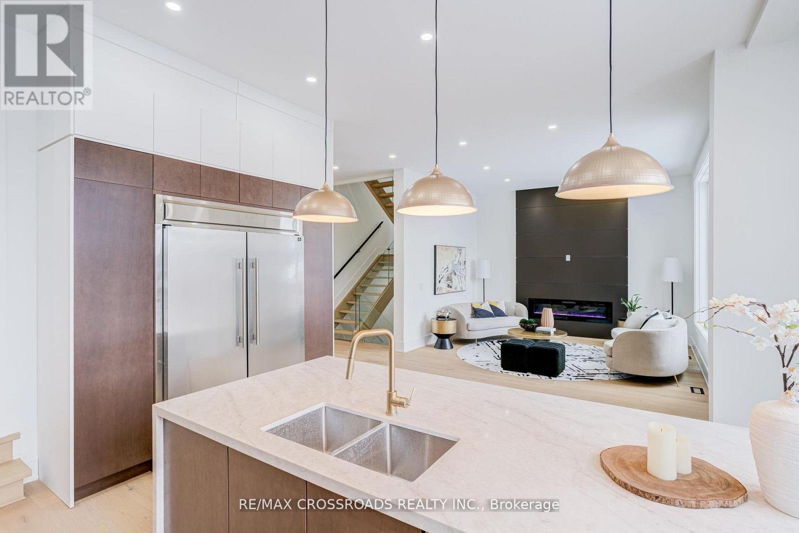 Welcome to 642 Annland Street, an exceptional custom-built residence in one of Pickering's most sought-after waterfront communities, just steps to Lake Ontario, Frenchman's Bay, scenic trails, marinas, and the Pickering GO Station, offering an unmatched blend of luxury and convenience. This newly constructed three-storey home boasts approximately 4600 square feet above grade plus an additional 1650 square feet in the basement, thoughtfully designed for extended families, multi-generational living, or added income potential with a fully self-contained legal one-bedroom apartment. Showcasing premium finishes throughout, the main level features 10-foot ceilings, hardwood flooring, custom cabinetry, and a bright open-concept layout, highlighted by a designer chef's kitchen with integrated high-end appliances, an oversized island, and a separate prep kitchen, flowing into a spacious family room with an elegant electric fireplace, large windows, and a walkout to the backyard deck, while a formal dining room with a picture window, a versatile office or library, and a stylish powder room complete the space. The upper levels offer five generously sized bedrooms and four beautifully finished bathrooms, all with hardwood floors, pot lights, and ample closet space, including a stunning primary retreat with a spa-inspired ensuite and an expansive walk-in closet, along with a rare and highly desirable upper-level family lounge that provides an additional space for relaxation, perfect for family gatherings or The basement provides additional living space with a large recreation area and full washroom along with a private apartment featuring its own entrance, open-concept kitchen and living area, laundry, and large windows. The exterior is equally impressive with a detached two-car garage, concrete double driveway, professional landscaping, and a fully fenced backyard, making 642 Annland Street a rare opportunity to own a luxury home that blends modern design and waterfront charm. (id:64974)