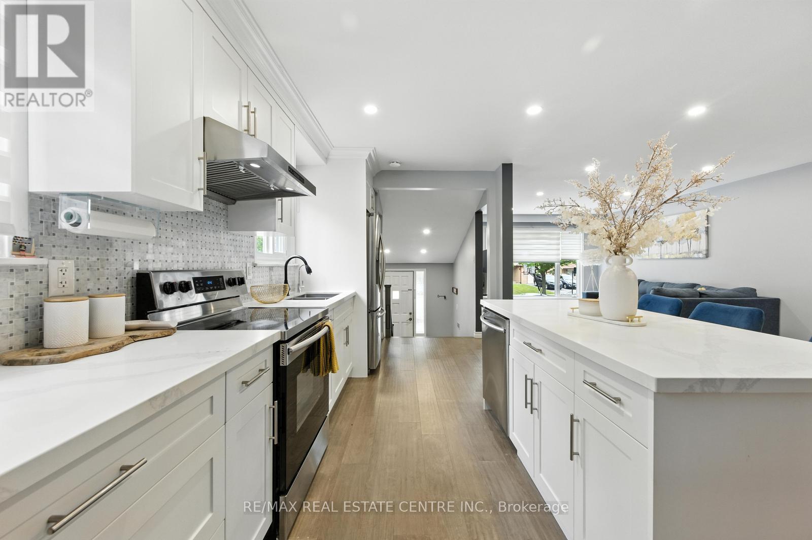 ***Location Location*** Welcome to this upgraded 5 level Back Split home offering 4+2 bedrooms and 3 washrooms in prime Meadowvale area. Carpet Free home. Modern finishings offering Hardwood Flrs, smooth ceilings, pot lights on the main floor. Open Concept Modern Kitchen comes with a huge centre island and is equipped With High End Ss Appliances, Quartz Counters, Marble Back Splash and tons of pantry space. This home offers a good size Family Room with Smooth Ceilings/Pot Lights, laminate floors and a modern electric fireplace with Walk Out To Deck. 3 Good size Bedrooms on the upper level comes with there own closet space and washroom. The In-between room can be used as a bedroom/office space with washroom. A Finished 2 Bedroom Bsmt Apartment With Sept Entrance offers a Great Rental Potential. Newer Windows & Furnace. Newer Electrical Panel & Plumbing. Extended driveway offers that extra parking space and the list goes on and on and is a must see. Walking distance to transit, meadowale town centre, big box stores and much more. (id:64974)