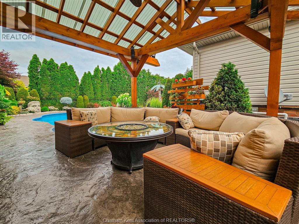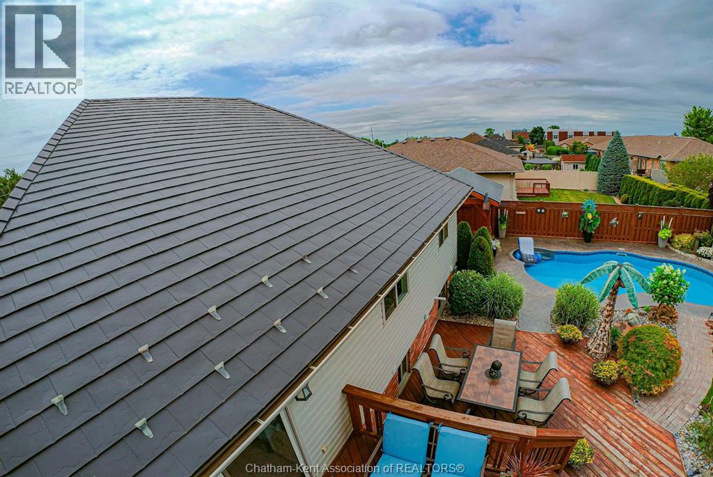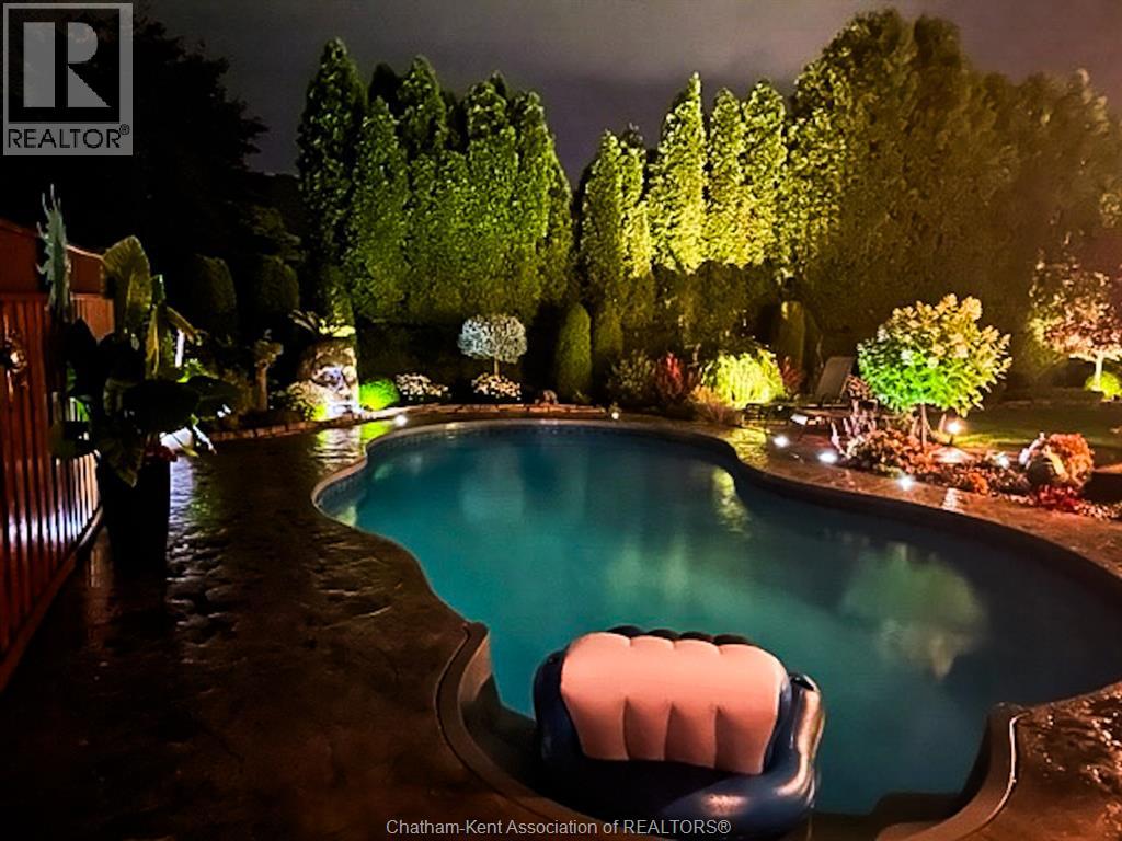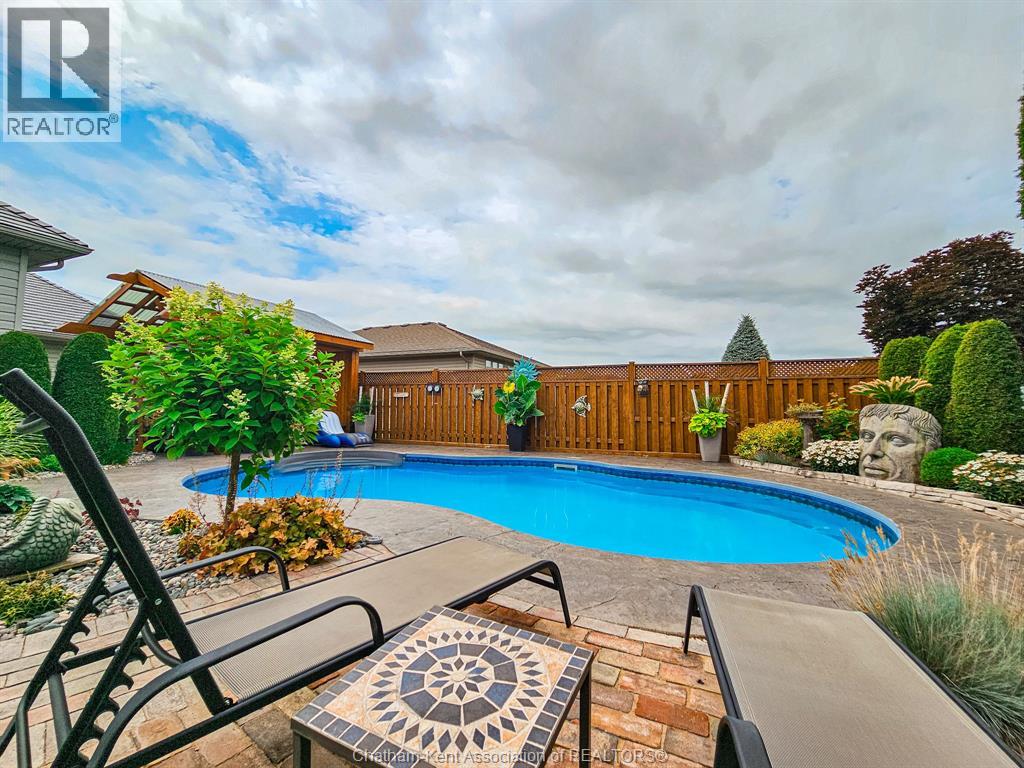 This impressive all-brick home is located just west of Keil Drive, close to the new Catholic School and St. Clair College. The backyard is your own private paradise with a heated salt water pool, covered gazebo, backyard night lighting, wood deck, gas barbecue hook up, and hot tub. The unique interior design is easily managed on all three levels. There are two bedrooms and full baths on the each of the upper and lower levels. Other stand-out features of this home include a steel roof, newer owned hot water heater, furnace, central air (October 2020), central vac, lawn irrigation system, and hidden storage on the lower level. The garage is an extra wide double - so lots of room for the toys! All offers must include Seller Purchasing a property. (id:64974)