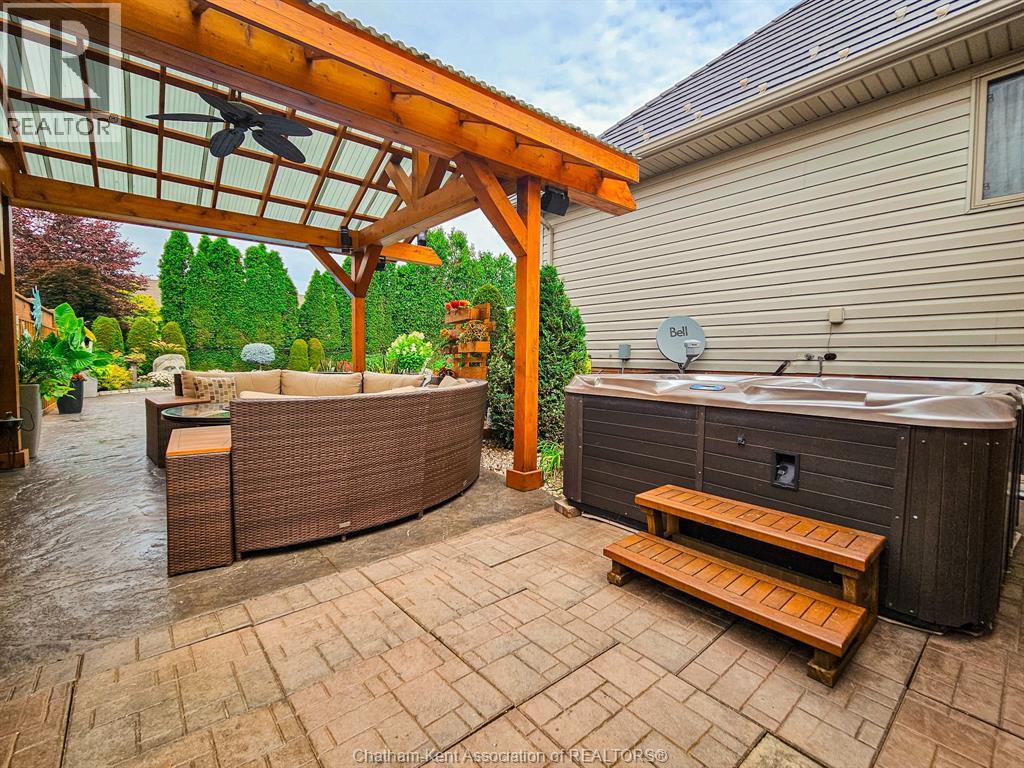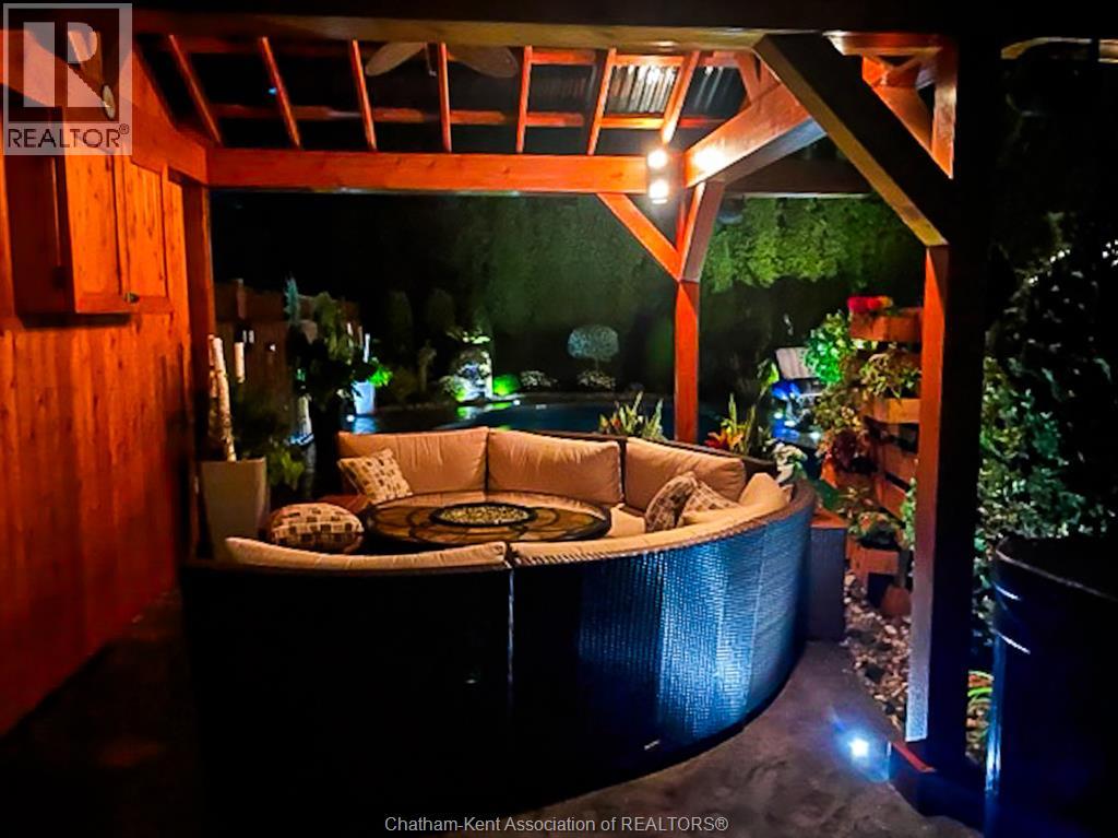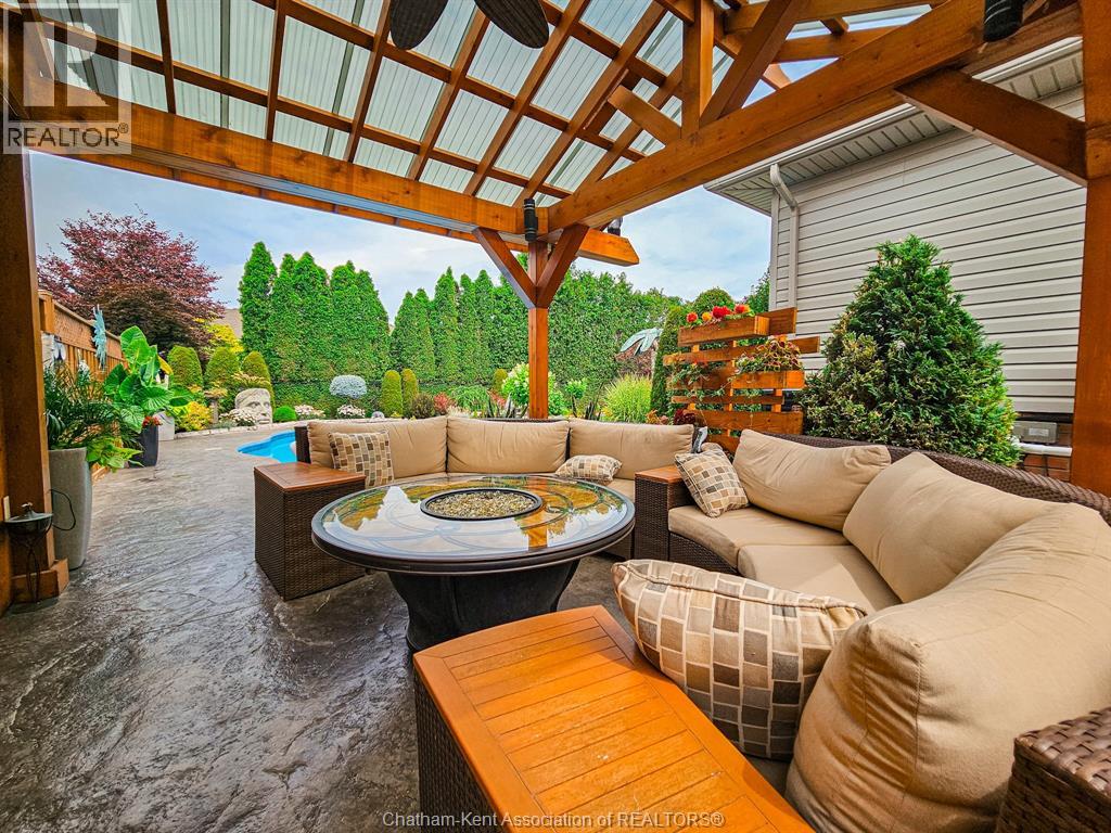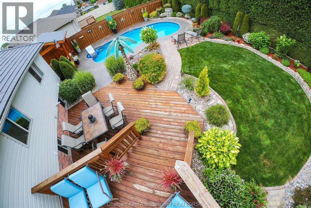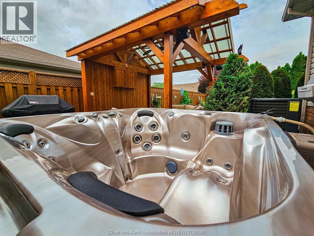 This impressive all-brick home is located just west of Keil Drive, close to the new Catholic School and St. Clair College. The backyard is your own private paradise with a heated salt water pool, covered gazebo, backyard night lighting, wood deck, gas barbecue hook up, and hot tub. The unique interior design is easily managed on all three levels. There are two bedrooms and full baths on the each of the upper and lower levels. Other stand-out features of this home include a steel roof, newer owned hot water heater, furnace, central air (October 2020), central vac, lawn irrigation system, and hidden storage on the lower level. The garage is an extra wide double - so lots of room for the toys! All offers must include Seller Purchasing a property. (id:64974)