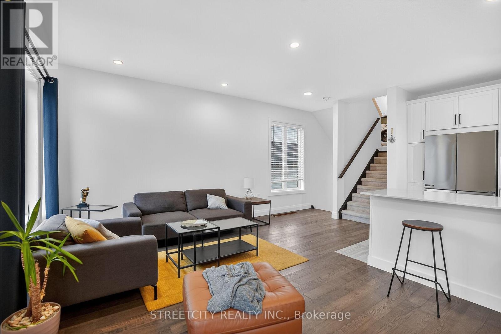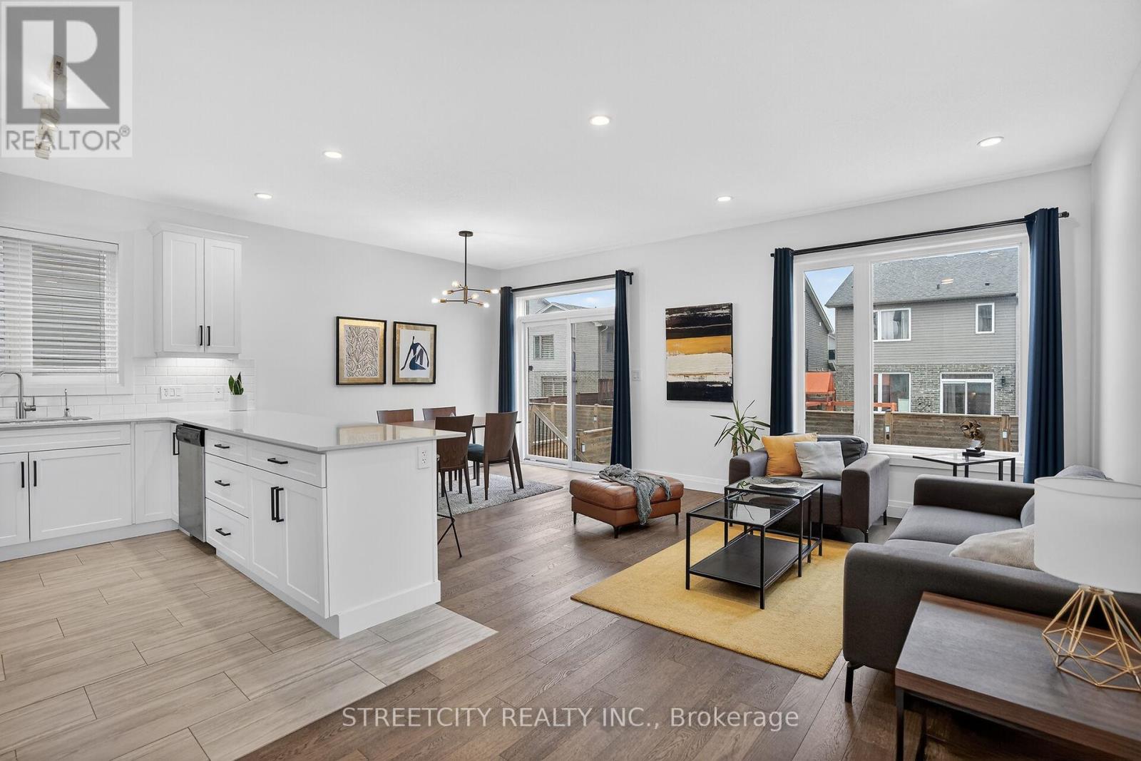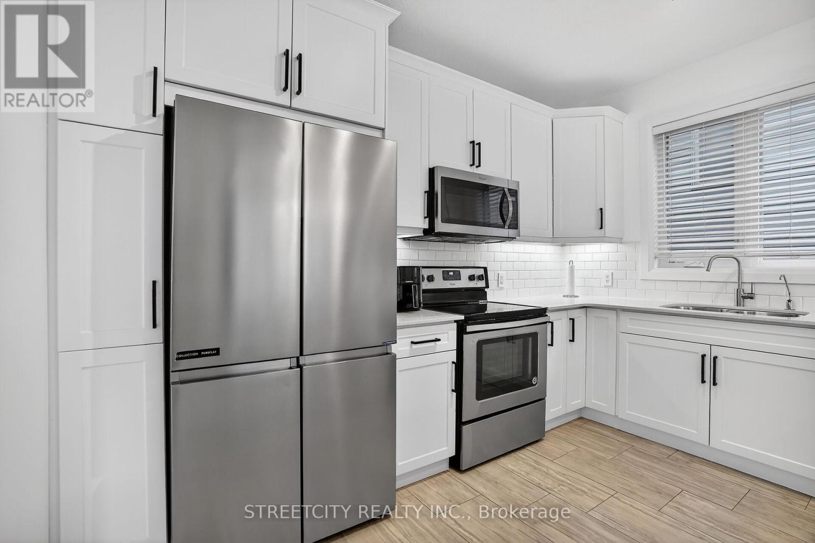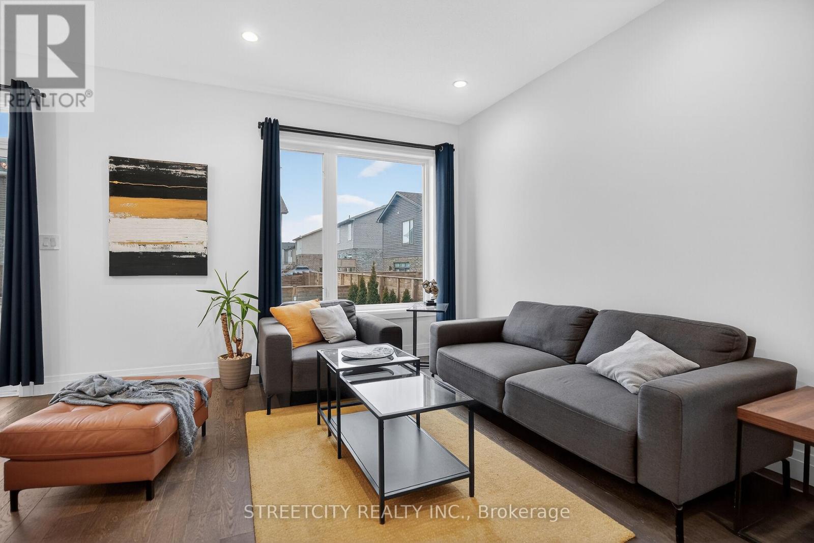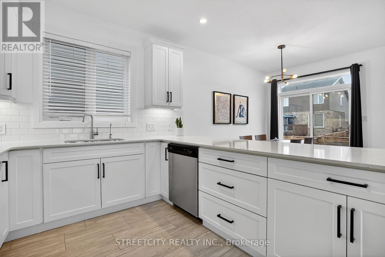 Discover this multi-level house in North of London. Freshly painted, 3 bedrooms, 3,5 bathrooms, Single car garage. This thoughtfully crafted residence blends modern comfort with elegant design across four beautifully appointed levels. Step inside the inviting foyer with ceramic tile flooring & 2 pc. Bathroom, welcomes you into a cozy lower-level family room, filled with natural light from a lookout windows, also includes a comfortable 3 pc. Bathroom, making it ideal for guests, or extended family. The Main floor is cheerful & welcoming offering sun-filled living room, dining room & functional kitchen with quartz countertops, all stainless steel appliances, and a glass door leads to a fully fenced backyard. Second level is dedicated to comfort and convenience, highlighted by a primary bedroom with 3 pc. Ensuite bathroom & generous closet. A conveniently located laundry room on this level adds everyday practicality. The third level offers 2 two generously sized bedrooms, & another 3 pc. Bathroom, excellent space for family members or home office setup. Do not miss this elegant home located in most desirable communities, surrounded by good rating schools, shopping & etc. (id:64974)