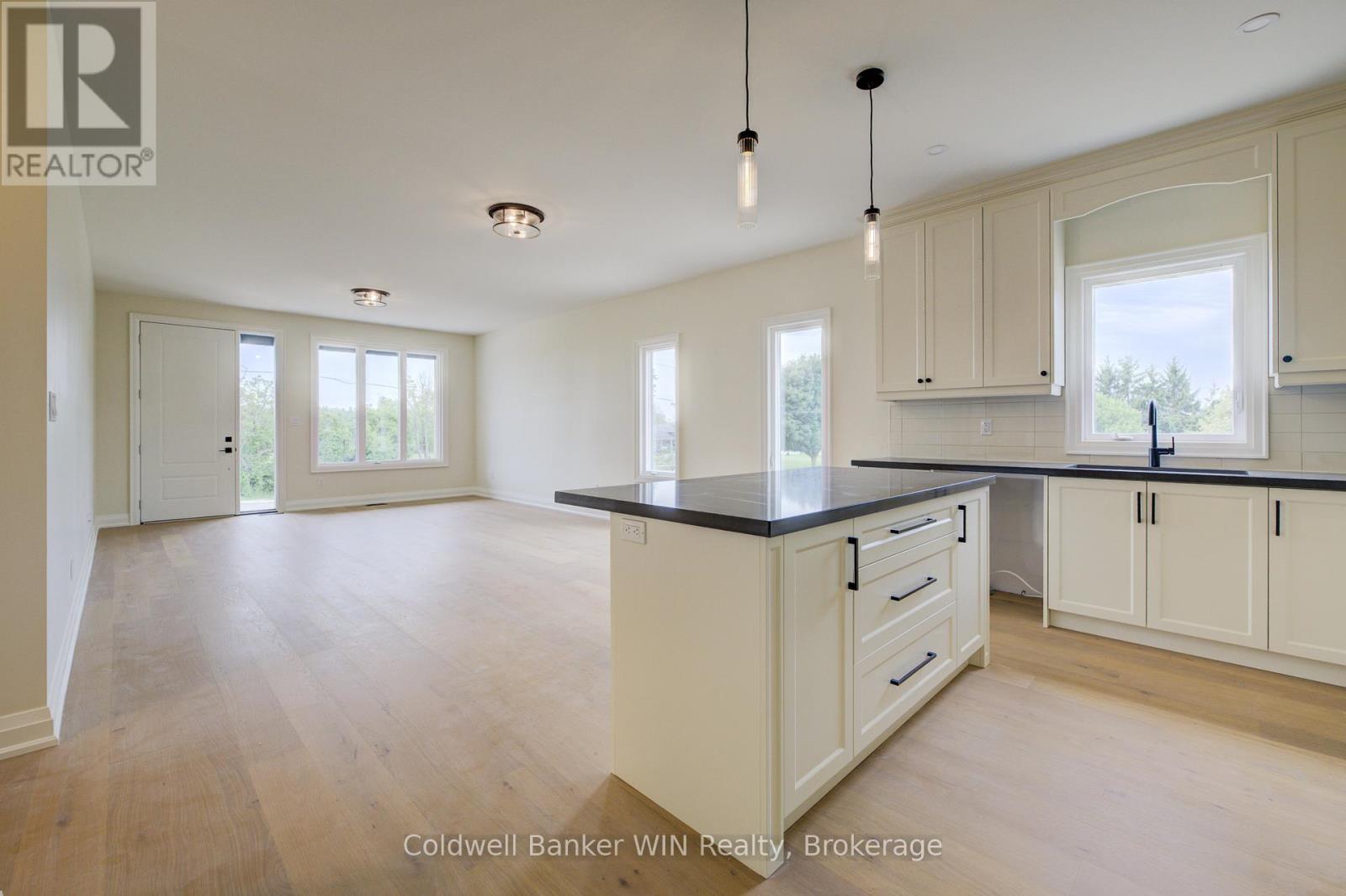 Enjoy the benefits of a new home with a country like setting instead of a new subdivision while still enjoying the benefits of "in town" living. This home is located close to parks & playgrounds, sports fields, the medical center and the hospital. This Tarion warrantied new 3 bedroom 2 bath home sits on a larger than "subdivision" sized lot with a southerly exposure overlooking the Saugeen River Valley. The floor plan provides a large family and dining/entertainment area and flows nicely to the bedroom area to the rear of the home. The family bath is located centrally for easy access from the secondary bedrooms while the principal bedroom enjoys a private 3 pc en suite with a tiled walk-in shower as well as a walk-in closet. The entrance from the garage leads you into a combination mudroom/laundry room. The 2 pc washroom and clothes closet are conveniently located close to the living area. Enjoy the view and bask in the sun from the covered front porch or relax in the shade on an optional deck at the rear. This home is ready for immediate occupancy. (id:64974)