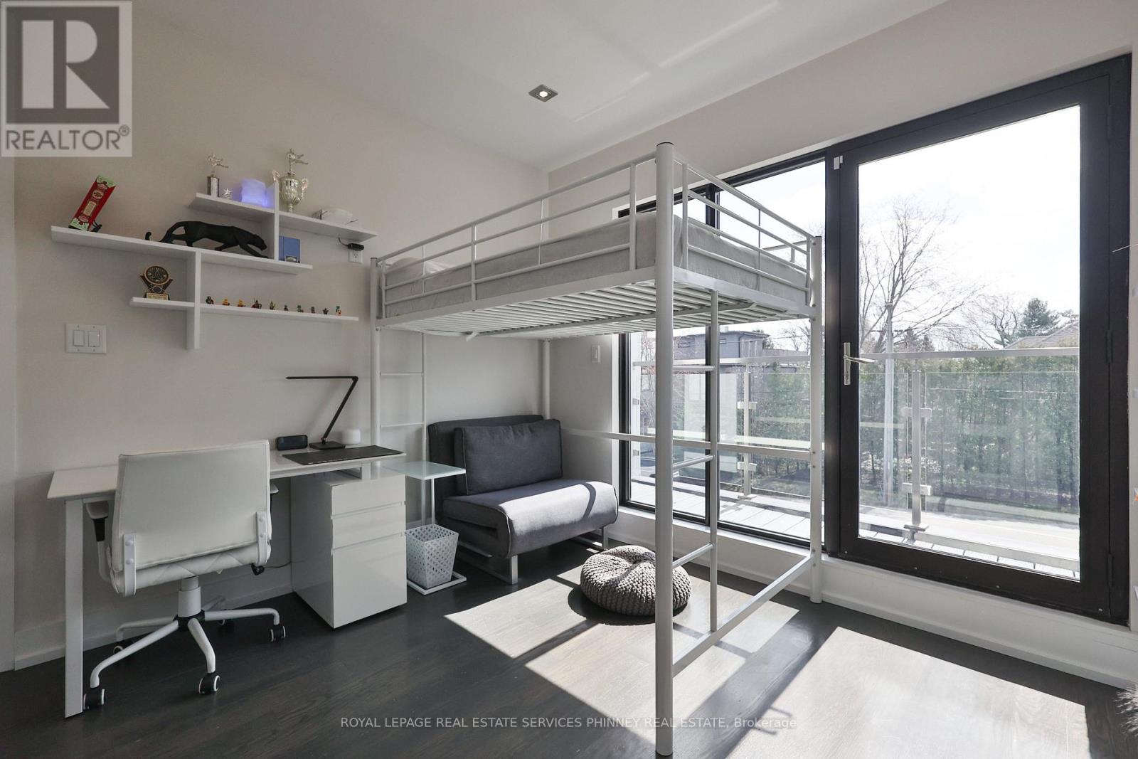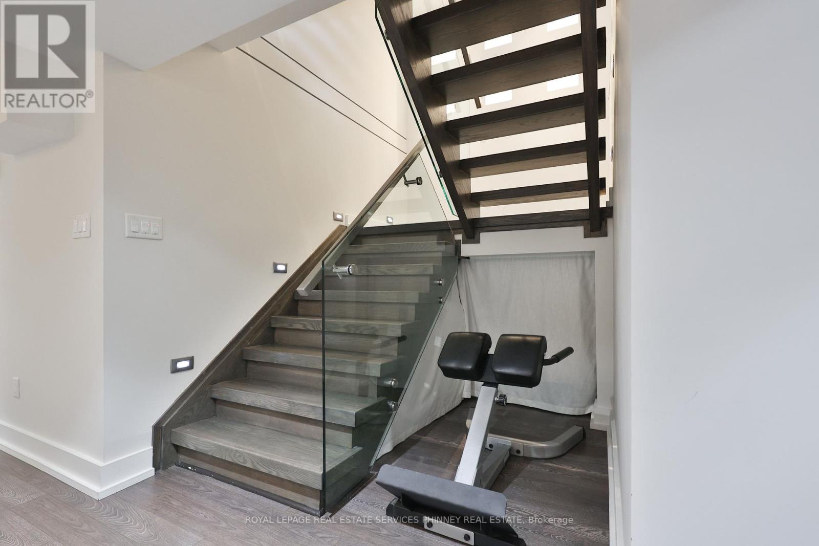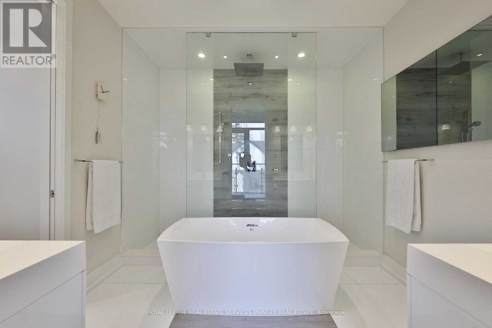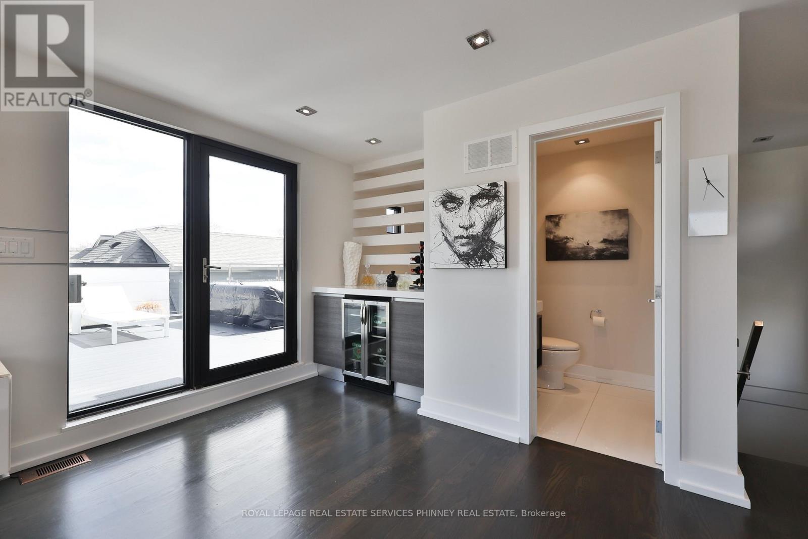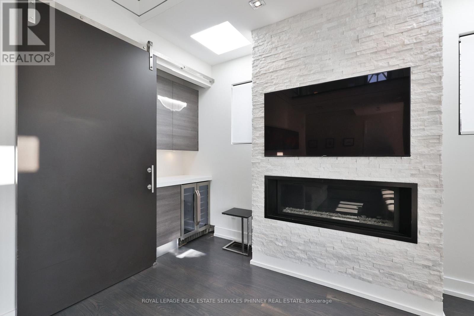 Sun-drenched and architecturally striking, this rare 3-storey contemporary home offers over6,100 sq ft of refined living space, blending modern elegance with exceptional functionality. Featuring 4+2 bedrooms and 6 bathrooms, the residence includes multiple outdoor retreats with 3walkouts to private decks and 2 to expansive rooftop terraces. The main level showcases a sophisticated layout with a private office, sunken living and dining rooms, and a stunning great room with a two-sided gas fireplace. The space flows into a high-end Scavolini kitchen with Miele integrated appliances, custom cabinetry, and a waterfall quartz island. A walkout leads to a resort-style backyard with a saltwater pool and waterfall. A custom mudroom with Scavolini cabinetry provides garage access. The upper levels are finished with wide plank flooring and oversized stone tiles, adding a cohesive and upscale design element throughout. Upstairs, four spacious bedrooms include a luxurious primary suite with a walk-in closet, private balcony, and spa-inspired 5-piece ensuite. The second bedroom has its own ensuite, while the third and fourth share a Jack & Jill bath, with the fourth offering a balcony walkout. A bright family room with a beverage centre and balcony adds flexible living space. A convenient laundry room with ample storage completes the 2 nd level. The bonus space on the third floor is ideal for entertaining, featuring a lounge, 2-piece bath, beverage centre, and access to two rooftop terraces. The finished basement offers a theatre room, gym, two additional bedrooms, and a 3-piece bath. The landscaped backyard is a private oasis with a saltwater pool, paver patio, and mature trees. Additional highlights include Control4 home automation. Located in sought-after Lakeview, close to waterfront trails, parks, schools, Port Credit, highways, and GO transit. (id:64974)