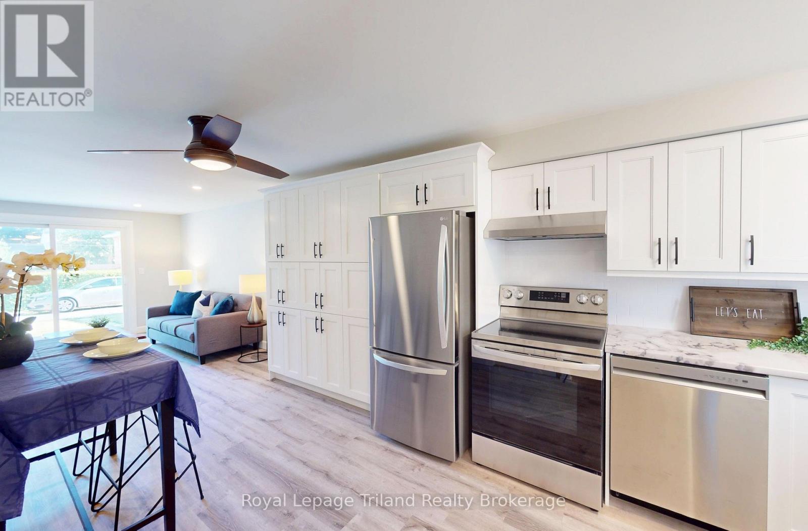 Discover this pristine 2-bedroom townhome condo in a prime North Woodstock location, steps from Northdale School - perfect for first-time buyers seeking value and style. The sleek kitchen features stainless steel appliances and generous cabinetry, flowing into a bright living room with south-facing patio doors that open to a cozy private outdoor retreat. Upstairs, two spacious bedrooms share a beautifully updated 4-piece bathroom. The clean, unfinished basement awaits your vision, whether a future rec room, retro lounge, or ample storage. Enjoy leisurely walks through the tree-lined neighborhood or explore nearby conservation trails. With quick access to Highways 401/403 and Toyota, this home blends convenience with a low-maintenance condo lifestyle, complete with a private patio and exclusive parking. See this Woodstock gem for yourself, you'll love the possibilities! (id:64974)