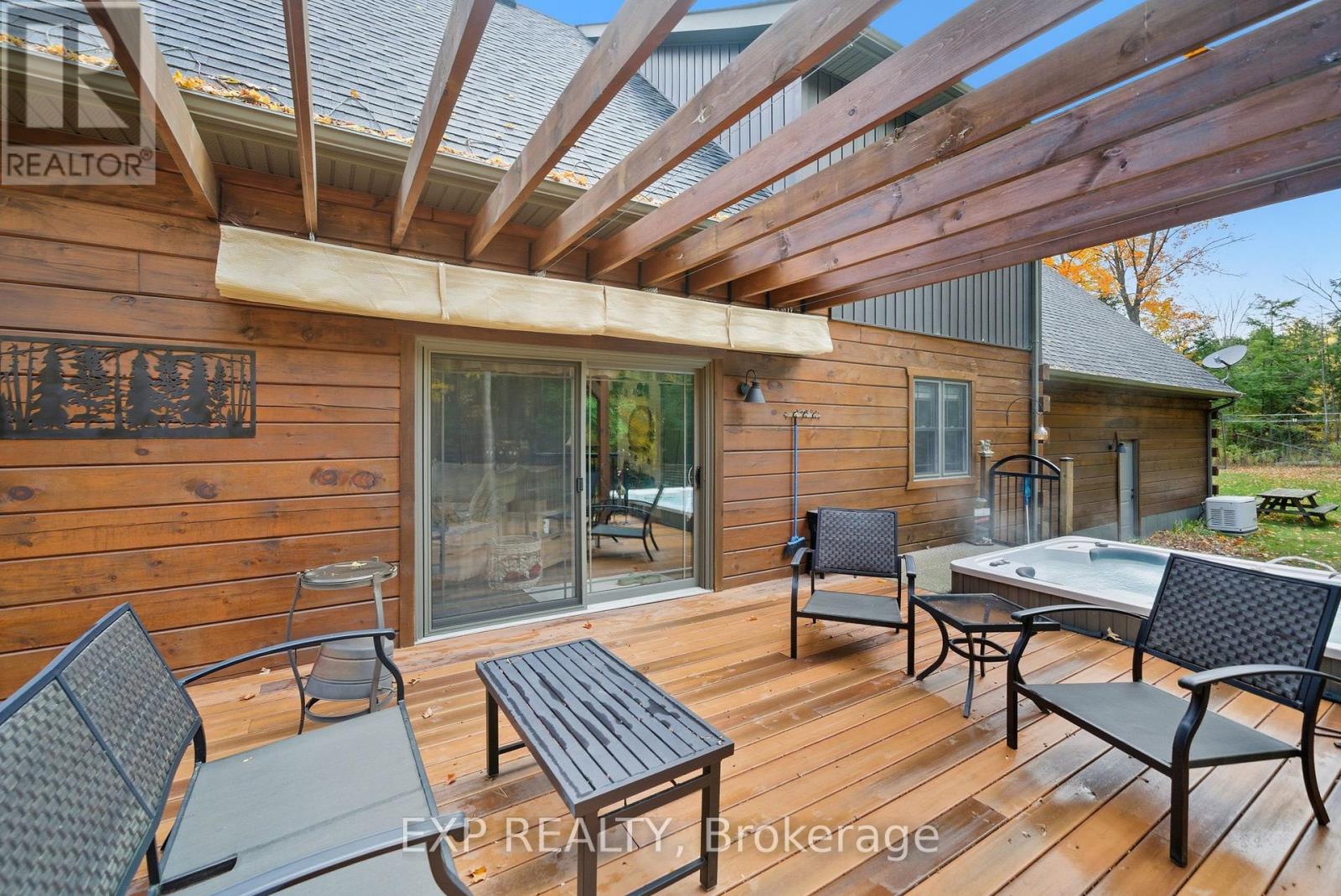 Escape to your private retreat on 3.3 serene acres with direct access to Northumberland Forest, ATV and snowmobile trails, cross-country ski trails, and skating right on your property. Just 7 minutes to St. Anne's Spa and close to local horse stables, this custom-built log home is perfect for weekend getaways, outdoor enthusiasts, or full-time country living. Inside, the main floor features a bright gourmet kitchen, cozy family room with a natural gas fireplace, versatile bedroom/den, and a 3-piece bath. The loft-style primary suite boasts sweeping views, a spa-inspired ensuite, and a deep soaker tub for ultimate relaxation. The finished lower level includes a spacious rec room, guest bedroom, and full bath, offering flexible space for family or entertaining. Modern upgrades throughout include composite decking, stamped concrete, a paved driveway, RV hookups, whole-home generator, invisible fencing, and an oversized double garage with interior access to the basement, ensuring convenience and peace of mind. Step outside to enjoy your built-in swim spa, private trails, and quiet country surroundings, a perfect blend of rustic charm and modern comfort. Whether seeking a weekend escape, an active outdoor lifestyle, or a peaceful full-time residence, 649 County Road 22 offers the ultimate balance of recreation, luxury, and tranquility. (id:64974)