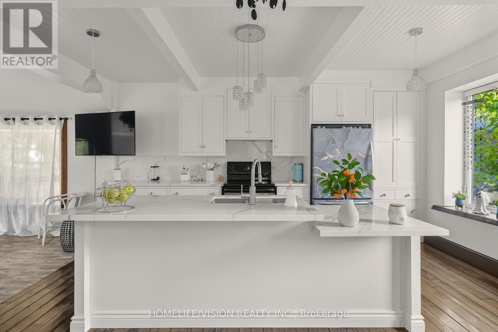 This thoughtfully renovated 1.5-storey home on a private road blends modern comfort with cozy charm. Enjoy lake views, mature trees, and a fully fenced yard - perfect for kids, pets, and family gatherings. Vaulted ceilings create a bright, airy feel, and the brand new modern kitchen is a chefs dream with gorgeous quartz countertops, a 36-inch sink, new dishwasher, and all the must-have amenities! Newly renovated bathrooms with one on the main floor and another upstairs. Throughout the home, you'll find all new windows, new interior doors and all new light fixtures. The exterior boasts newer siding and a metal roof. A new shed adds extra storage for all your outdoor essentials! Main floor built with wheelchair accessibility in mind. Located just 10 minutes to Pefferlaw or Beaverton, 17 minutes to Cannington or Sunderland, and only 28 minutes to Uxbridge or Keswick, this home offers small-town serenity with easy access to everything you need. (id:64974)