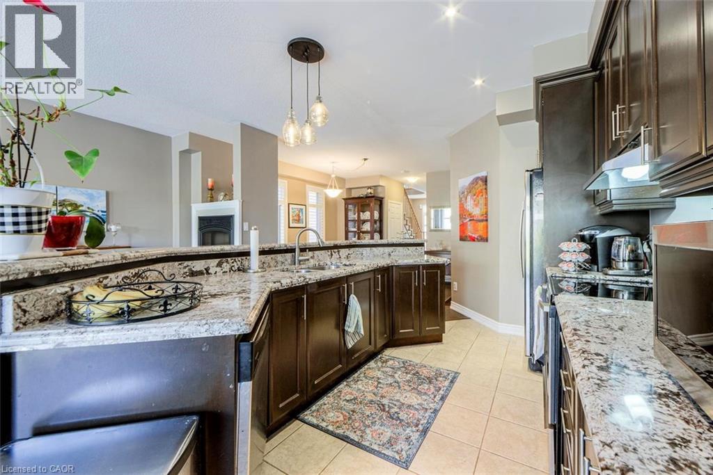 FREEHOLD, CORNER TOWNHOME 2049 SQFT ABOVE GROUND Welcome to your dream home in Waterdown! Perfectly placed in one of Waterdowns most sought-after neighbourhoods, this meticulously maintained corner end-unit freehold townhome offers approximately 2,900 sq. ft. of total living space including 3 spacious bdrms Plus Den and 4 washrooms With modern updates, thoughtful design, and an abundance of natural light, this home combines comfort and lifestyle in a highly desirable setting. * main floor showcases 9 Feet Ceiling, new hardwood flooring, a separate dining and living area with 2 Way fireplace, and a chef-inspired kitchen with extended cabinetry, a centre island with raised breakfast bar, granite countertops and Eat- in- kitchen area, California Shutters. Step outside to enjoy a two-tier deck a beautiful gazebo with custom built-in bench, all surrounded by lush greenery perfect for hosting! Entrance from Garage to Home. *Upstairs, the versatile loft/office is perfect for working from home, primary suite features 2 closets with one walk in closet, a luxurious En-ensuite complete with a oversized jacuzzi spa tub, glass shower, and granite vanity. 2 more generous size bdrms with windows overlooking the backyard and one full bathroom with soaker Tub. New carpet throughout the stairs and second floor. Recently renovated W/O balcony Newer Windows in the bedrms *The fully finished bsmt offers more living space with new cork flooring , Pot lights, a den, ample storage, a washroom, and a cozy fireplace set against a beautiful stone wall makes this level is as functional as it is stylish. Set in a quiet family-friendly neighbourhood on a cul-de-sac, this home is steps from one of the best schools, day Care, the YMCA, Memorial Park, and everyday amenities, with easy access to scenic walking trails, golf courses, and the Greenbelt countryside. Commuters will love being just 10 minutes to Aldershot GO Station and Highways 403, 407, and the QEW. Best rated restaurants in the area. (id:64974)