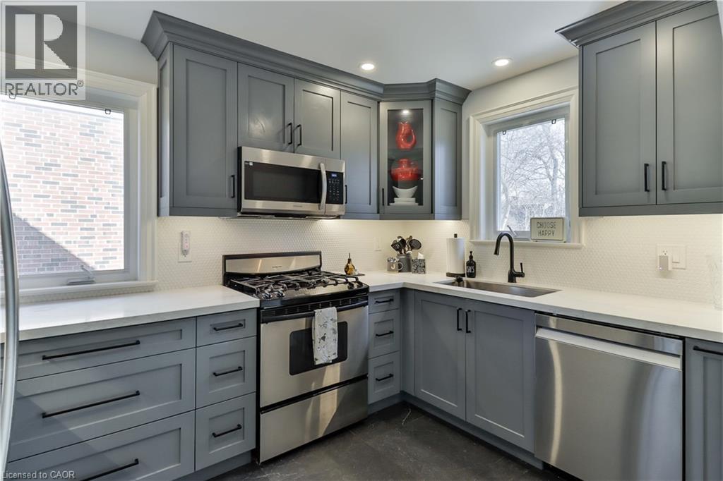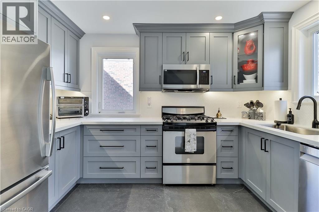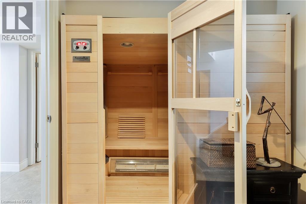 Welcome to this charming and beautifully updated 1.5-storey character home, perfectly situated on a spacious 120-ft lot in a highly desirable location backing directly onto Shepherd East Park. Offering exceptional privacy with mature trees and direct access to walking trails, this property combines nature, convenience, and timeless appeal-just minutes to the 401 and a short walk to Glendora Park.Inside, you'll find a thoughtfully designed layout featuring 3 bedrooms and 3 bathrooms-one on every level for ultimate functionality. The main floor offers incredible versatility with a potential fourth bedroom, currently used as a home office, or ideal as a cozy family room. The bright and inviting living room flows seamlessly into the dining area, showcasing elegant crown moulding and California shutters.The beautifully renovated kitchen (2023) is sure to impress with quartz countertops and stainless steel appliances, blending modern style with everyday practicality. Upstairs, the spacious primary bedroom comfortably accommodates a king-sized bed and features double closets, while the bedroom level is finished with classic hardwood flooring, adding warmth and character throughout.The fully finished lower level expands your living space with a large recreation room complete with a stunning wood-burning fireplace, brick mantle, and built-in shelving. You'll also find a 3-piece bathroom with a glass shower and rain feature, sauna, laundry area, craft space, and plenty of storage, along with potential for an additional bedroom.Step outside to your private backyard oasis featuring an inground heated concrete pool, surrounded by mature landscaping-perfect for entertaining or relaxing in total privacy.Additional updates include central air (2025), shingles (2016), updated bathrooms, a solid wood staircase, and a security system for peace of mind.This is a rare opportunity to own a beautifully finished home on a premium lot in an unbeatable location. (id:64974)